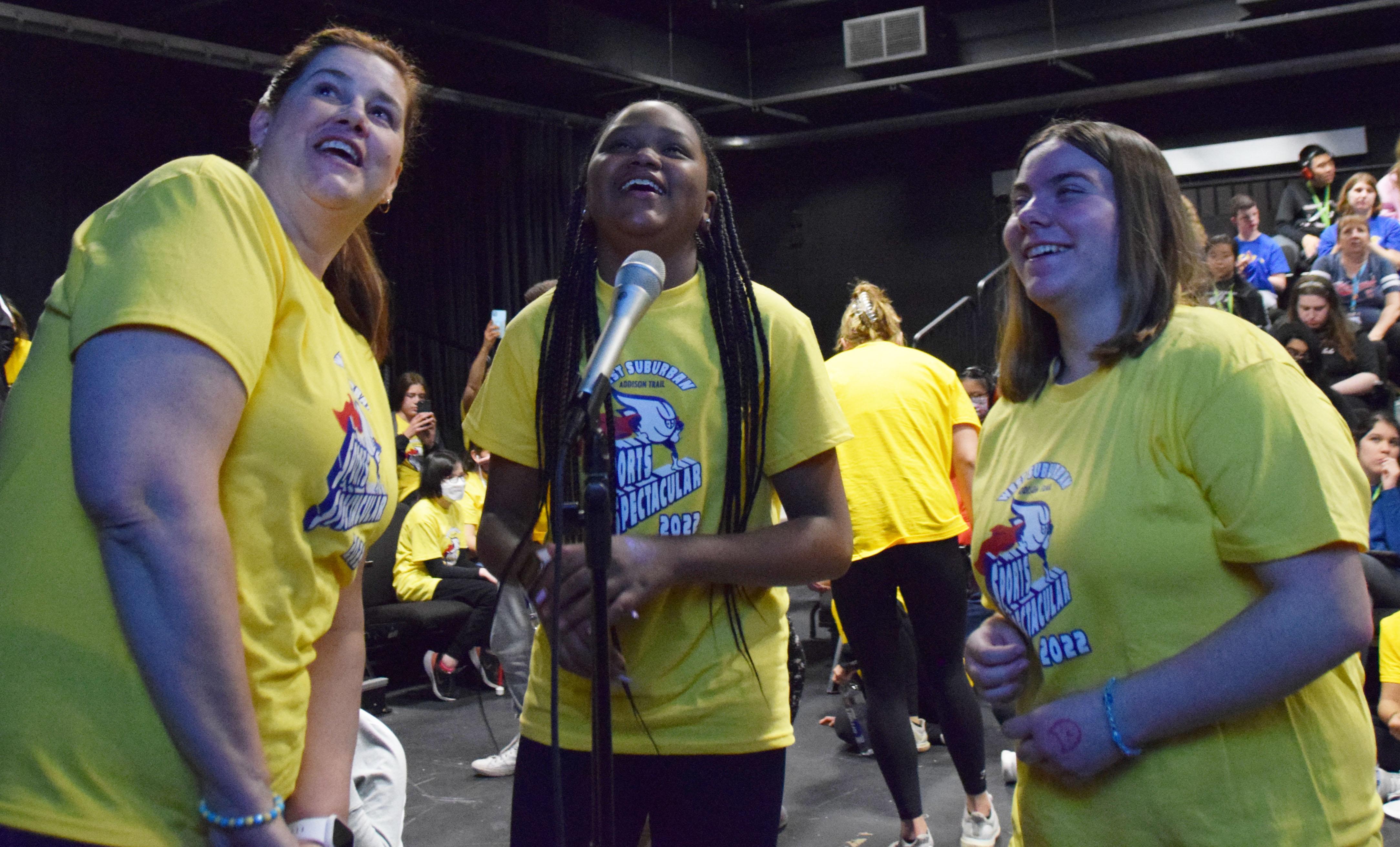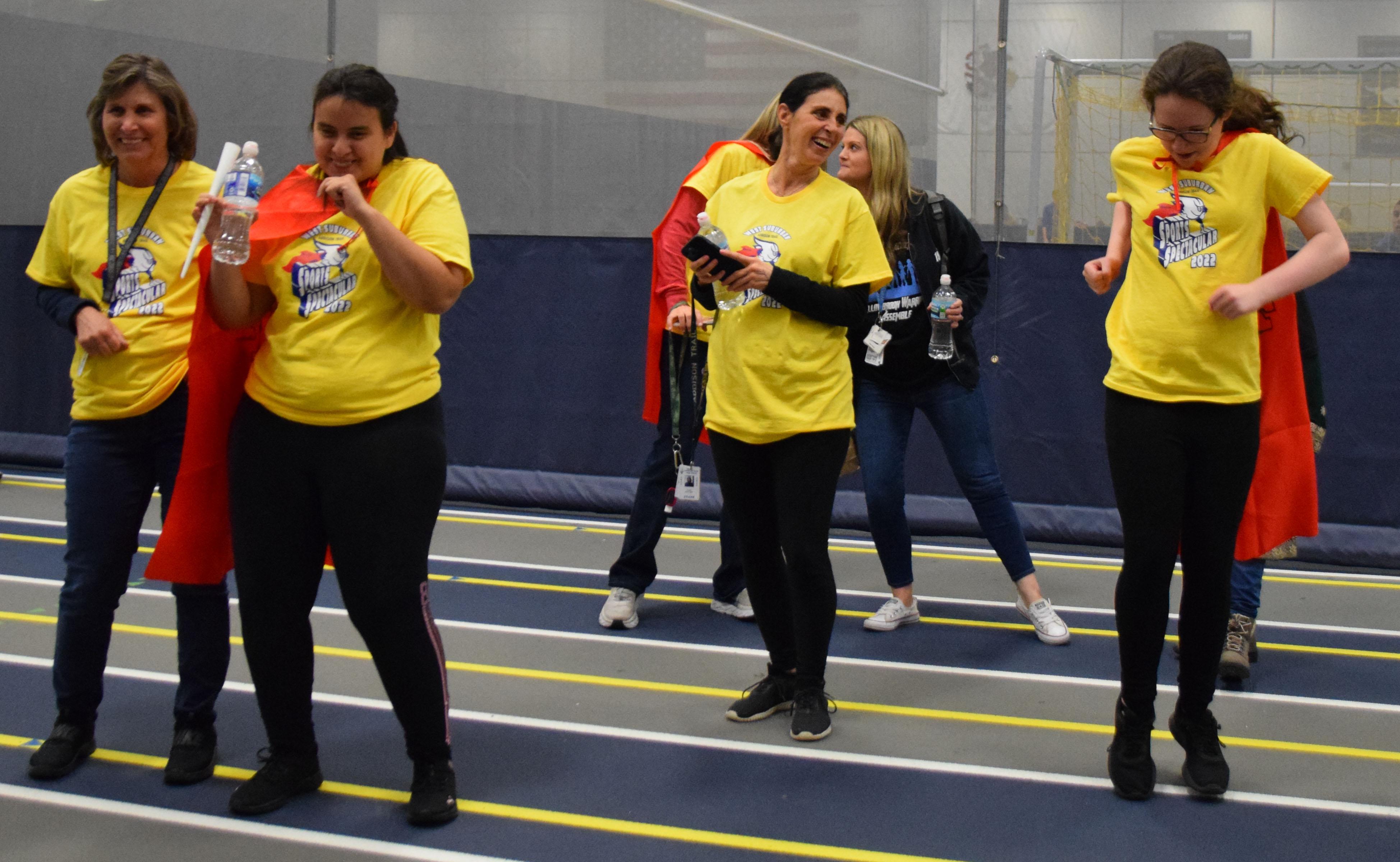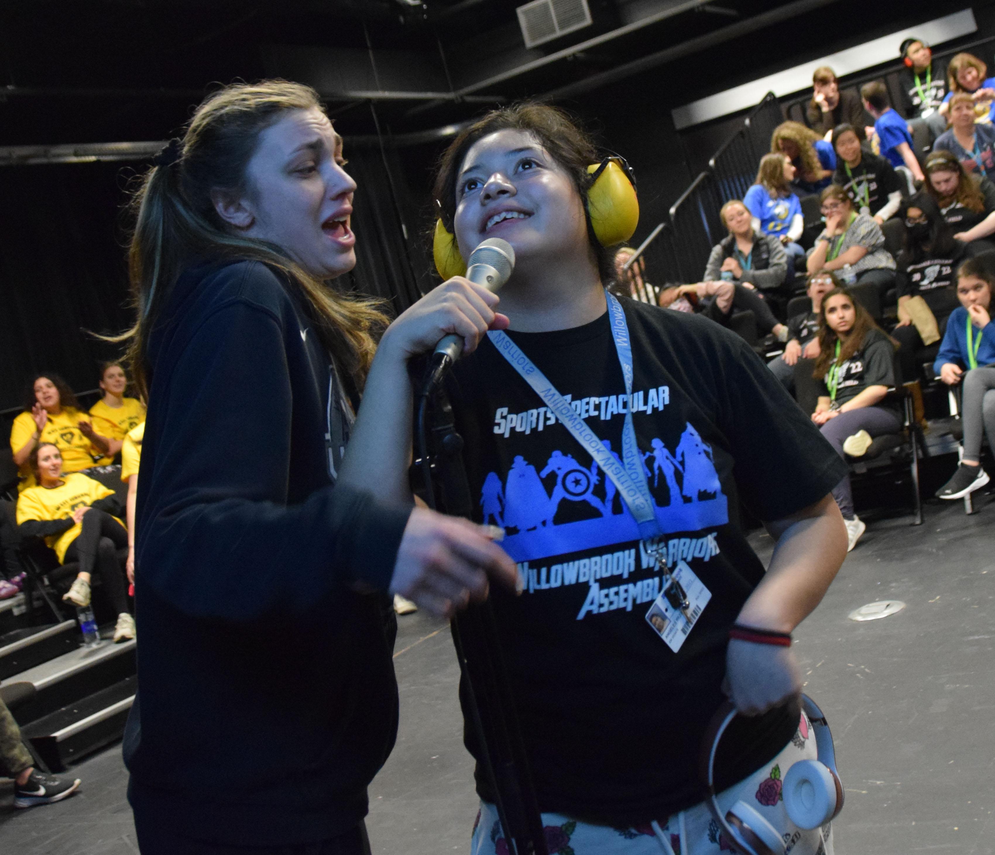 During the event, about 600 students with special needs and their staff filled Addison Trail’s field house, gyms and black box studio theatre. The students were from 16 schools in the West Suburban Conference, including Willowbrook. The pupils participated in basketball, volleyball, indoor golf and more. They also enjoyed carnival games, karaoke and tasty treats. The event began with an introduction of the schools in attendance.