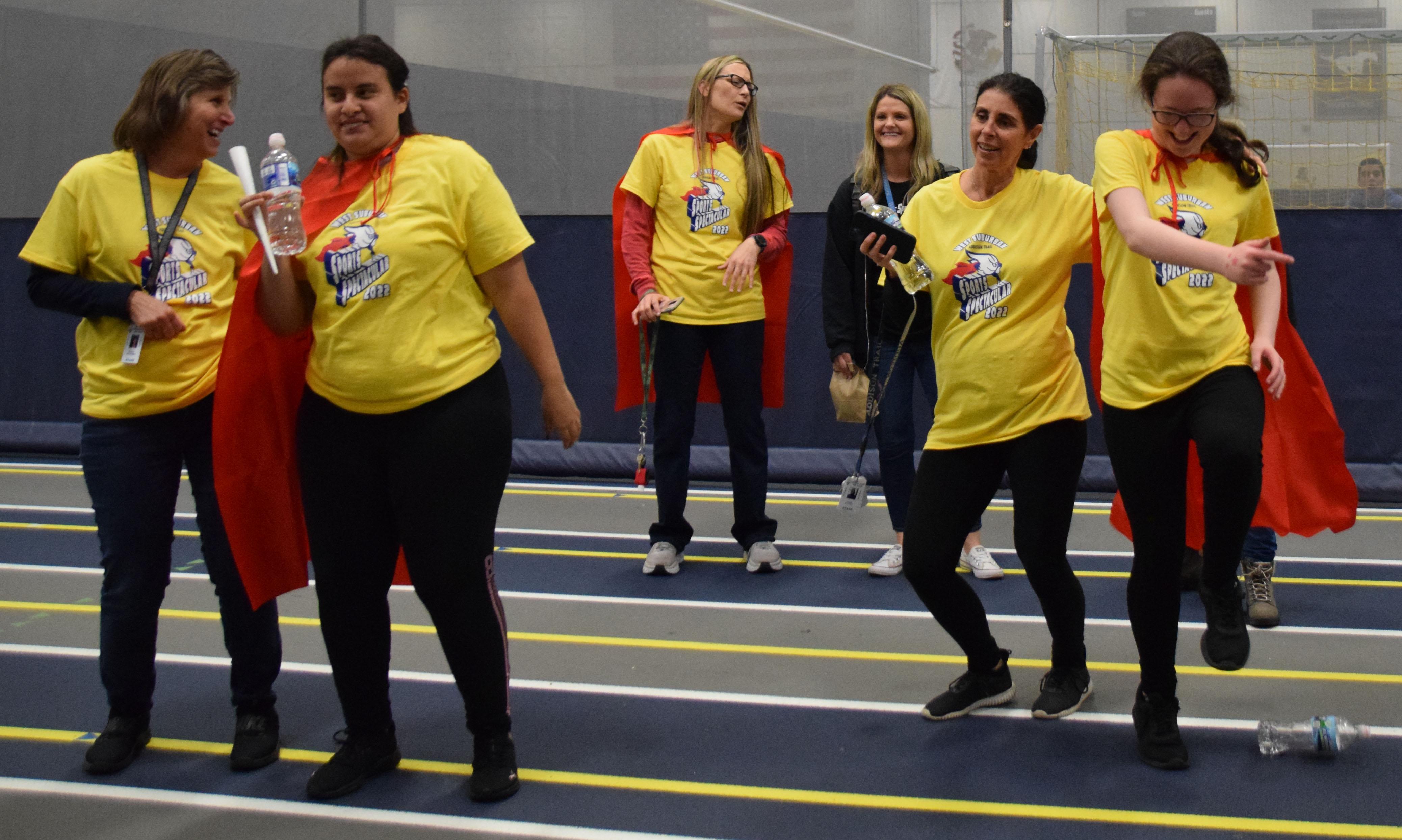 The Sports Spectacular was founded in 1994 by a group of West Suburban Conference athletic directors. Retired Addison Trail physical education teacher Sheri D’Ambrose wanted to continue the event to offer students an atmosphere of fun, and Rob Schader (Addison Trail Physical Education Department Head) looks forward to keeping the event going for years to come. D’Ambrose said it takes the following to make the Sports Spectacular a success each year: