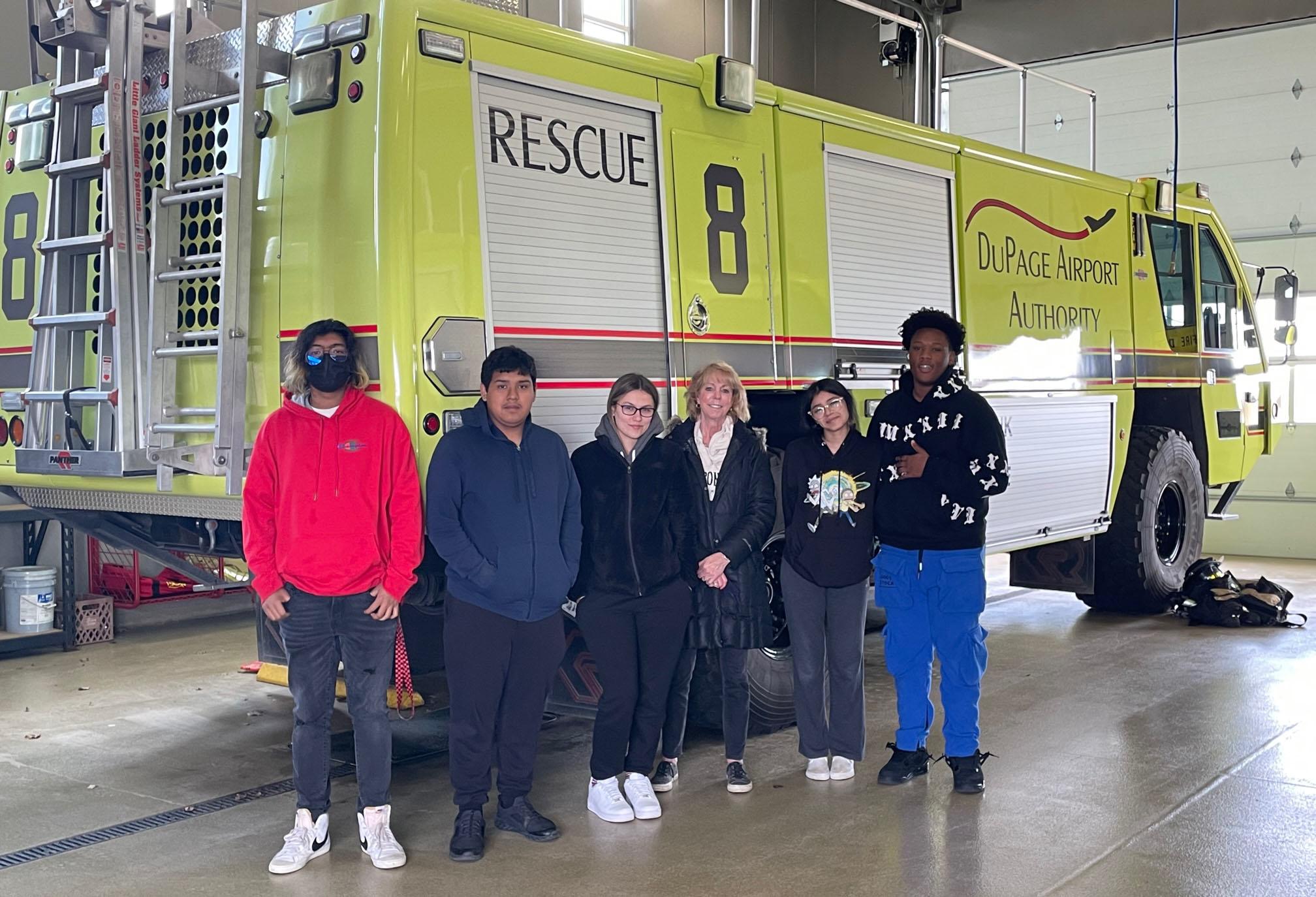 During their visit, students met with DuPage Airport Authority Director of Operations and Facilities Tom Cleveland, who presented about various careers available in the airport/aviation field. Those positions/departments include pilot, flight attendant, baggage handler, cargo, fleet services (gas, deicing, etc.), maintenance, mechanic, air traffic controller, concierge, security and fire safety/paramedic. Cleveland also shared a link for employment opportunities at the airport (https://www.dupageairport.com/airport-authority/administration/employment/).