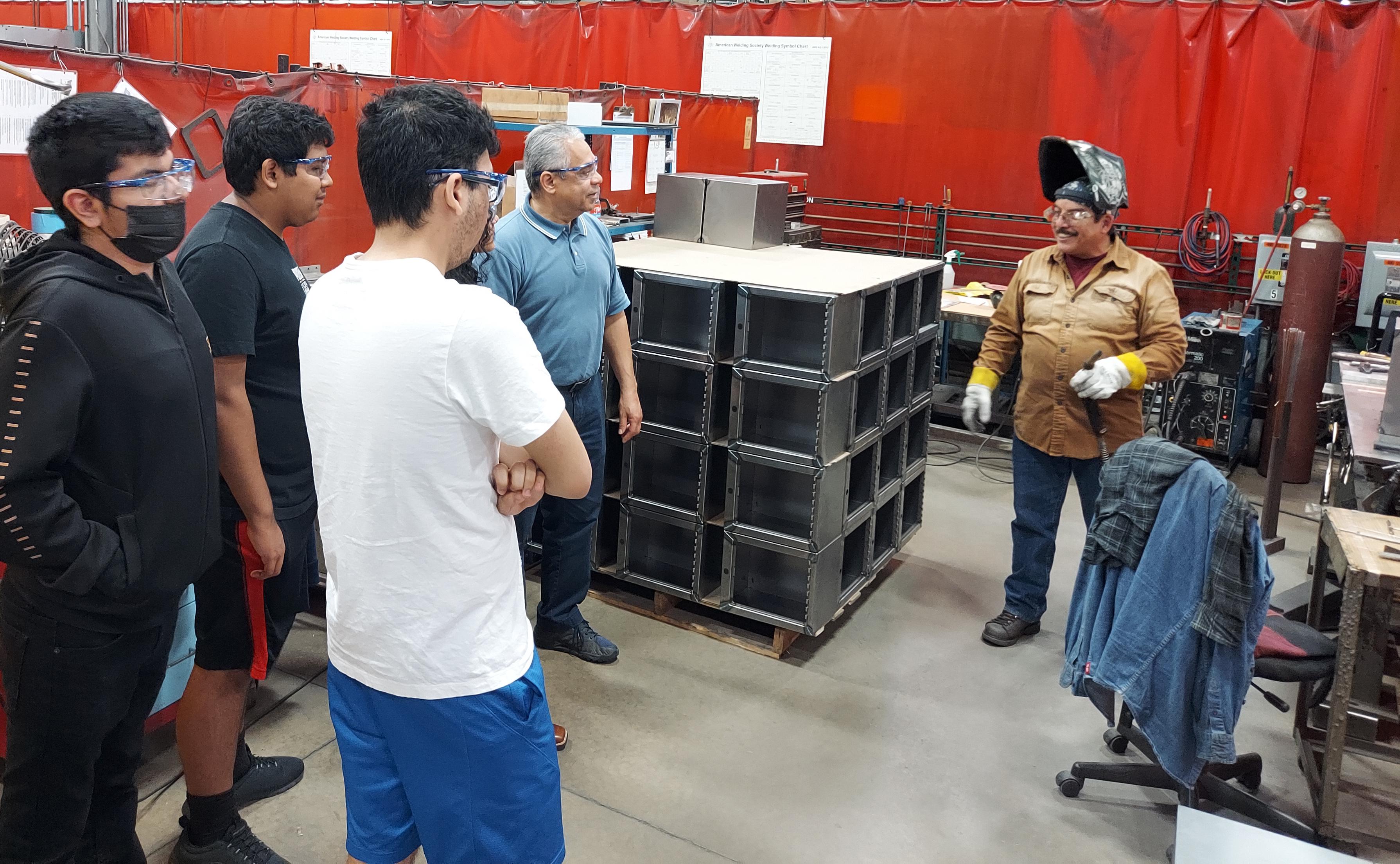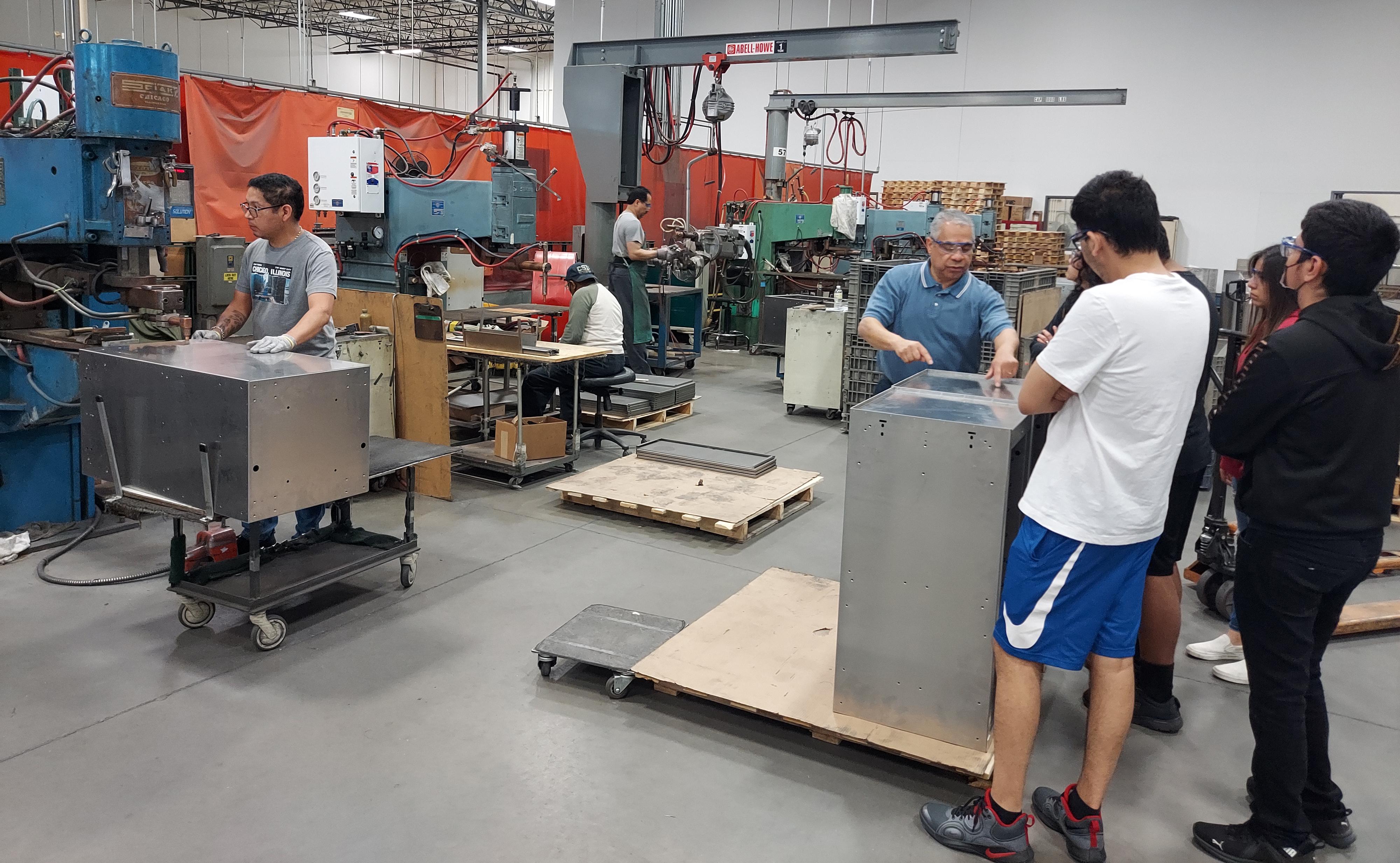 During their visit, students met with Quality Fabricators Inc. Vice President and Owner Mark Lovelace, who led them on a tour to see the assembly line of paint coating, product assembly/shipping and material handling.