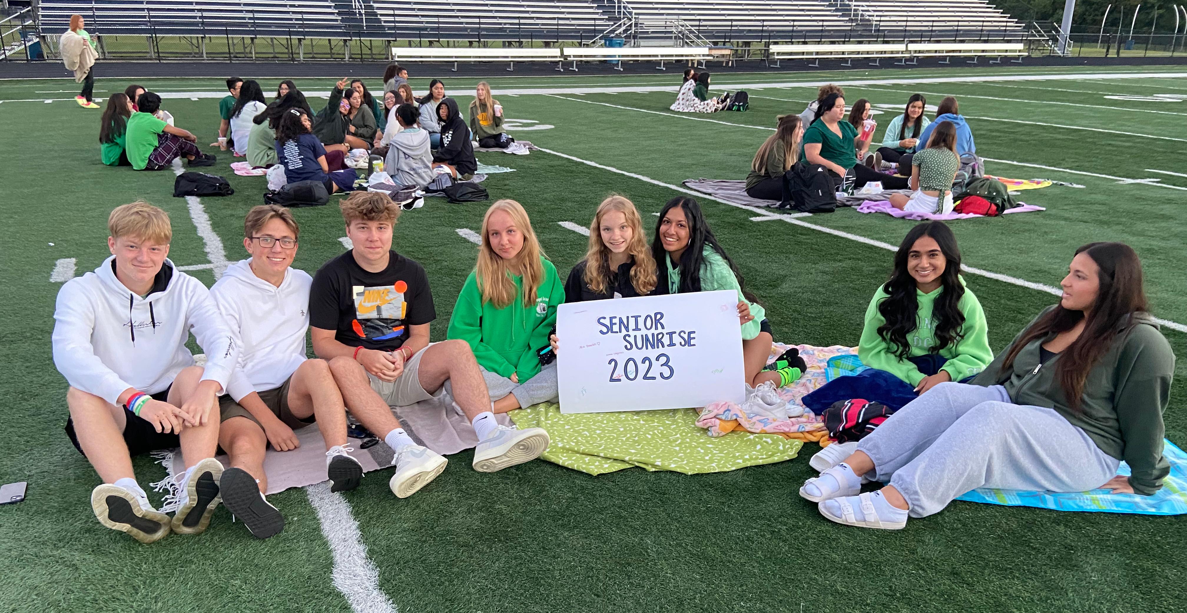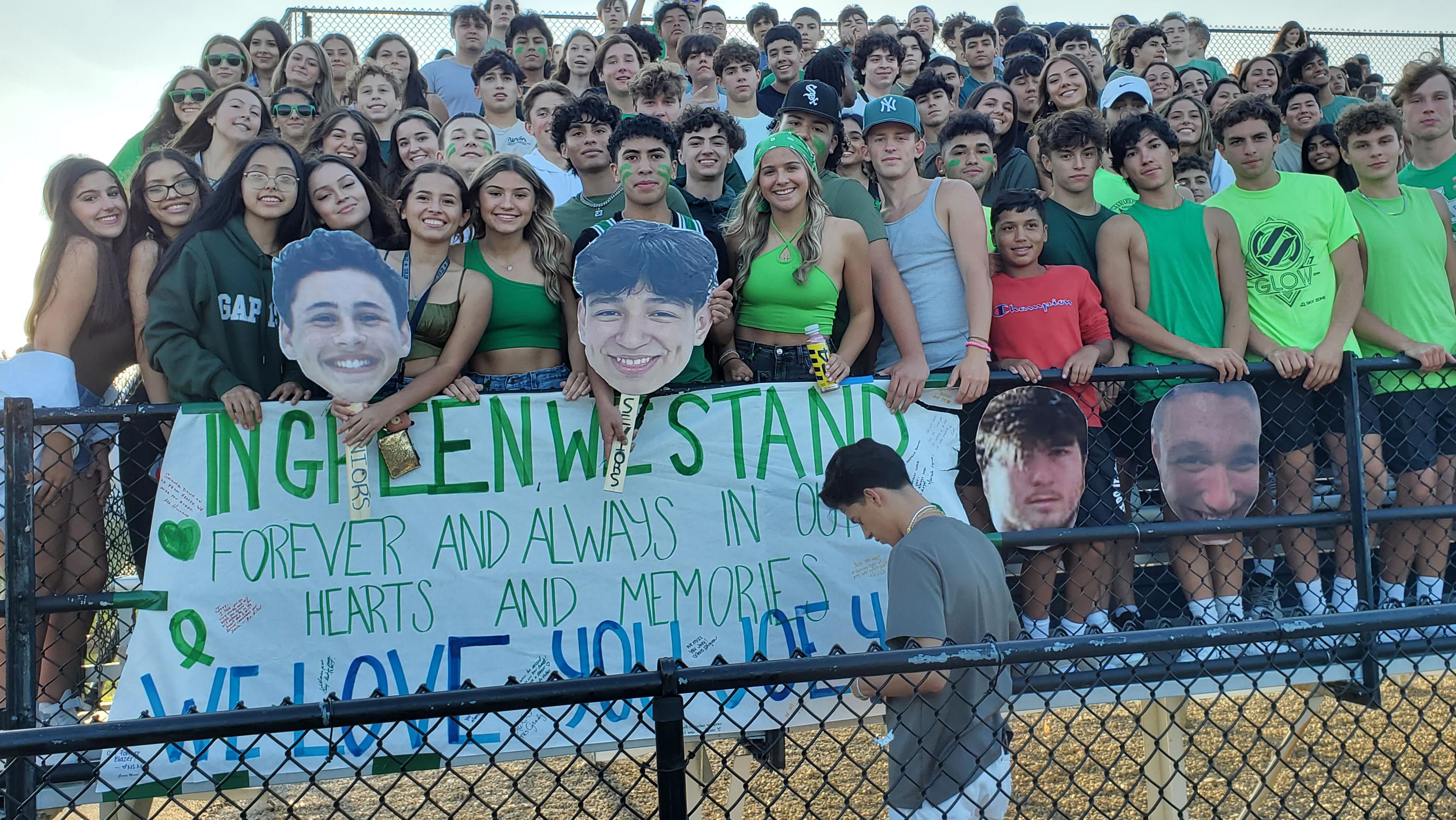 To honor, celebrate and remember Joey, students and staff participated in a variety of events. Those include members of our Girls Volleyball Team wearing green ribbons (which is the color associated with cerebral palsy awareness) during their Aug. 24 game against Maine East, student performance groups wearing green ribbons during our first home football game of the season on Aug. 26, staff and students wearing green on Aug. 26 (including during the class of 2023 Senior Sunrise event) and student council decorating the commons area in green. Students, staff and fans also participated in a “green out” during the football game. To view photos from those events, see the photo gallery above.