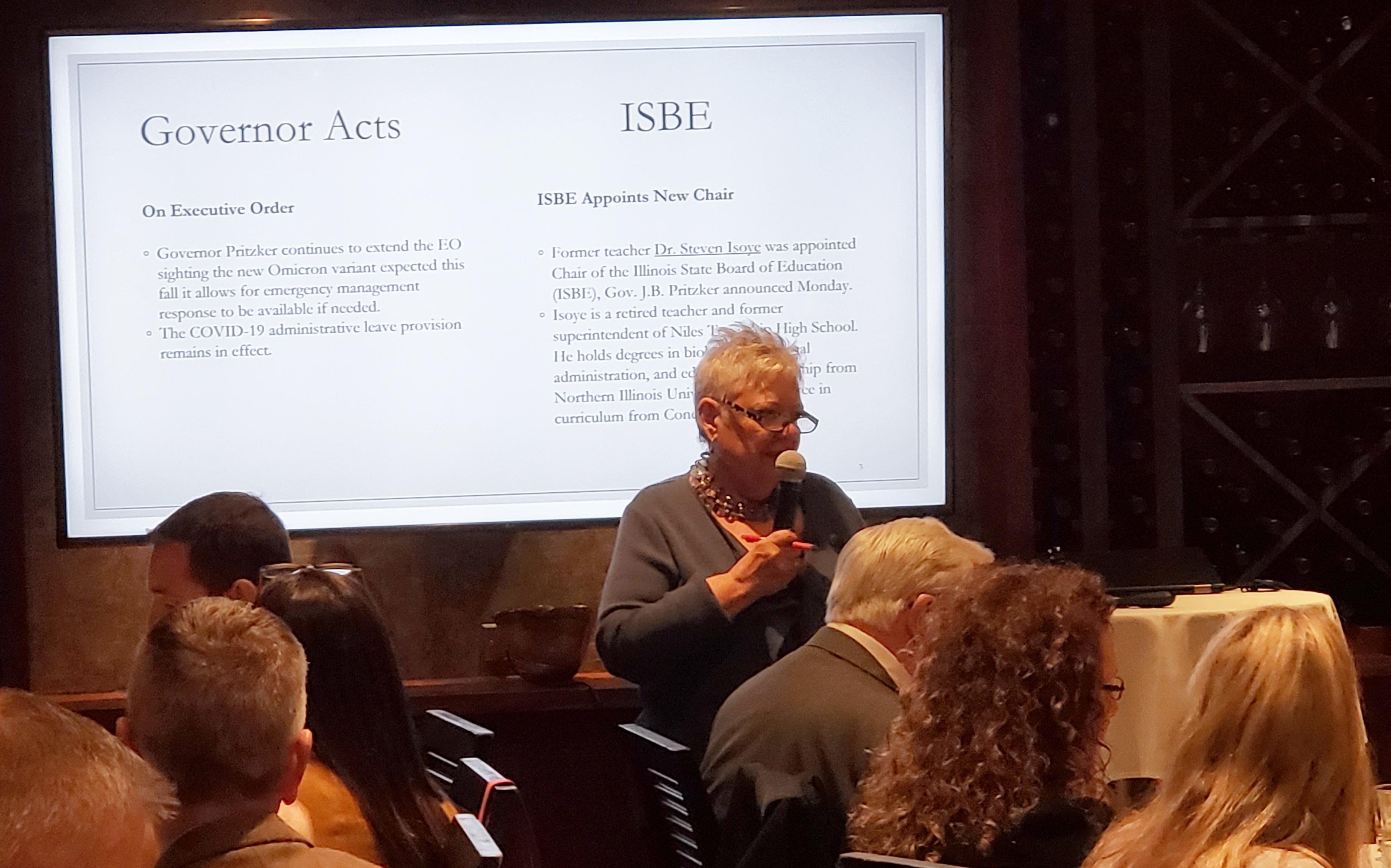 During the meeting, LEND Executive Director Peg Agnos (pictured above, speaking) discussed potential legislation that could affect public school districts in Illinois. For more information about LEND, go to https://www.lenddupage.org.