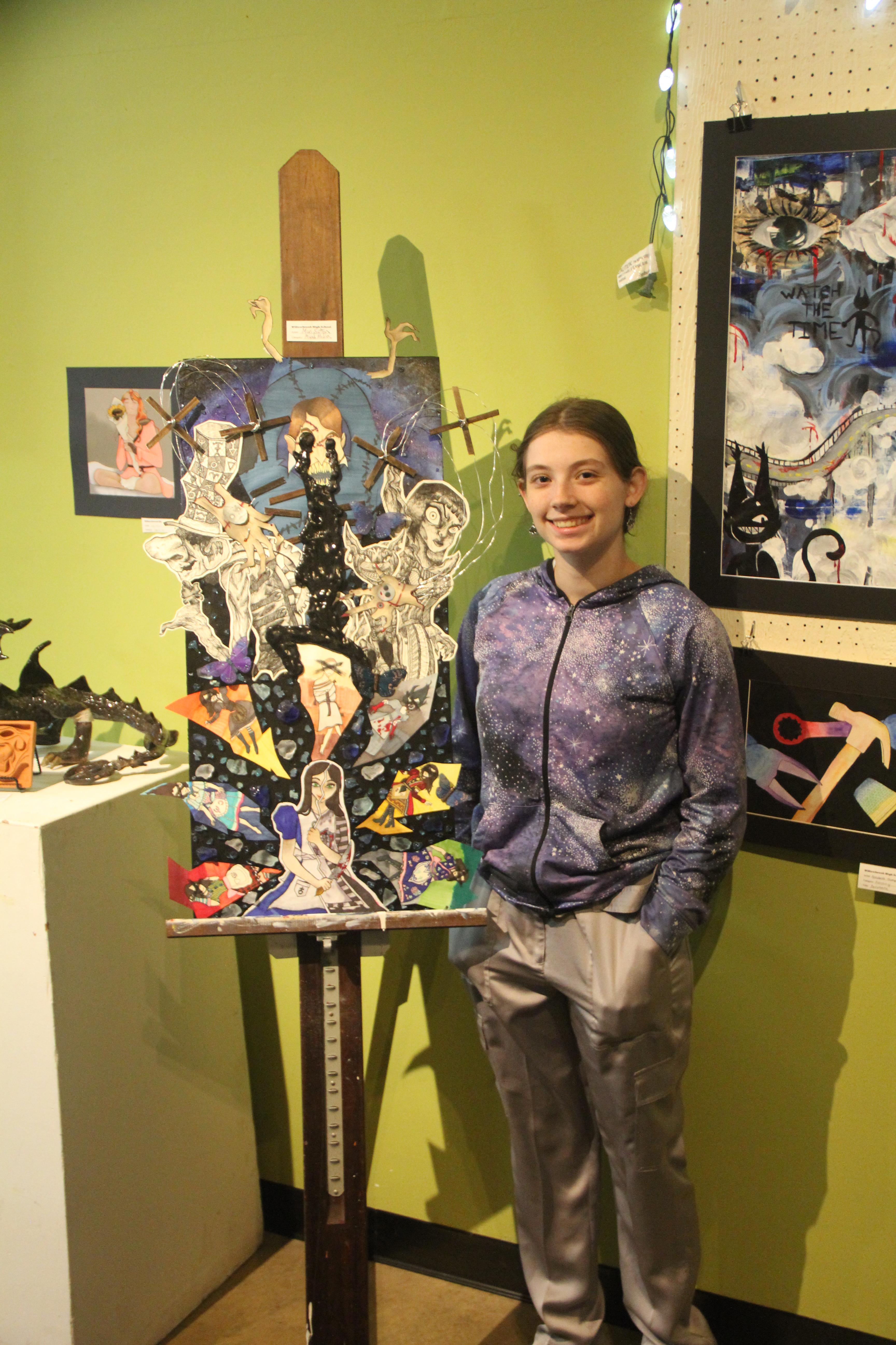 The event features nearly 100 pieces in various media created by Willowbrook students and represents nearly 100 artists.