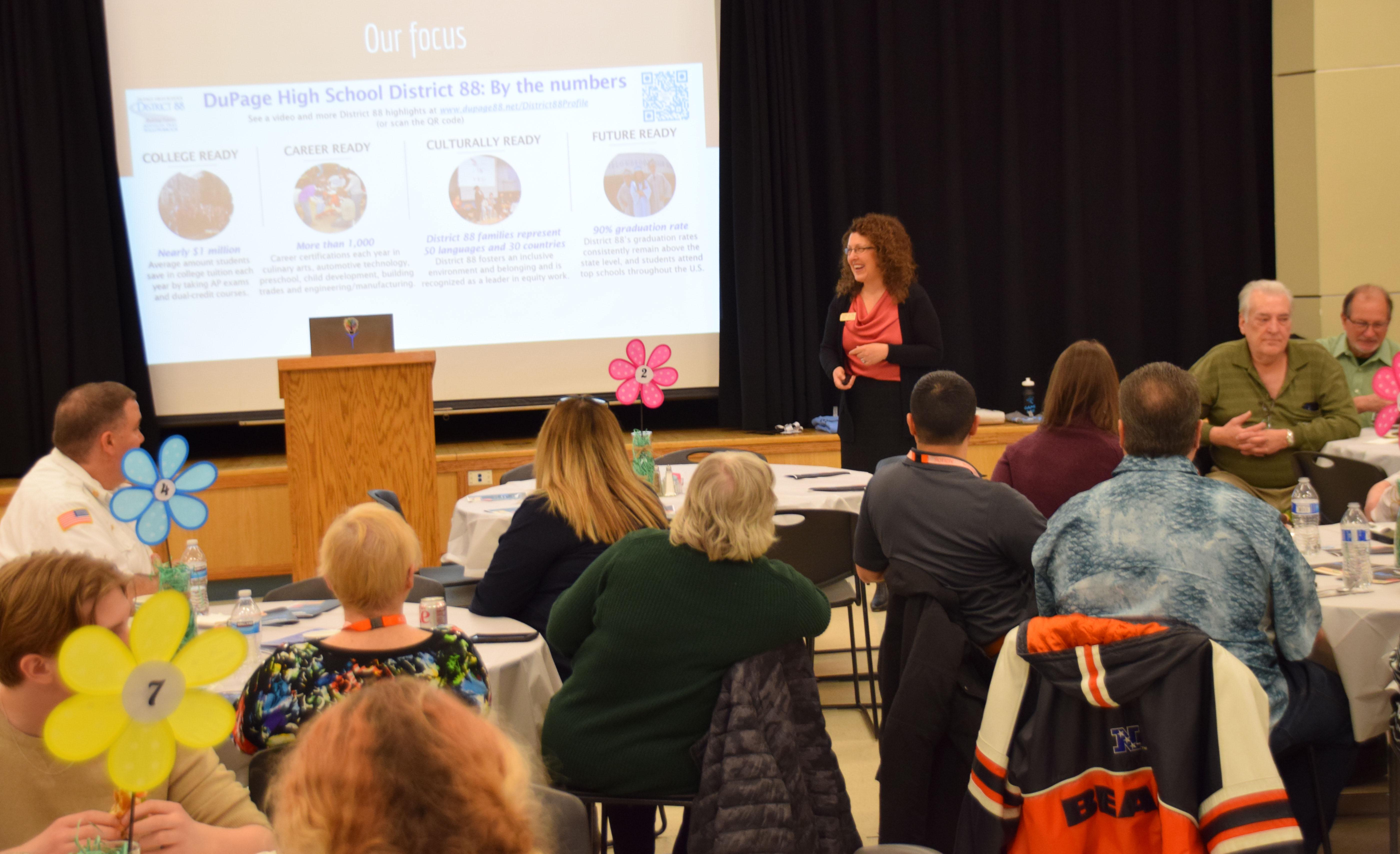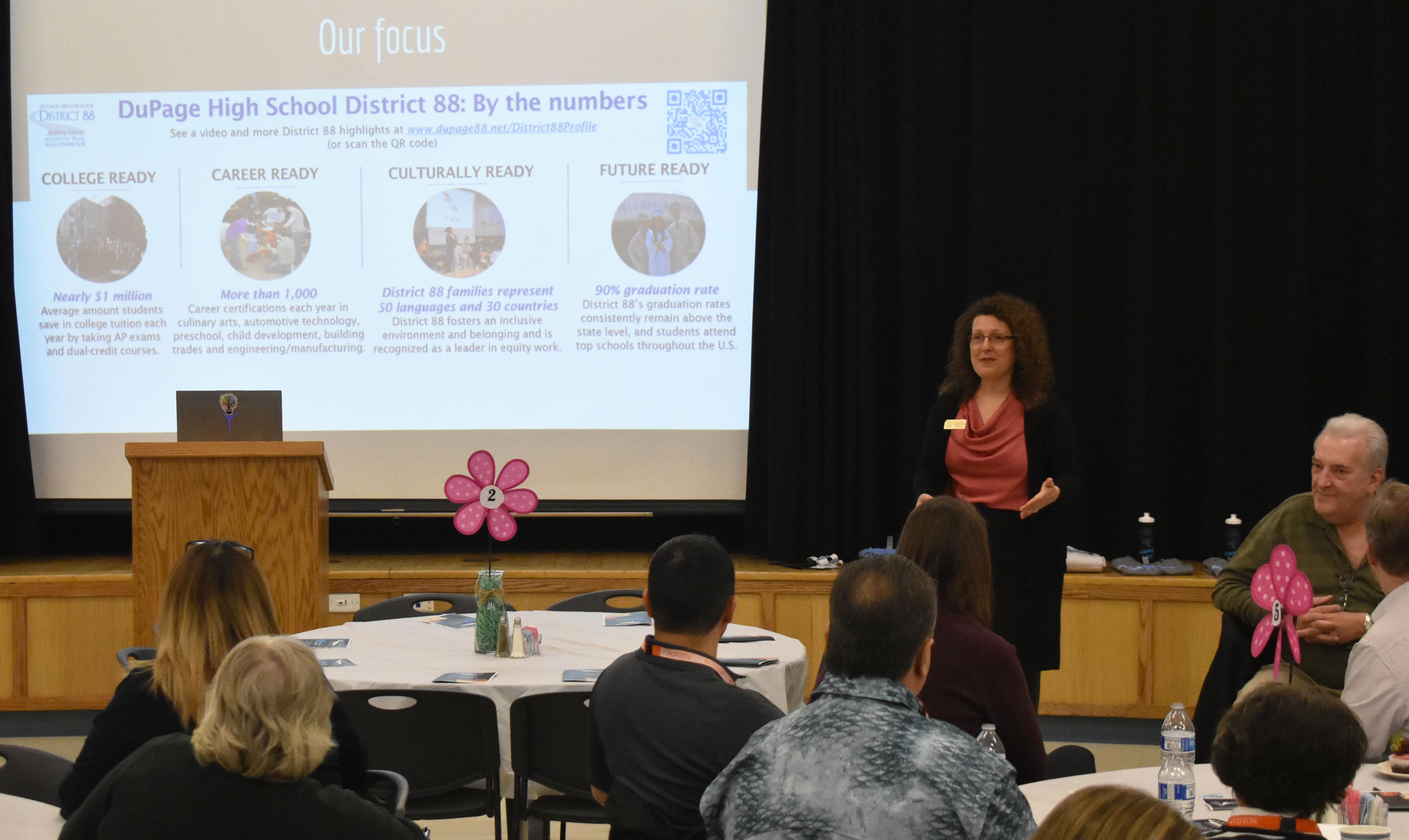 District 88 Superintendent Dr. Jean Barbanente shared information and updates about the district and school, and the presentation can be viewed at https://tinyurl.com/VPChamberLunchPresentation2023. Participants also had the opportunity to ask questions and tour the building.