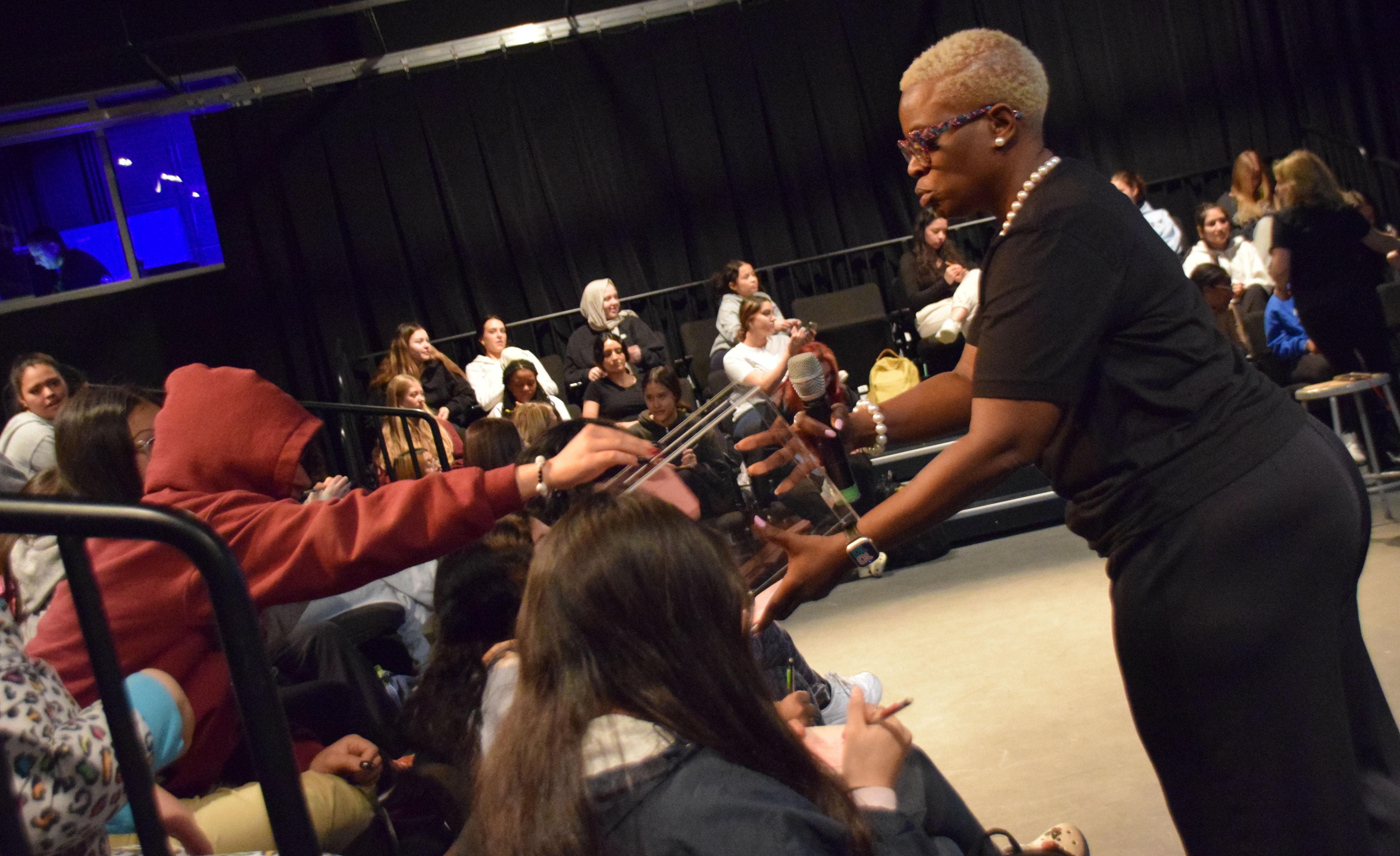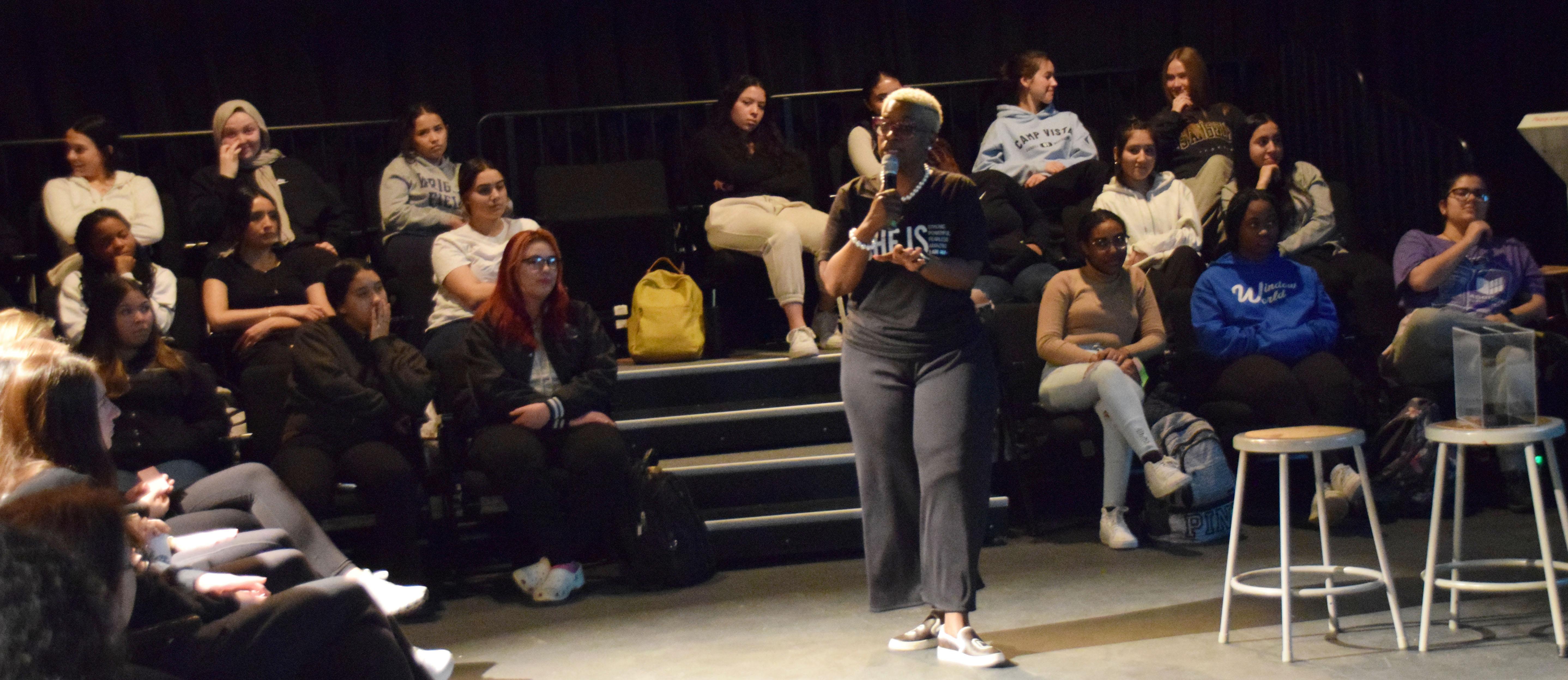The event was called S.H.E. Day, which stands for Support one another, Honor each other and Evolve together. Participants watched a video that showcased the importance of those themes within relationships. They also had an opportunity to ask questions and discuss a variety of topics with a “blue table” panel of District 88 and Addison Trail administrators and staff members. They shared thoughts about friendship, respect, caring for yourself and others, body image and more.