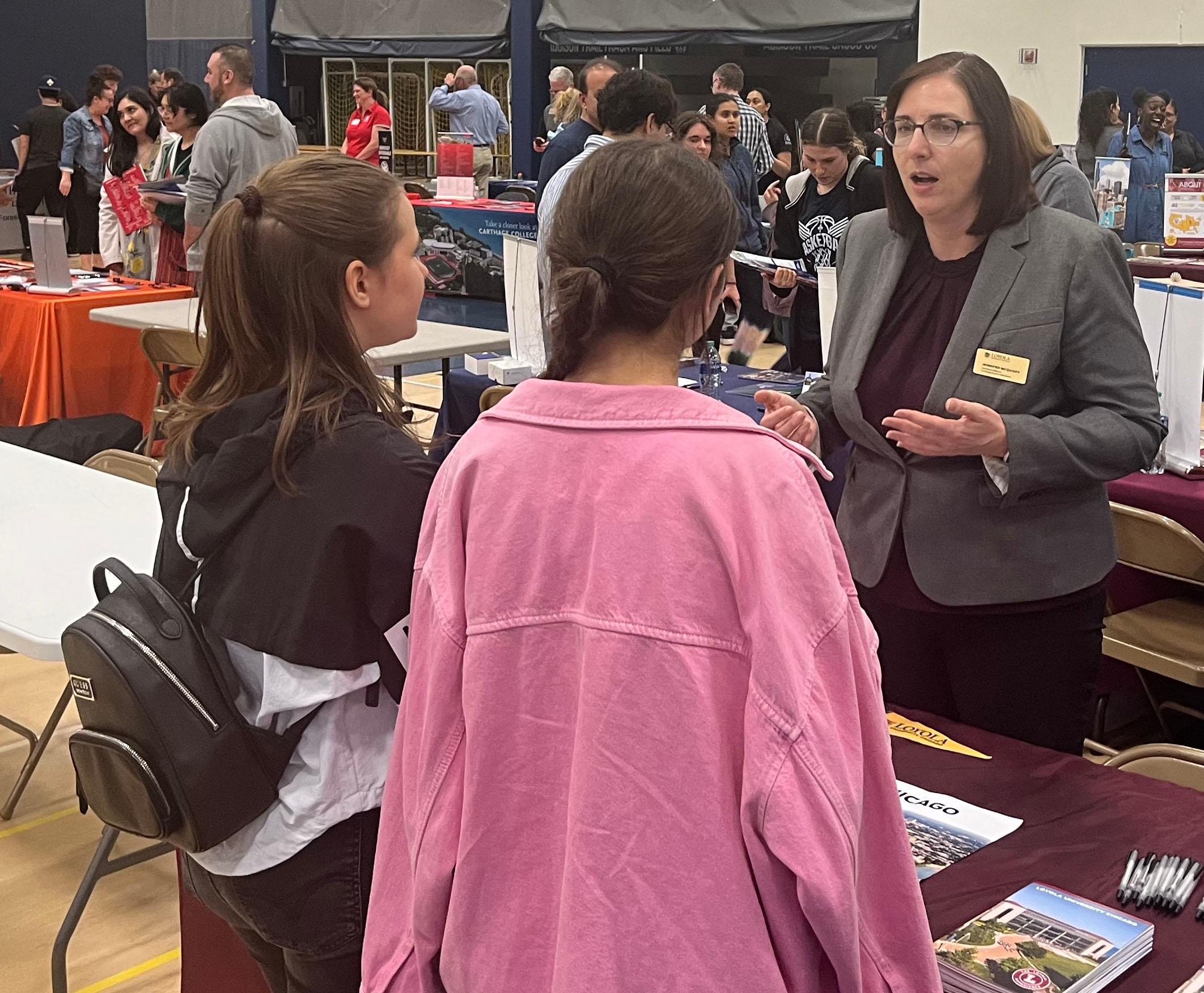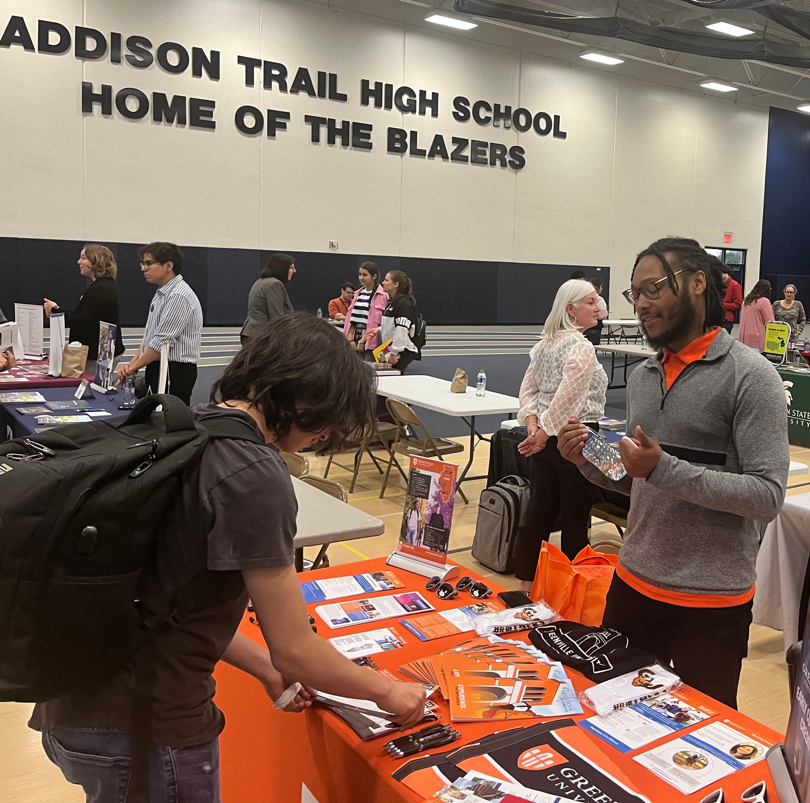 On April 20, the Addison Trail Guidance Department hosted its annual Evening College Fair. The event was open to students and families from Addison Trail, Fenton, Glenbard East, Glenbard West, IC Catholic Prep, Lake Park, Montini Catholic, Willowbrook and York.