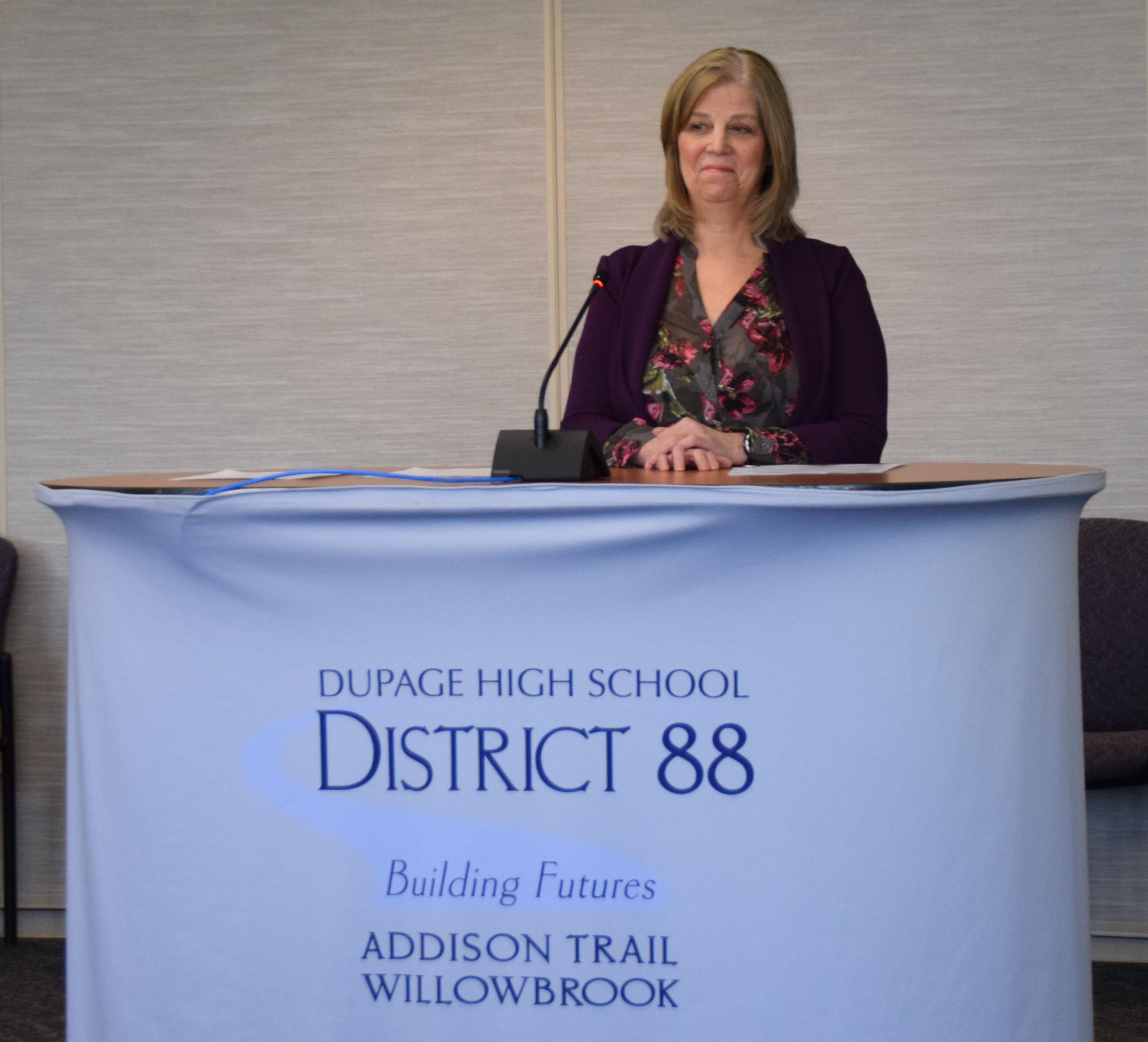 The Board and administration also thanked outgoing Board member Lisa Knauf for her years of service. Knauf received a personalized glass sculpture created by former Willowbrook Art Department Head Bob Fritz to commemorate and honor her contributions to the District 88 learning community. To watch the presentation, click on the video above.