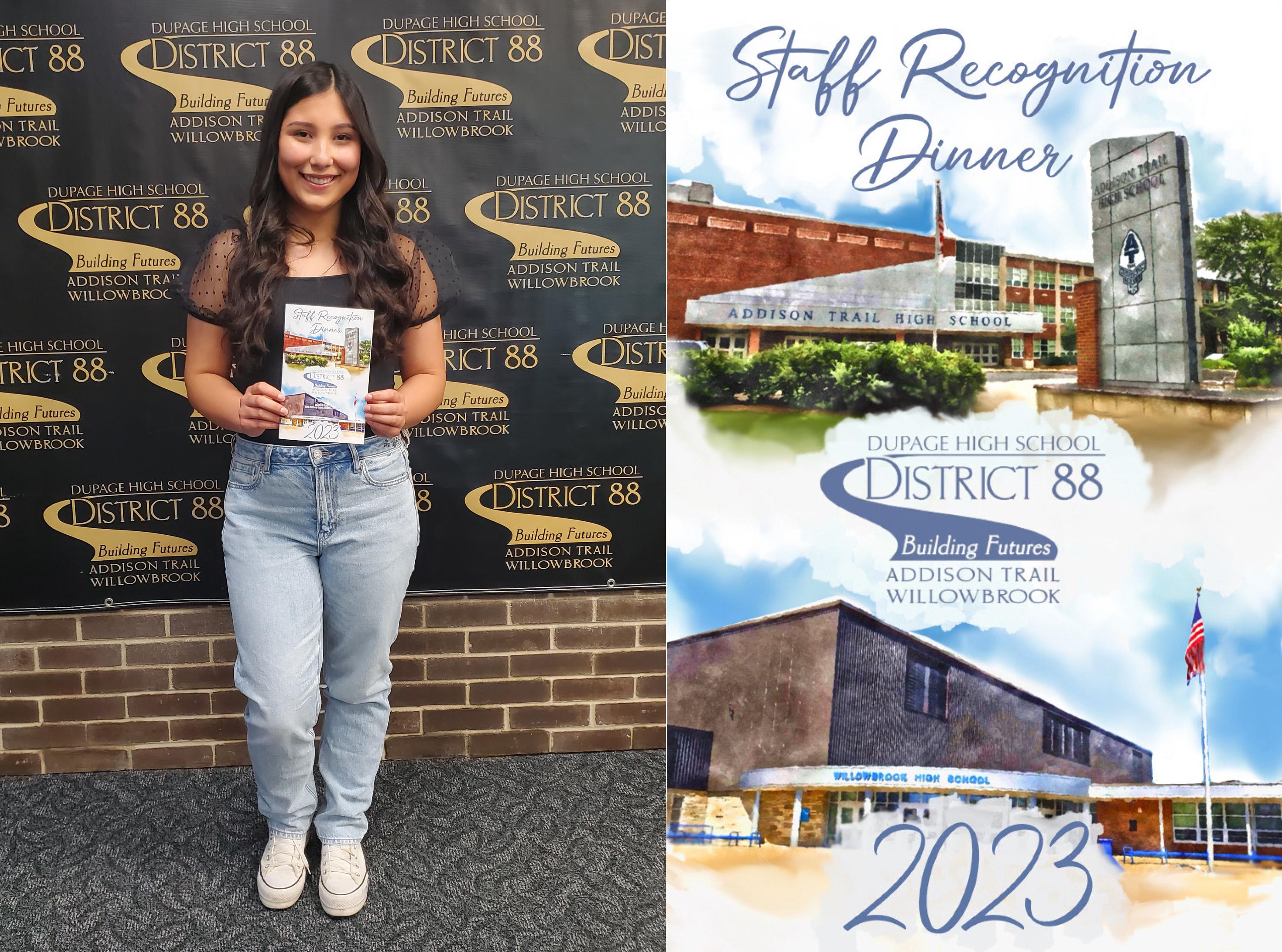 It’s fitting this event coincides with our Staff Recognition Dinner, which took place on May 5. This year, we recognized 56 members of our District 88 family for giving more than 935 years of combined service to the district. We also said thank you to nine members who will retire at the end of this school year and – combined – have given more than 160 years of service to District 88. To view the program from the event, go to https://dupage88.net/site/public/files/?item=6903. The program cover, which is pictured above, was designed by Addison Trail senior Eva De La Rosa.
