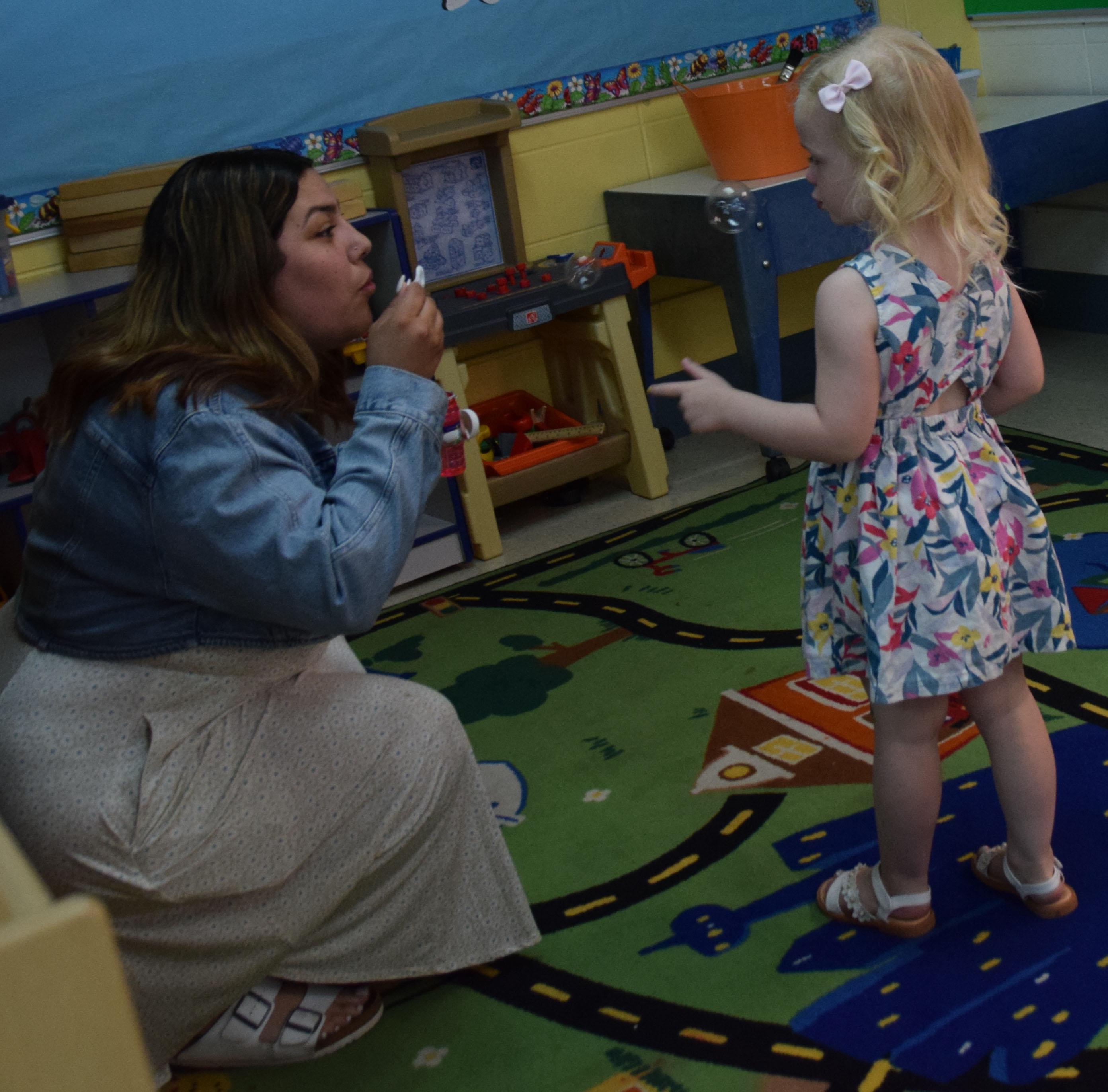The 10 children in the class are from the surrounding communities. They spent two days a week with the Little Warriors Preschool class, during which Willowbrook students conducted lessons in math, science, art, music, language arts and large/small muscle.