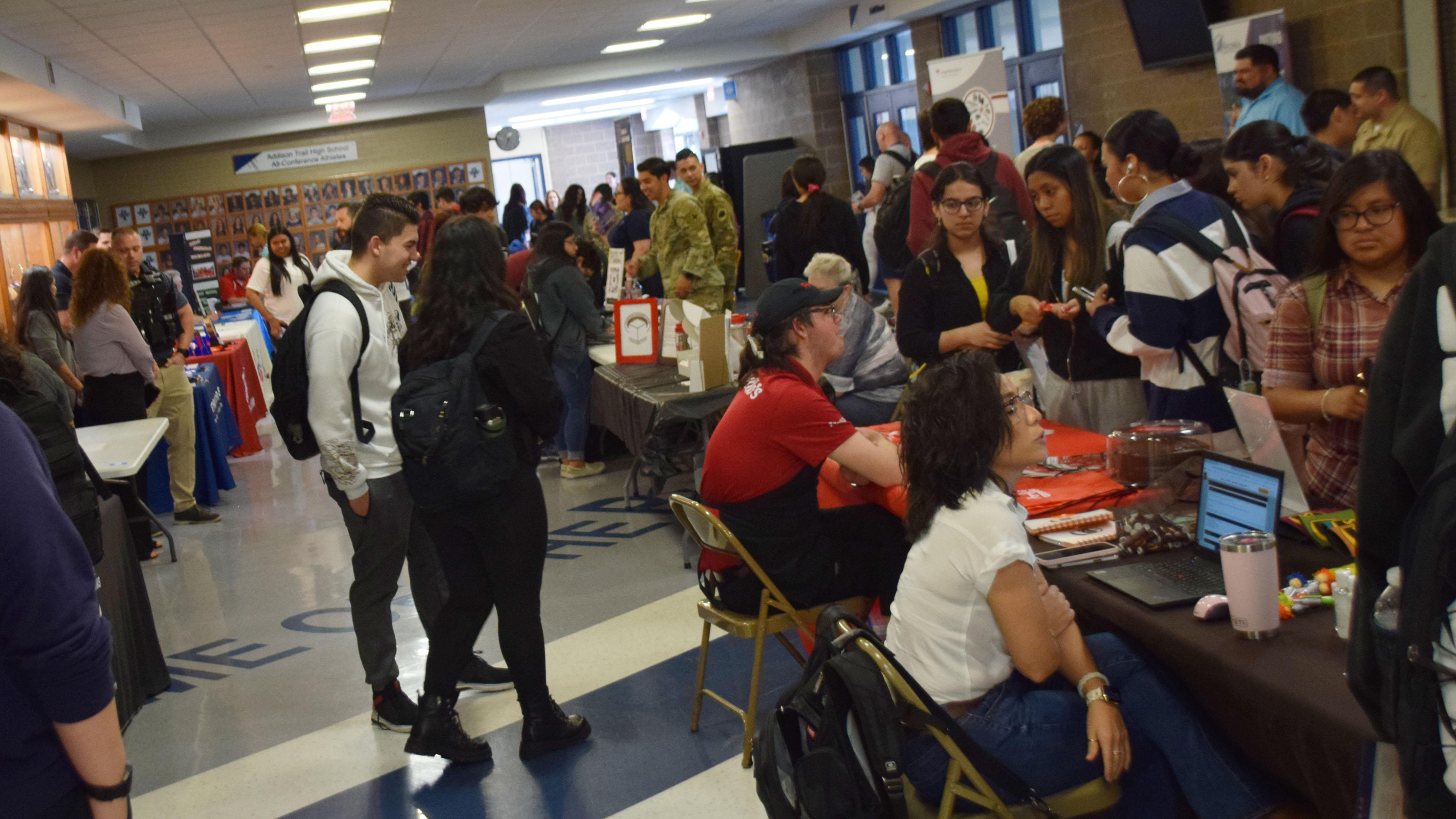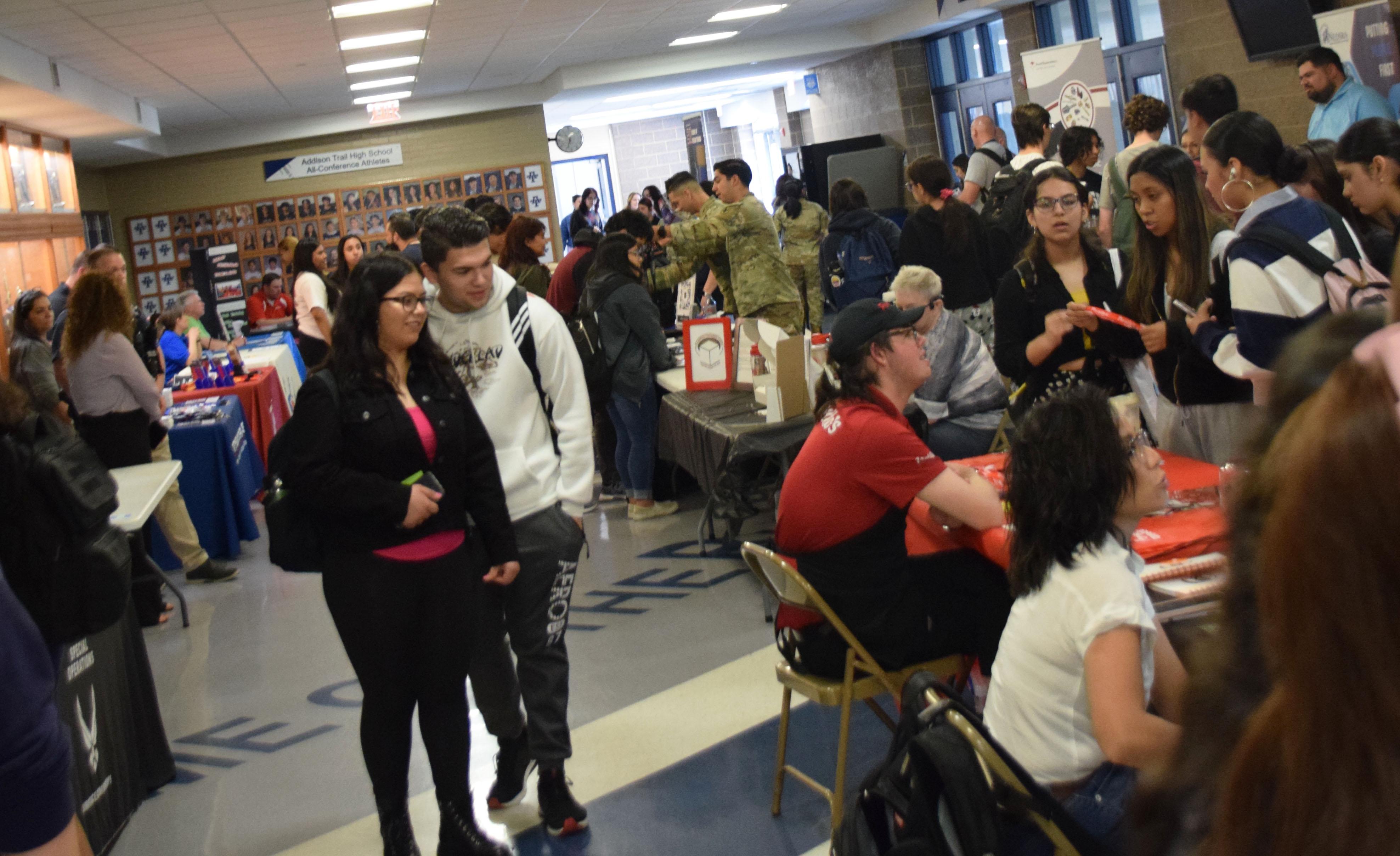 On May 11, the Addison Trail Guidance Department hosted a Senior Opportunities Fair for students who are looking for pathway options to pursue after graduation. The fair was open to all seniors (including students who plan to attend area community colleges/universities), but was focused on helping those who are undecided develop a post-secondary plan.