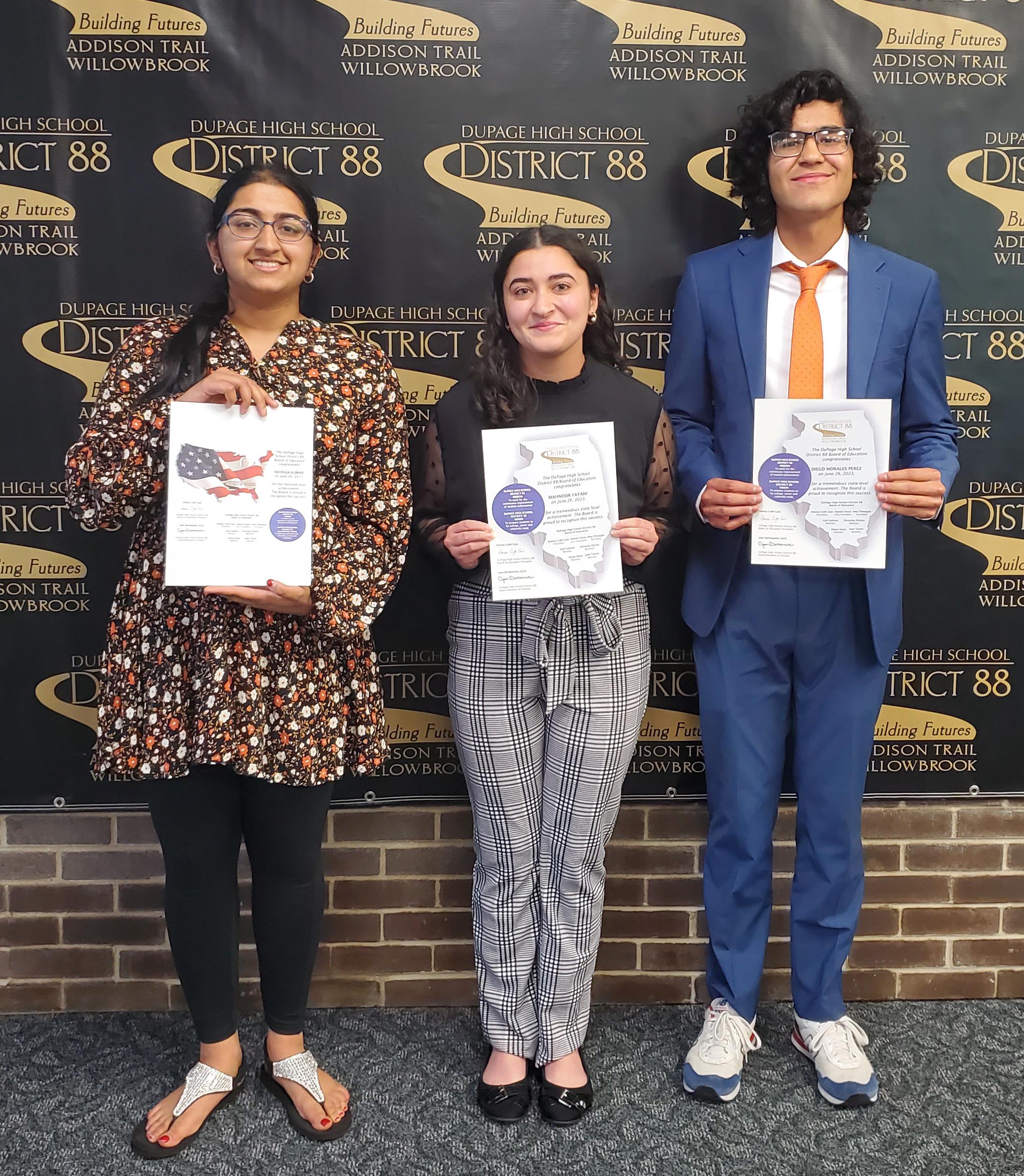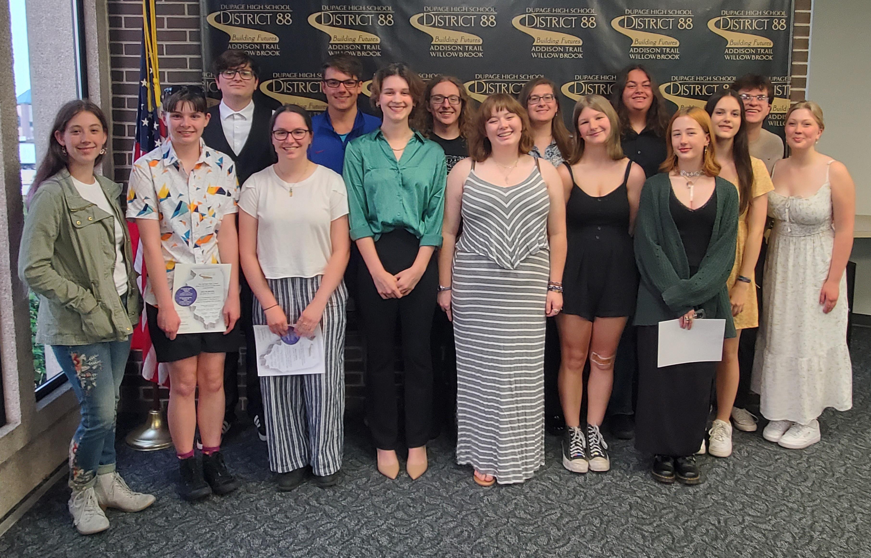 During its June 26 meeting, the District 88 Board of Education celebrated Addison Trail and Willowbrook students for their State-level and National-level achievements from the spring season of the 2022-23 school year.
