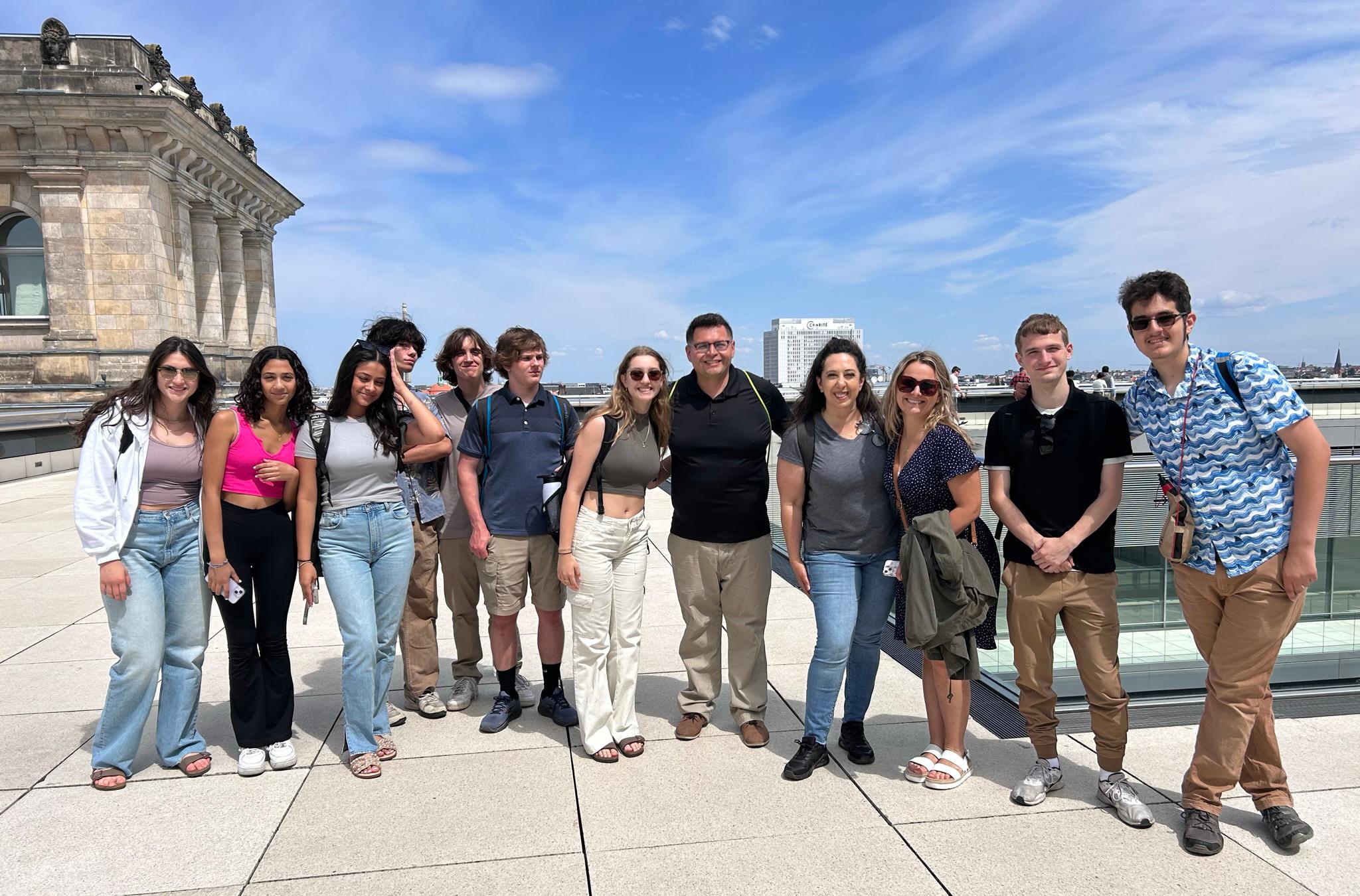 During their travels, students stayed with host families and attended school at Helmholtzschule in Frankfurt to learn about the German education system. They presented to English classes about American history, schools/colleges, food, music culture and famous landmarks. They also visited Berlin for four days and went sightseeing, which included participating in bicycle tours and hikes to view the area.