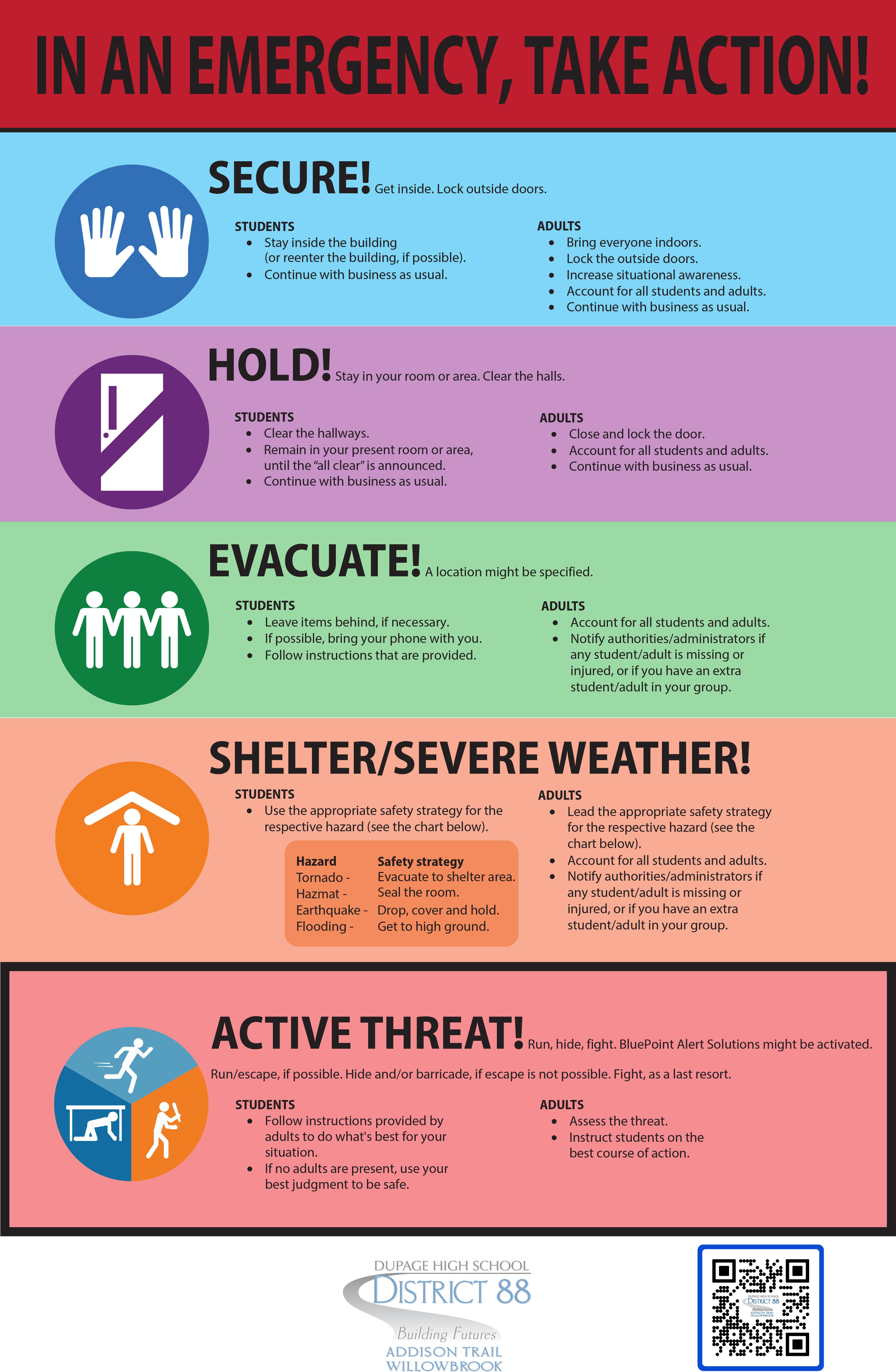 As part of that commitment to safety, District 88, along with school districts throughout DuPage County, has adopted emergency-situation guidance/a standard response protocol provided by the “I Love U Guys” Foundation (https://iloveuguys.org). This will be implemented at the start of the 2023-24 school year.