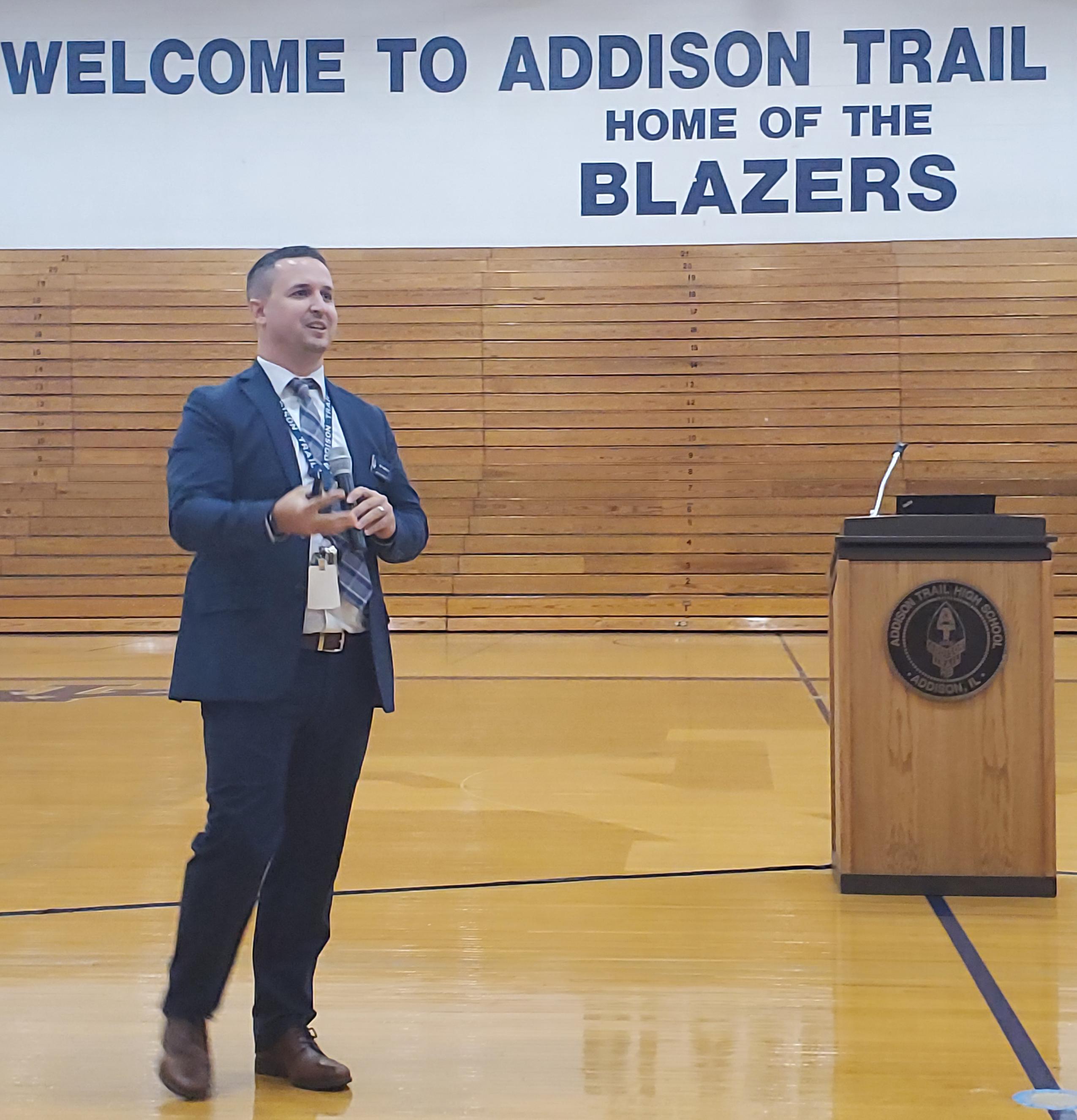 Participants were able to tour the building, meet administrators and staff members and learn about Addison Trail’s curriculum as they followed an abbreviated version of their child’s daily schedule. Principal Jack Andrews welcomed the group and shared successes of Addison Trail, as well as important information for the school year.
