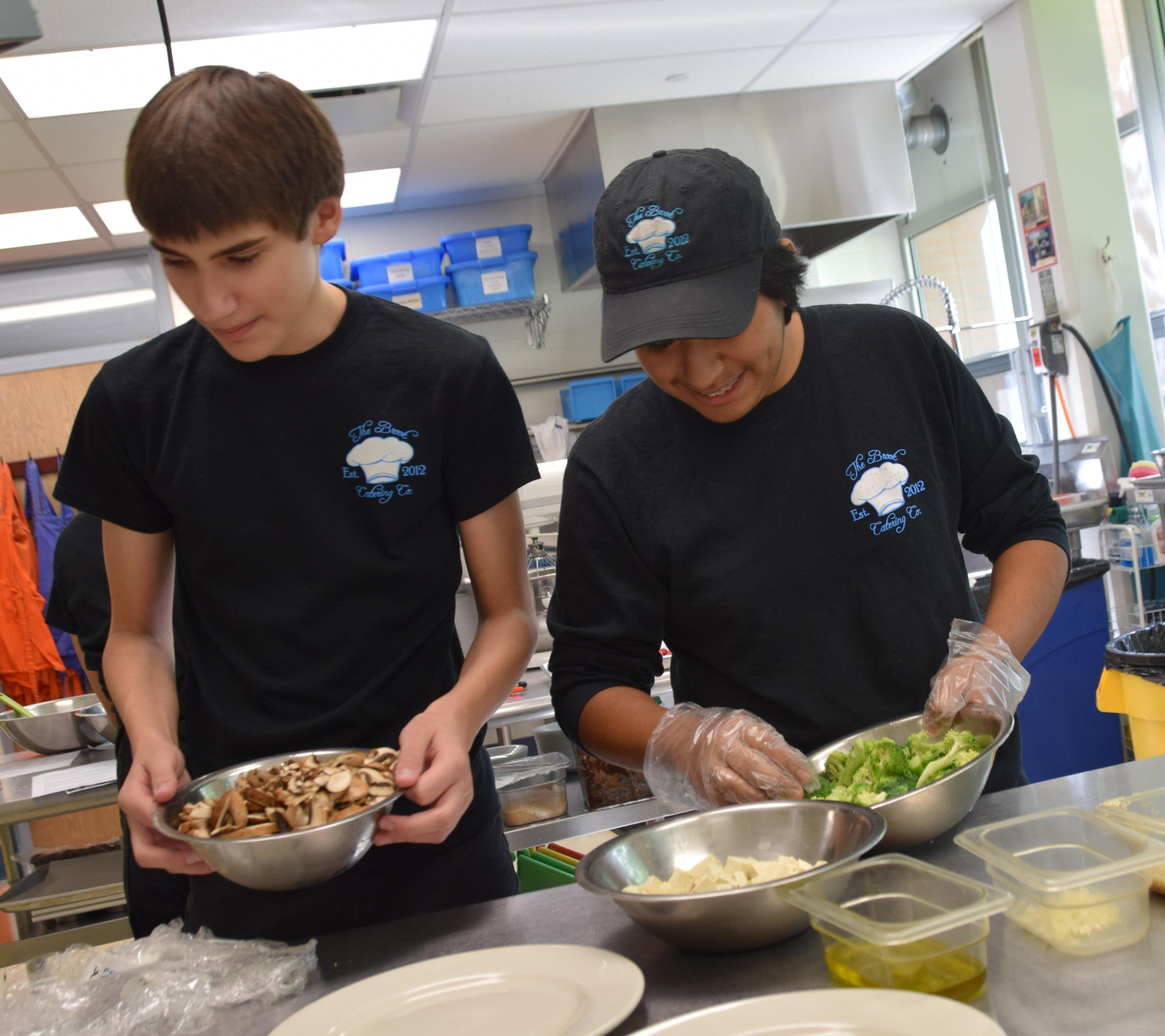 Through The Brook Catering Co., students enrolled in Culinary Arts 3 – Catering learn about event planning, scaling recipes, ordering groceries, figuring costs in a lab setting and working with clients to determine themes and menus. The course prepares students for careers in the food service industry, catering and nutrition/menu planning. Students in this program earn dual credit, have an honors option and are certified ServSafe safety and sanitation managers. The Brook Catering Co. provides service for many events within the school, as well as throughout the community.