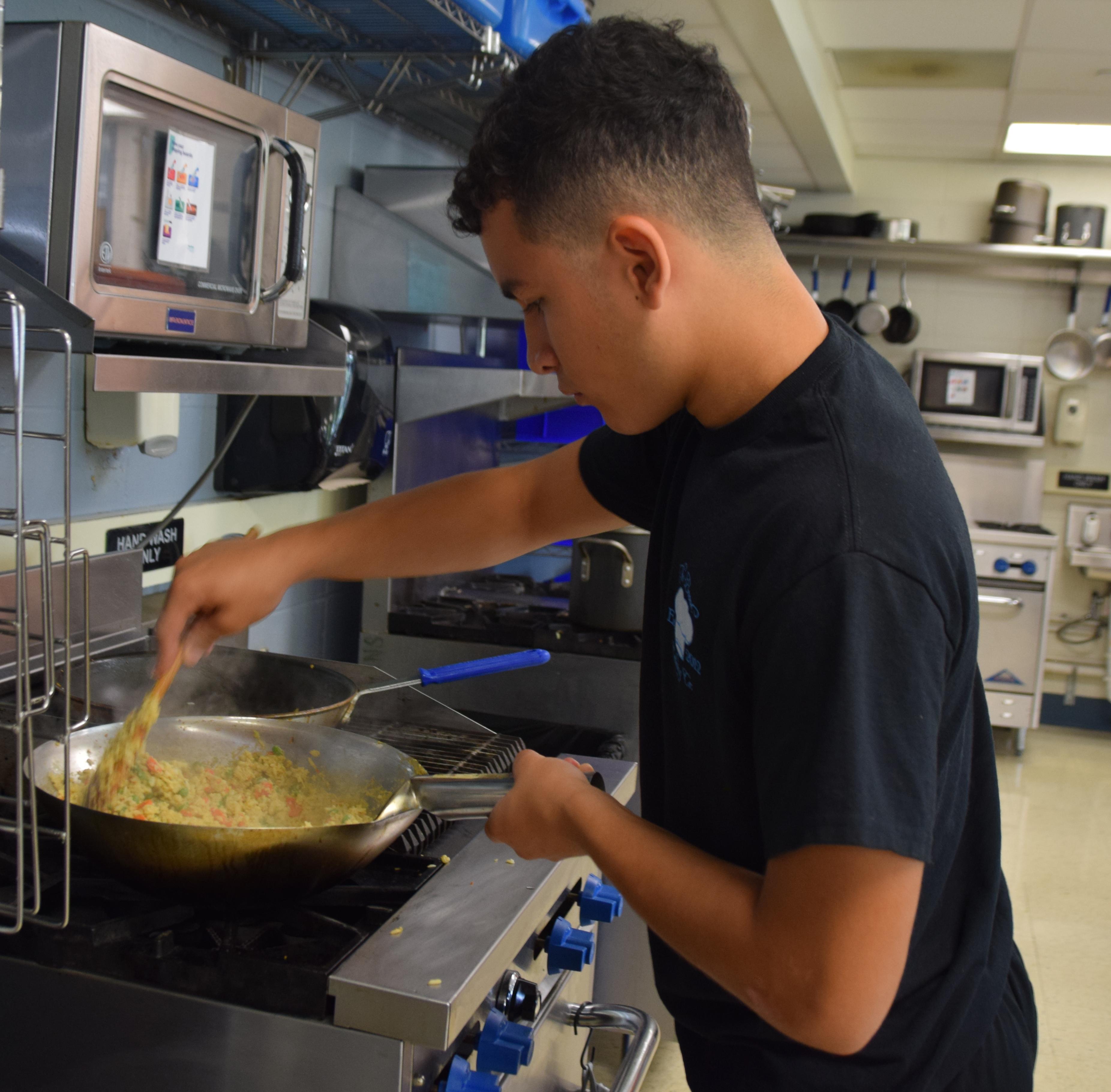 Willowbrook culinary students who are part of The Brook Catering Co. prepare their Tour of Asia luncheon for staff members on Sept. 14.