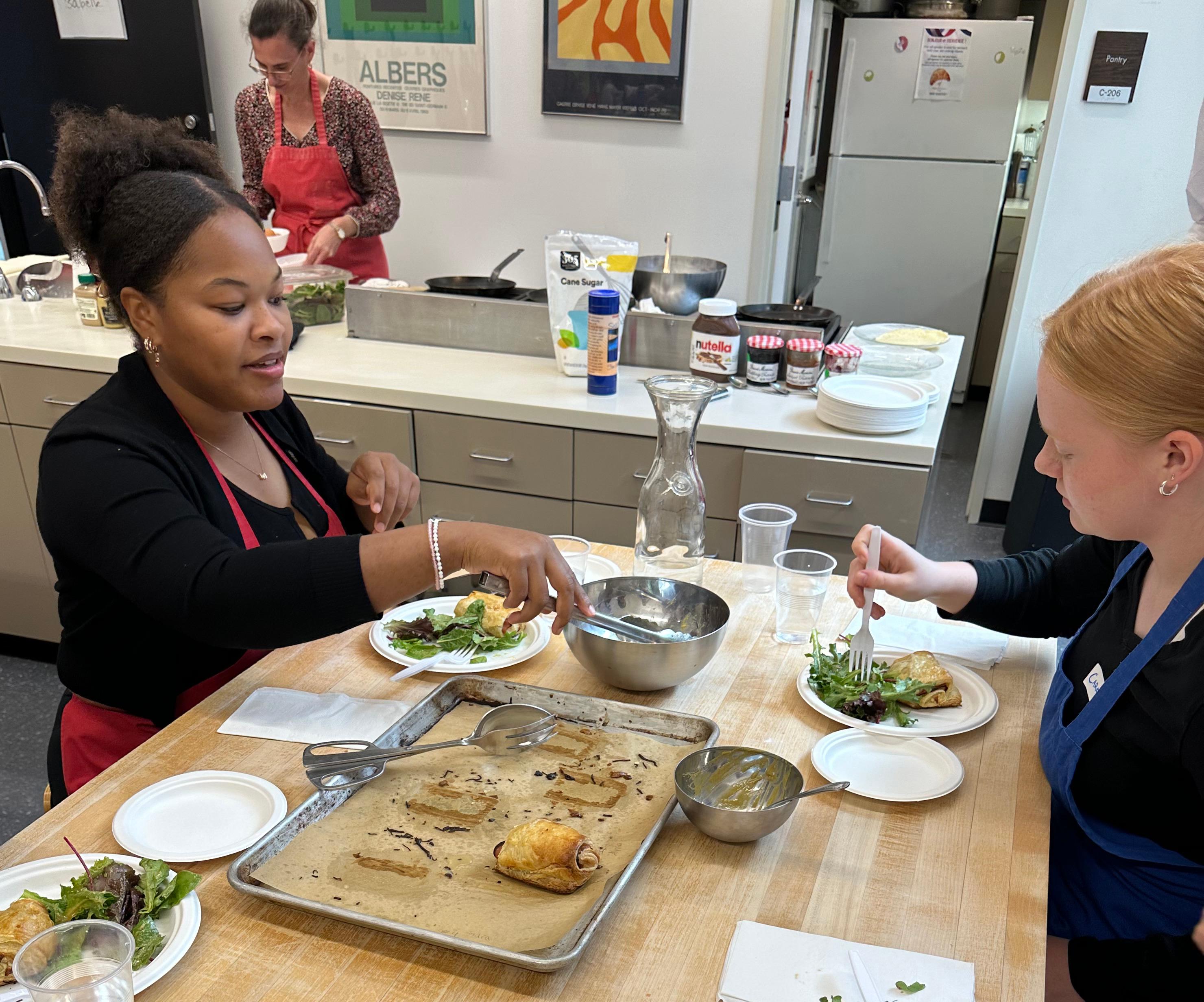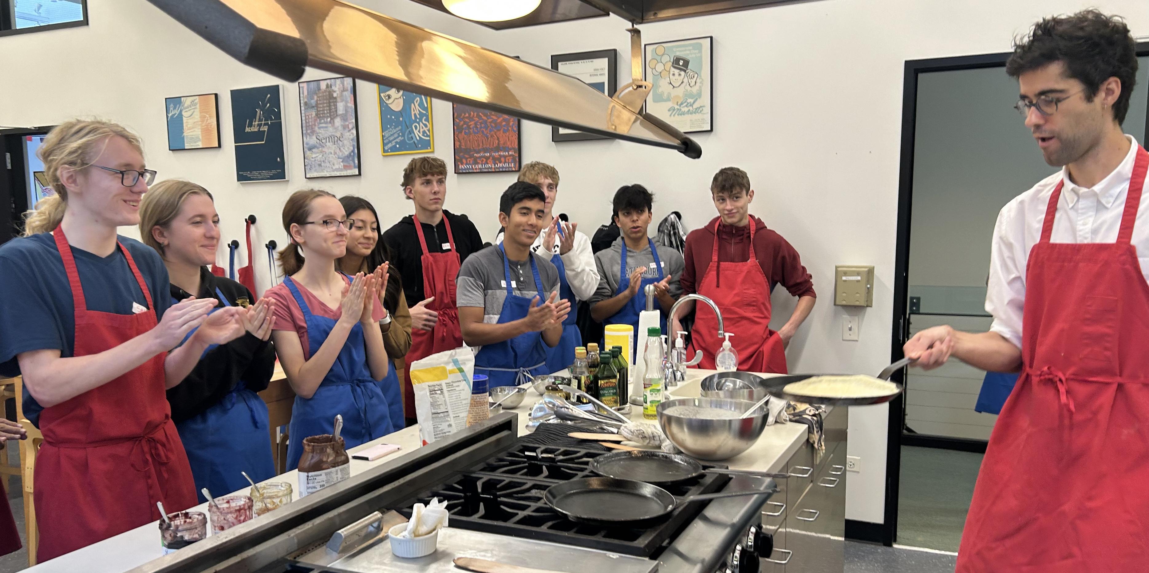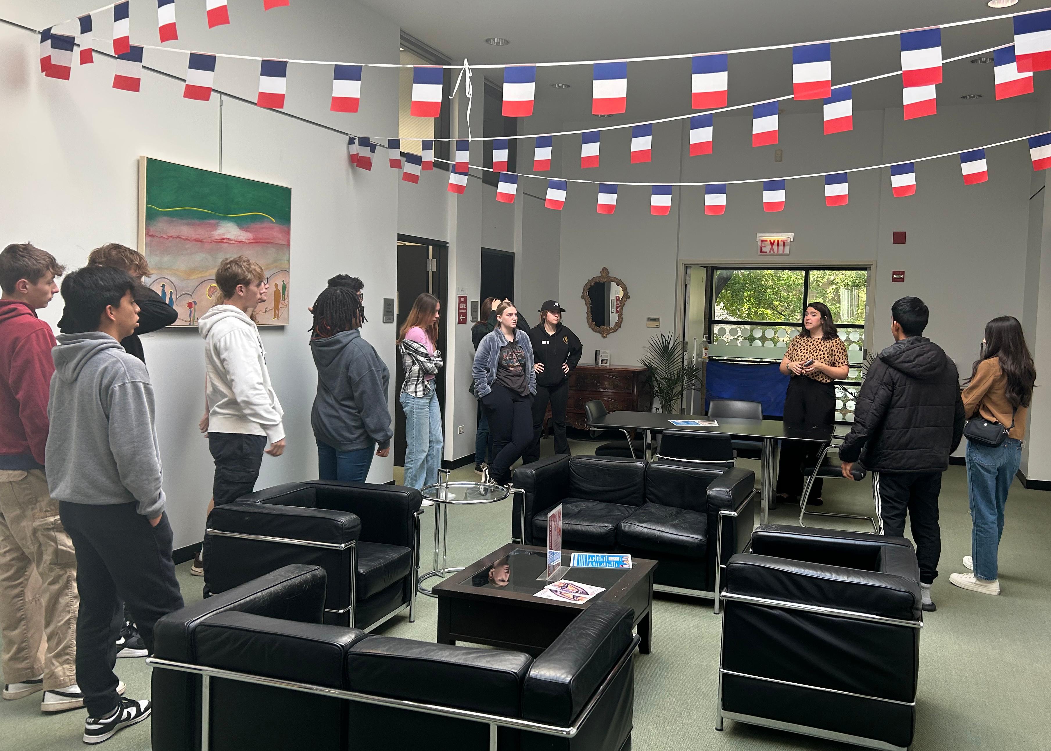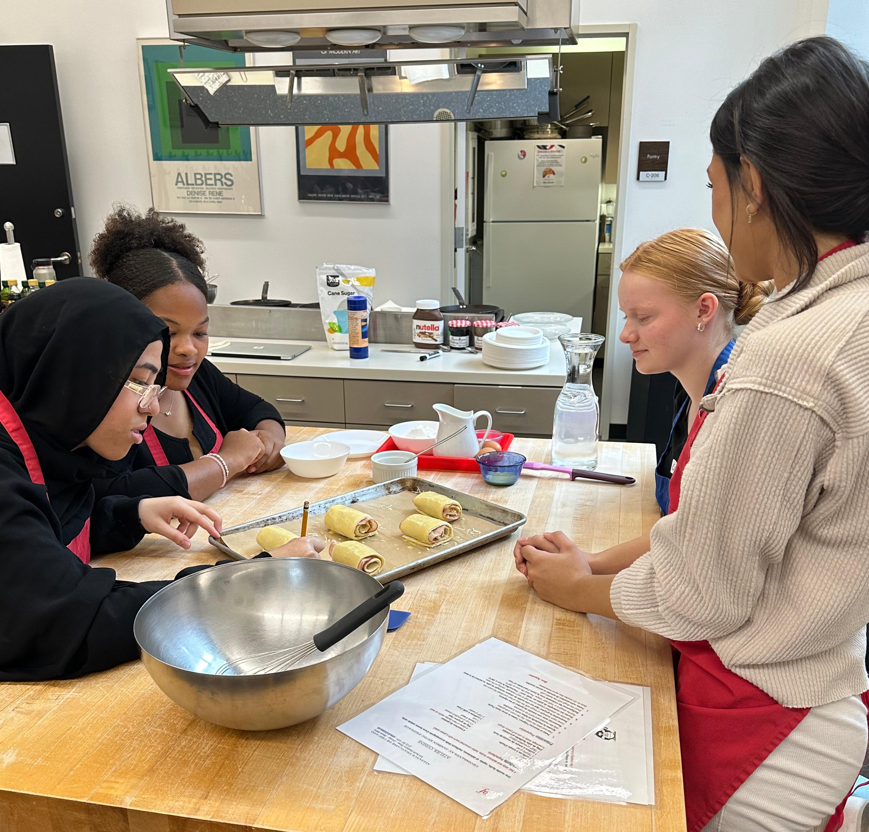 During the field trip, pupils attended a cooking class taught in French, where they learned how to make croissants au jambon et fromage (ham and cheese sandwiches), salade verte avec vinaigrette (green salad with vinaigrette) and crêpes sucrées (sweet crepes). They then watched the film “Le Chef” (2014) and toured the Alliance Française de Chicago. Founded in 1897 with the mandate to promote French culture in Chicago, the Alliance Française is among the oldest of cultural institutions in the city. Read more at https://www.af-chicago.org/.
