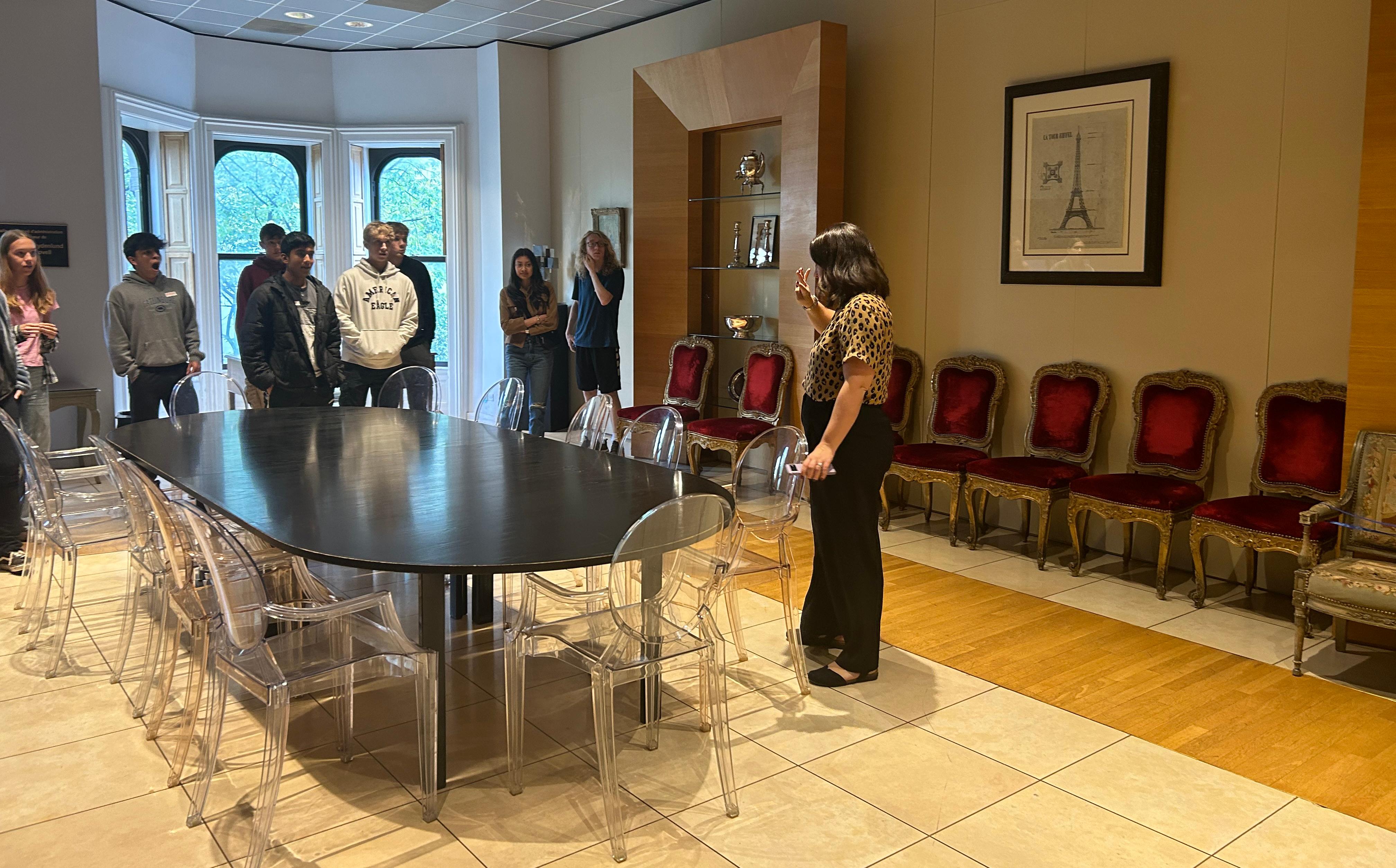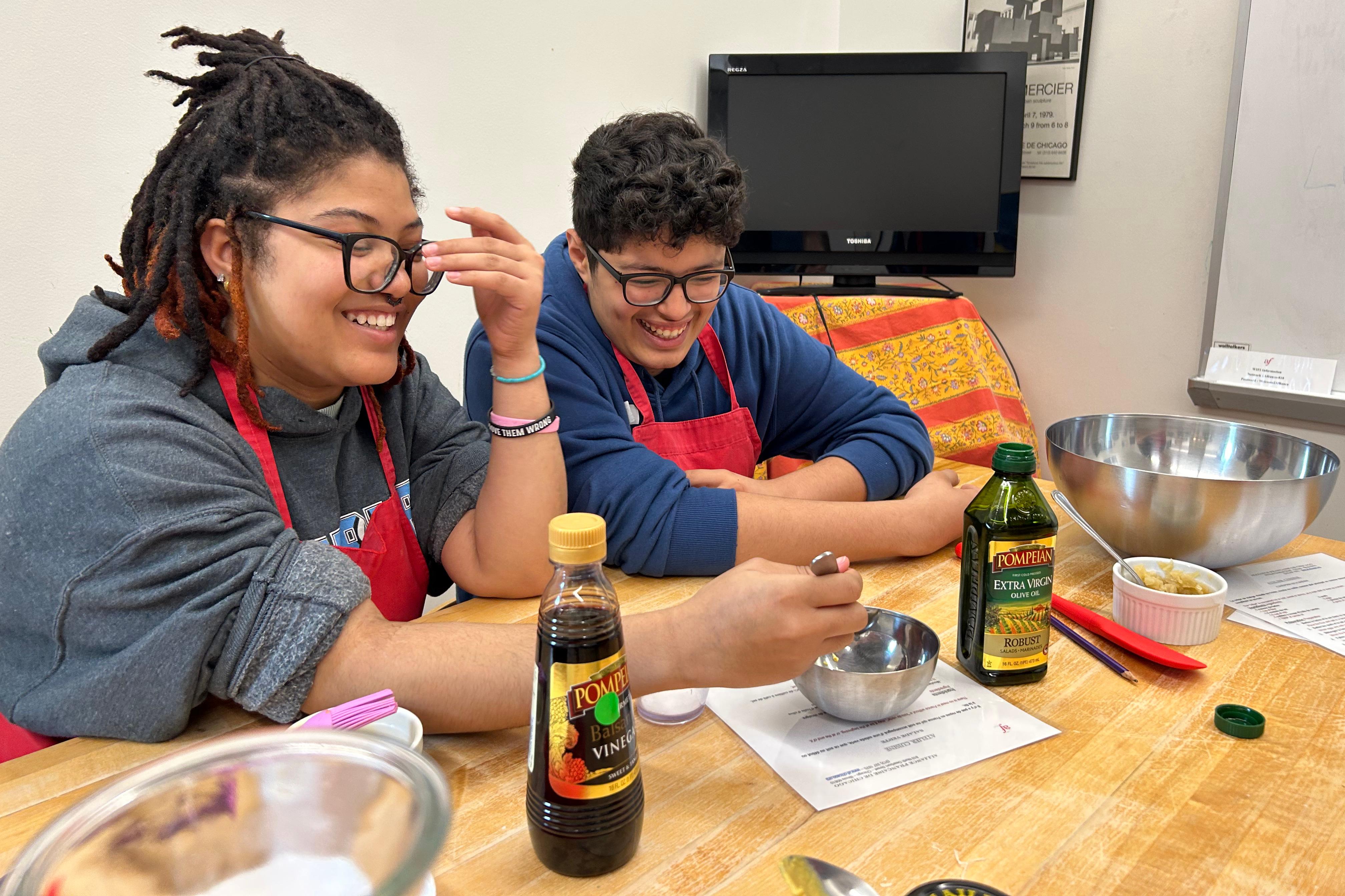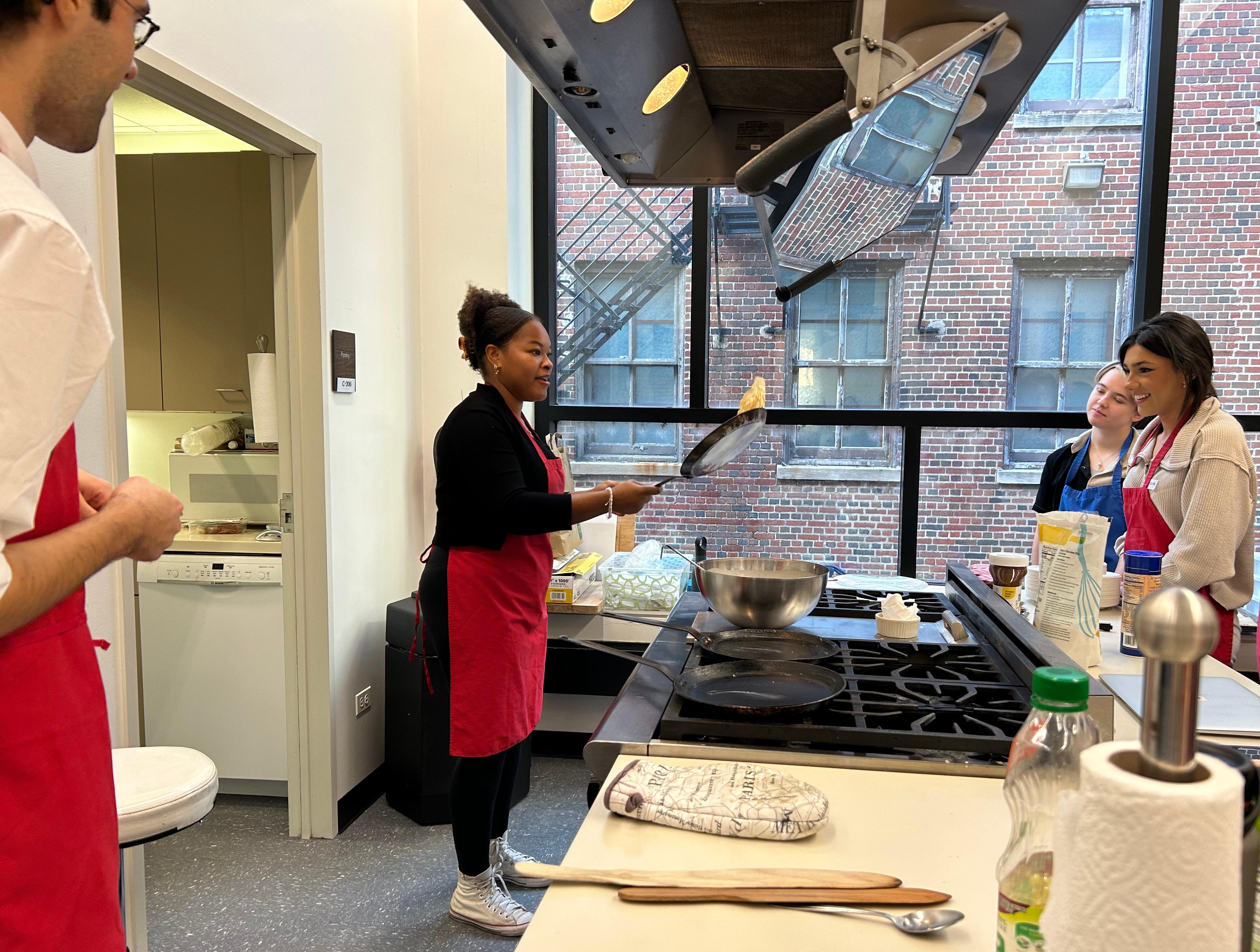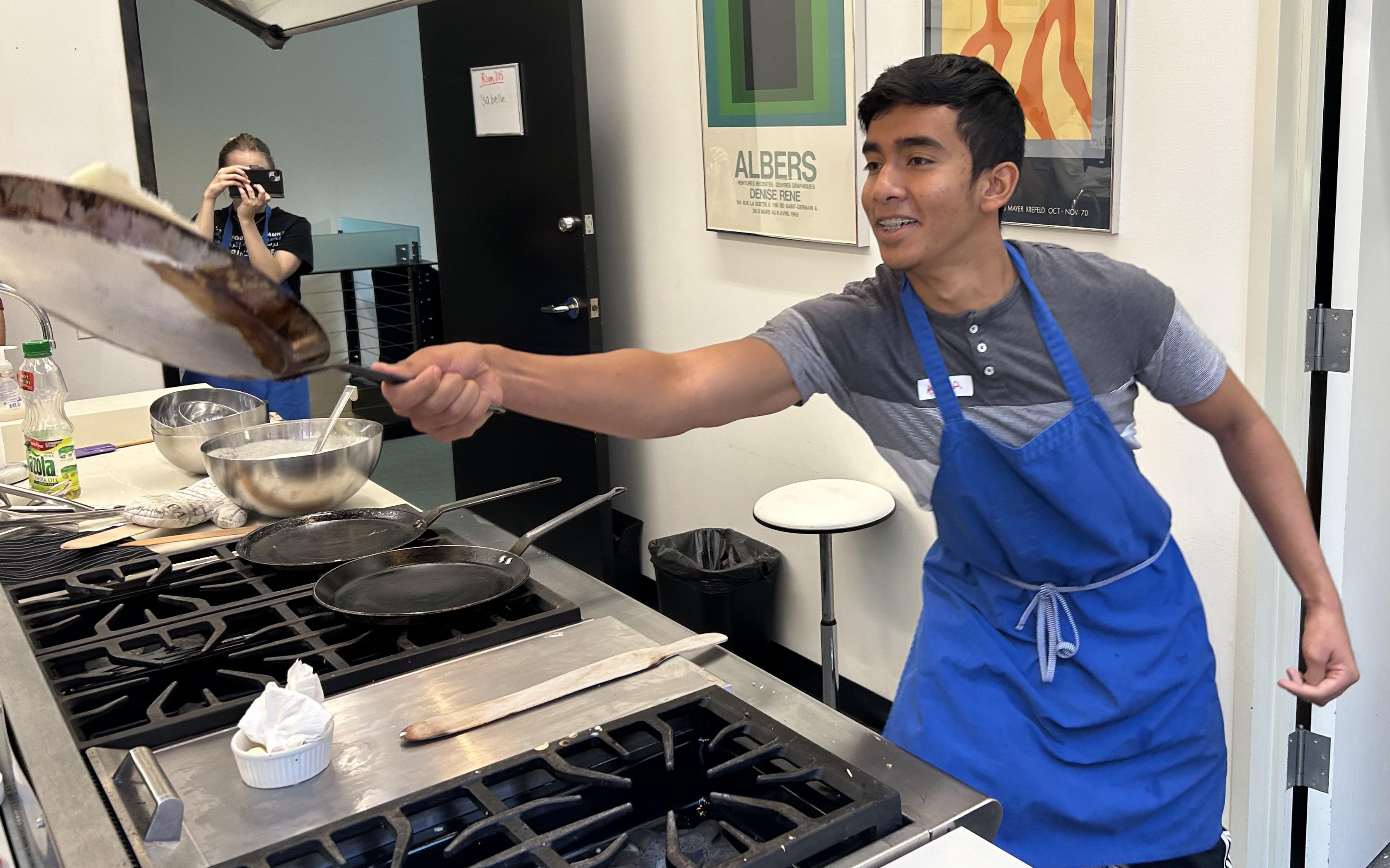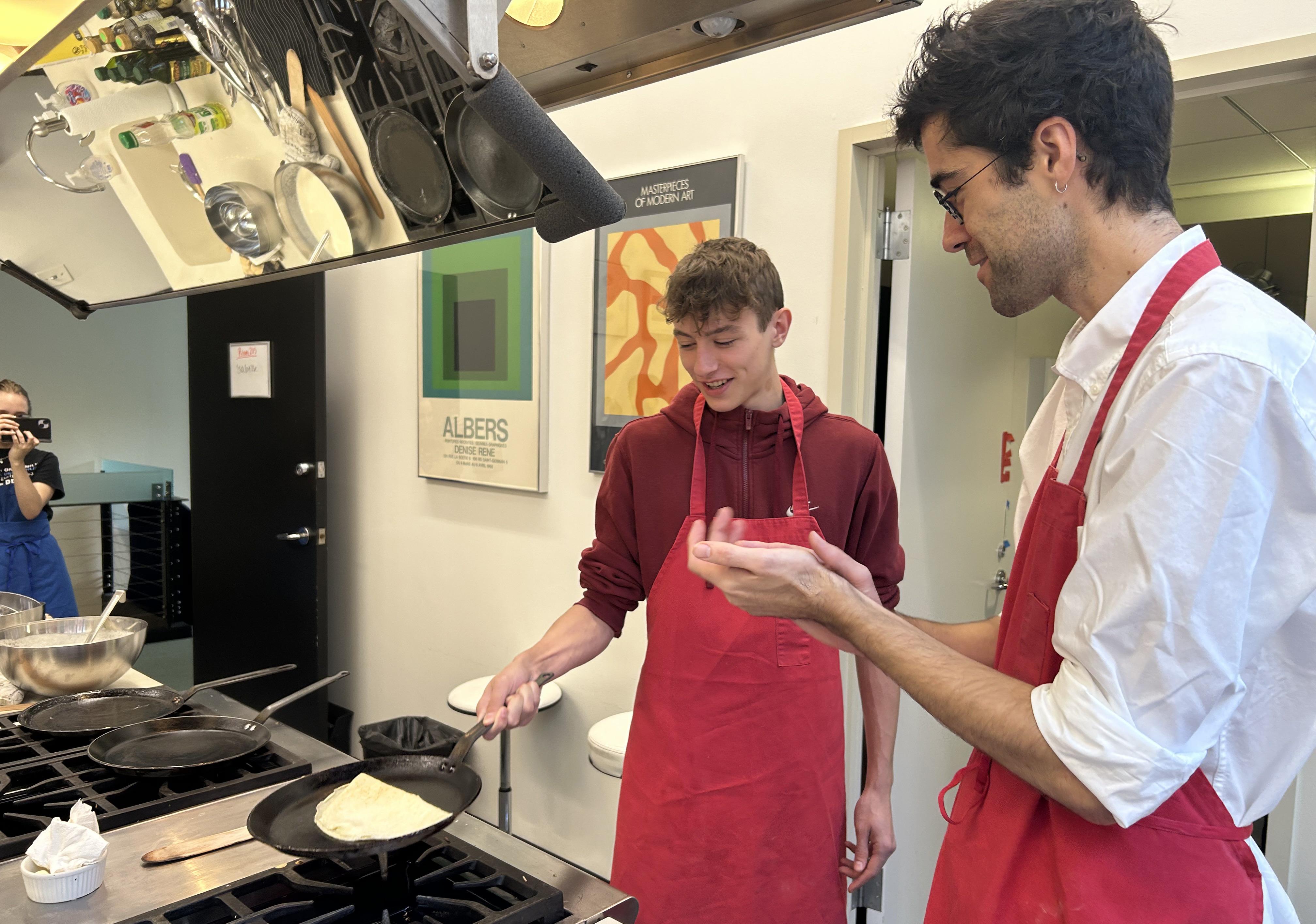 During the field trip, pupils attended a cooking class taught in French, where they learned how to make croissants au jambon et fromage (ham and cheese sandwiches), salade verte avec vinaigrette (green salad with vinaigrette) and crêpes sucrées (sweet crepes). They then watched the film “Le Chef” (2014) and toured the Alliance Française de Chicago. Founded in 1897 with the mandate to promote French culture in Chicago, the Alliance Française is among the oldest of cultural institutions in the city. Read more at https://www.af-chicago.org/.