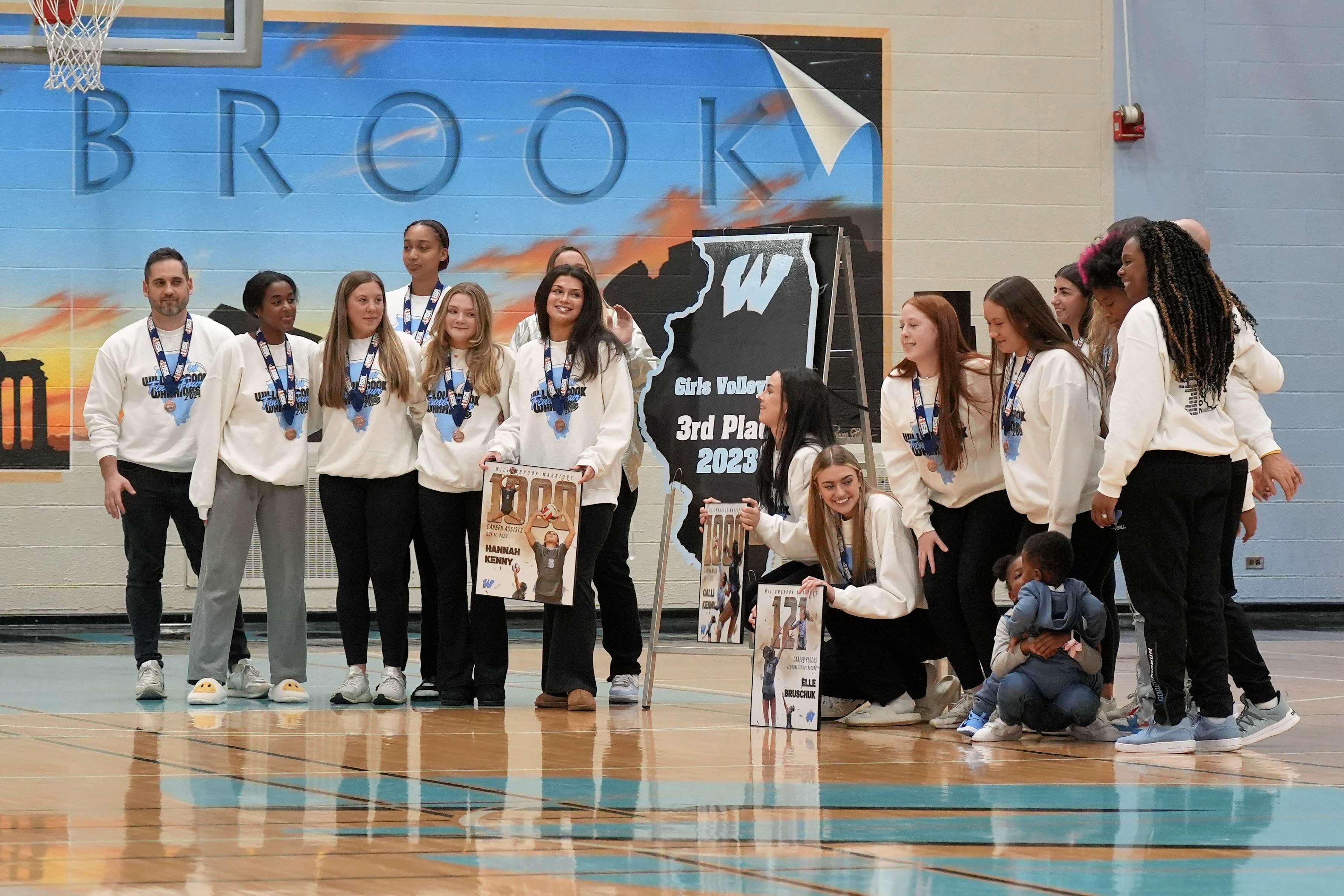 The night also included ceremonies to unveil the state banners for the Flag Football Team and the Girls Volleyball Team. Flag Football placed third in the Chicago Bears Girls Flag State Championship, and Girls Volleyball placed third in the Illinois High School Association (IHSA) Class 4A State Finals.
