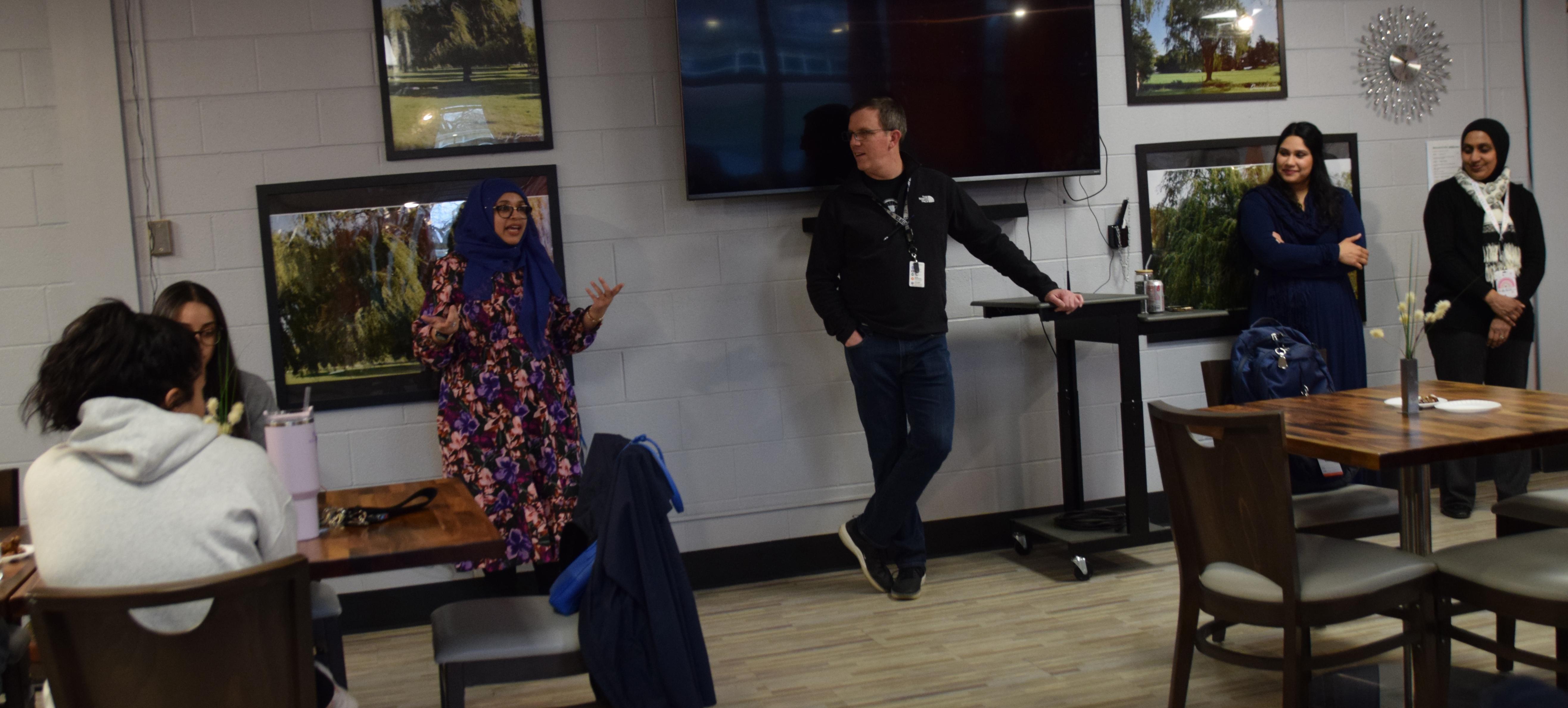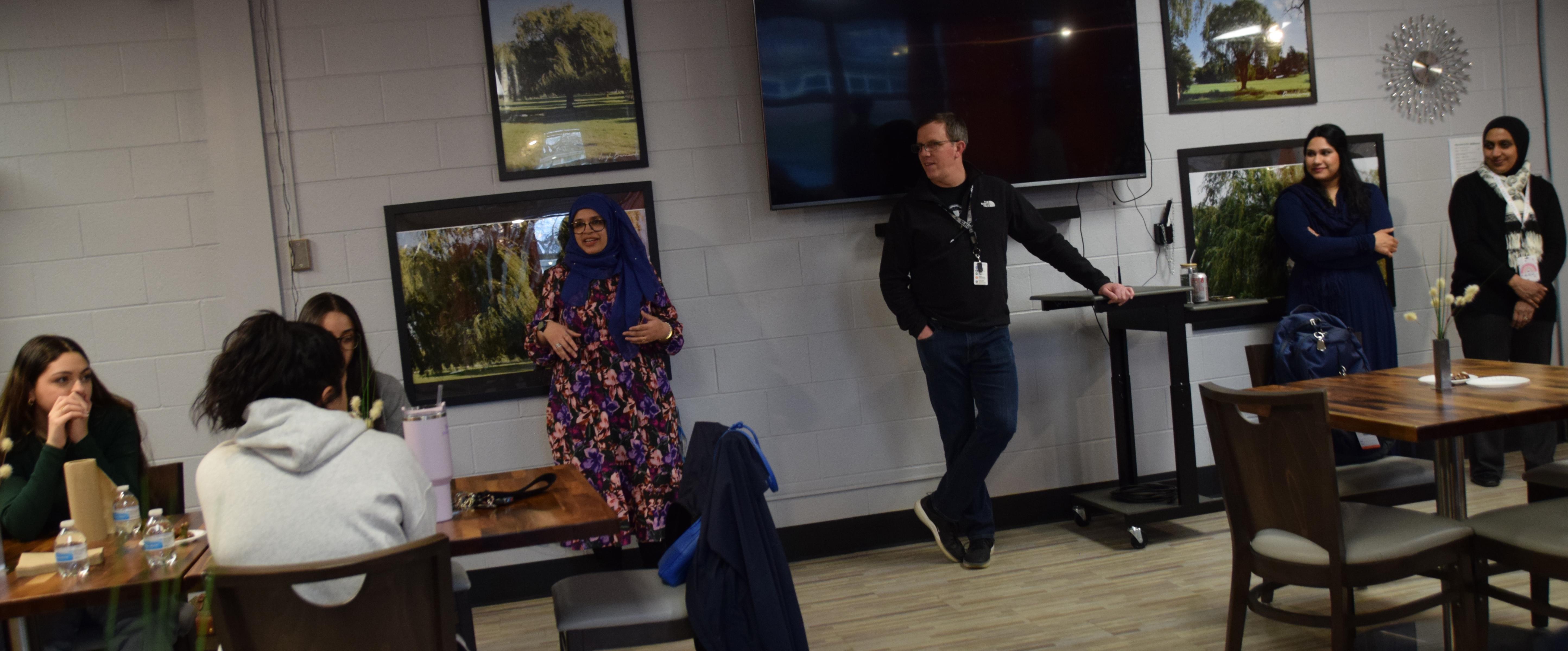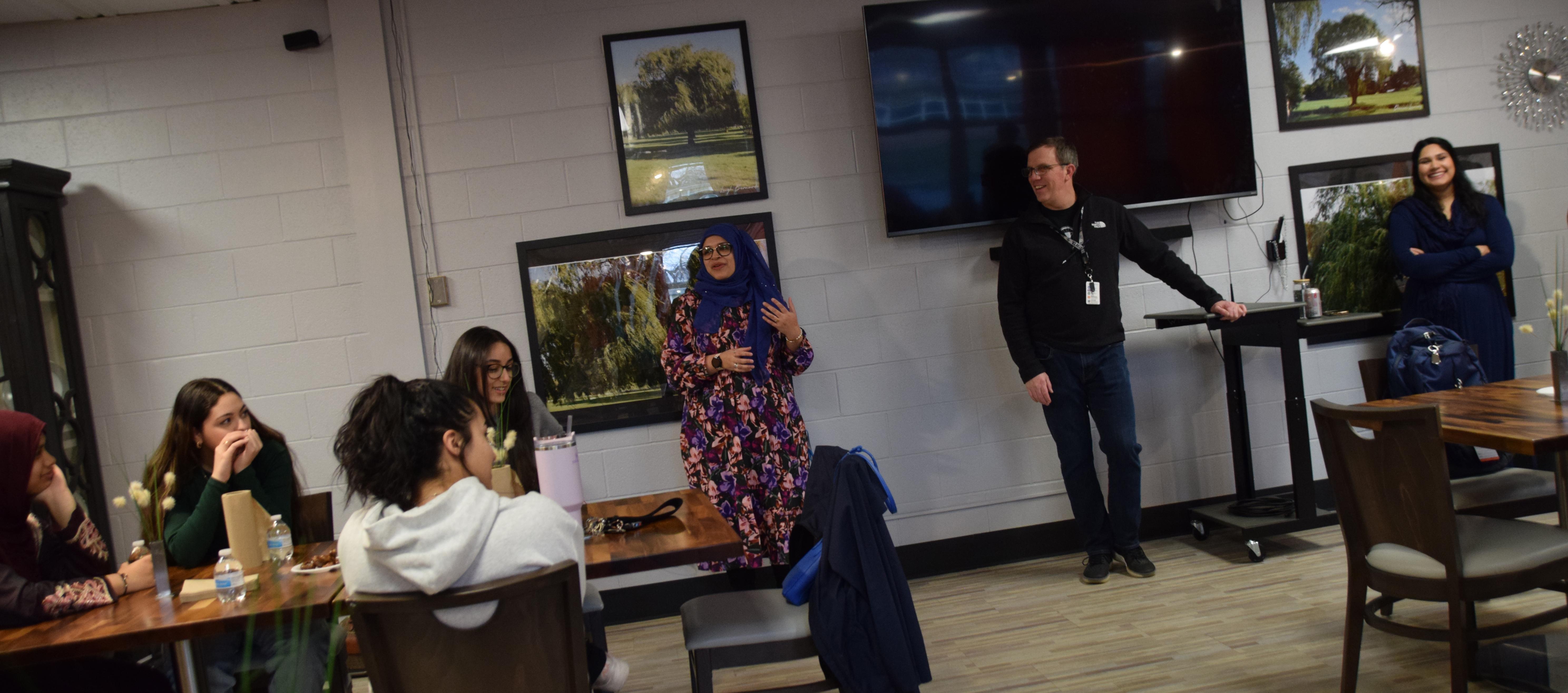 About 40 people attended the event at Willowbrook, where they enjoyed an iftar meal (a fast-breaking meal eaten by Muslims during the month of Ramadan). The dinner included items such as rice, salads, lamb, chicken, pita and desserts. Following Muslim tradition, participants broke the fast by eating a date and having a drink of water. Staff members and students shared their experiences with the group and reflected on the significance of Ramadan.