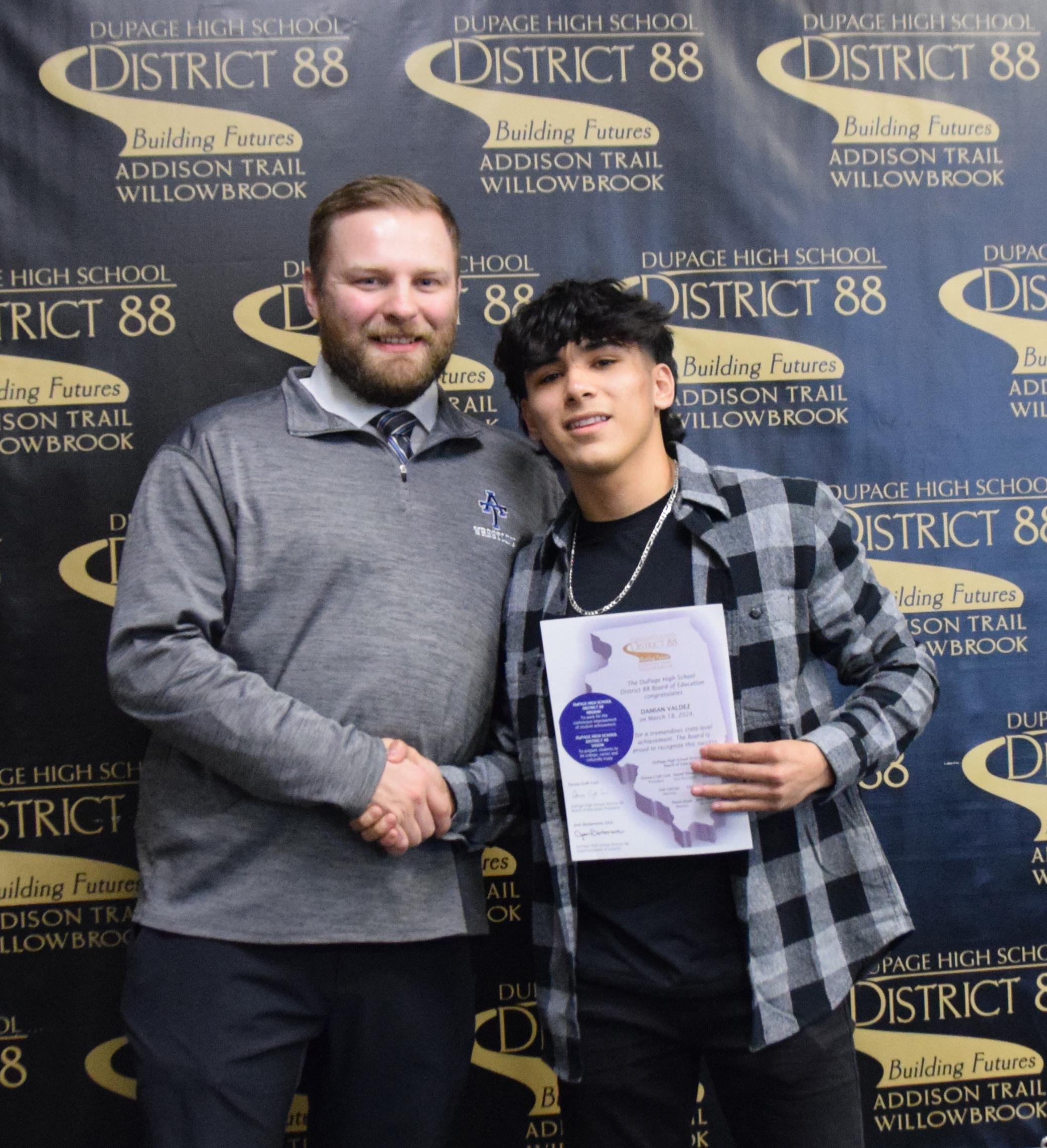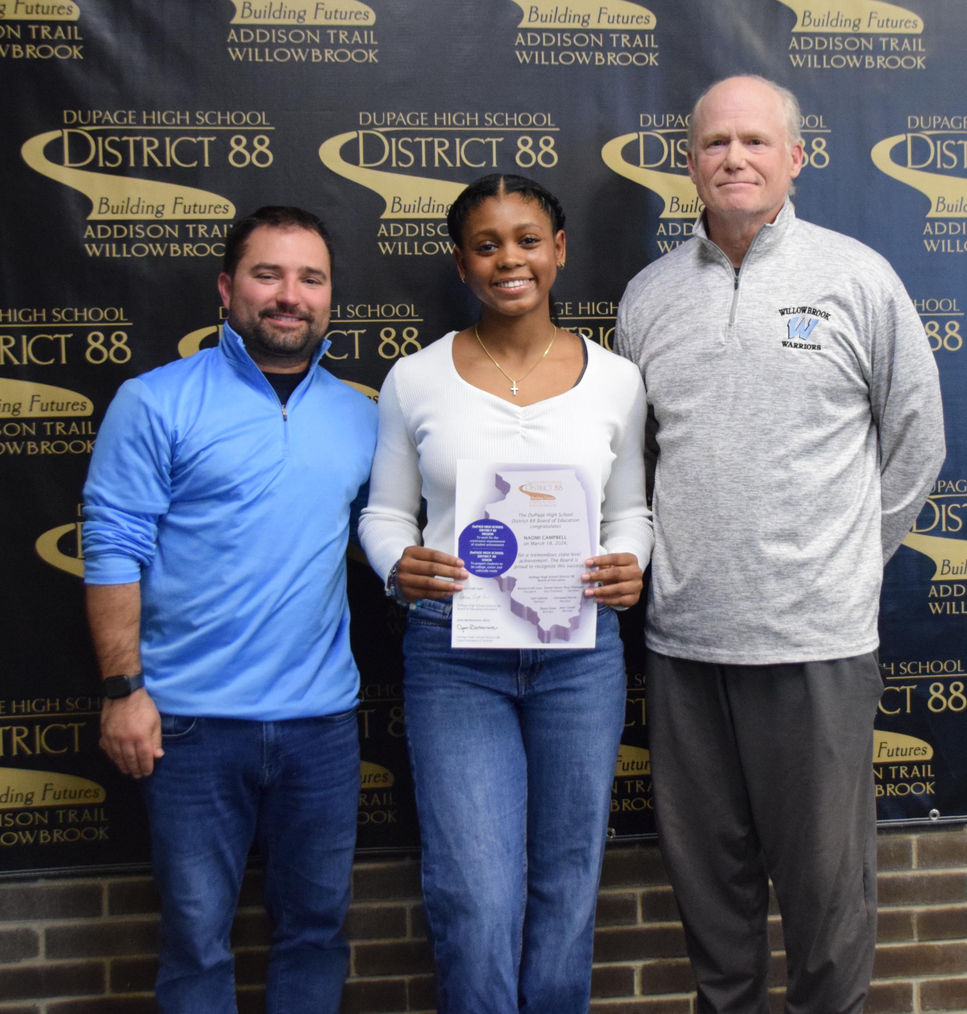 During its March 18 meeting, the District 88 Board of Education celebrated Addison Trail and Willowbrook students for their State-level achievements from the winter season of the 2023-24 school year.