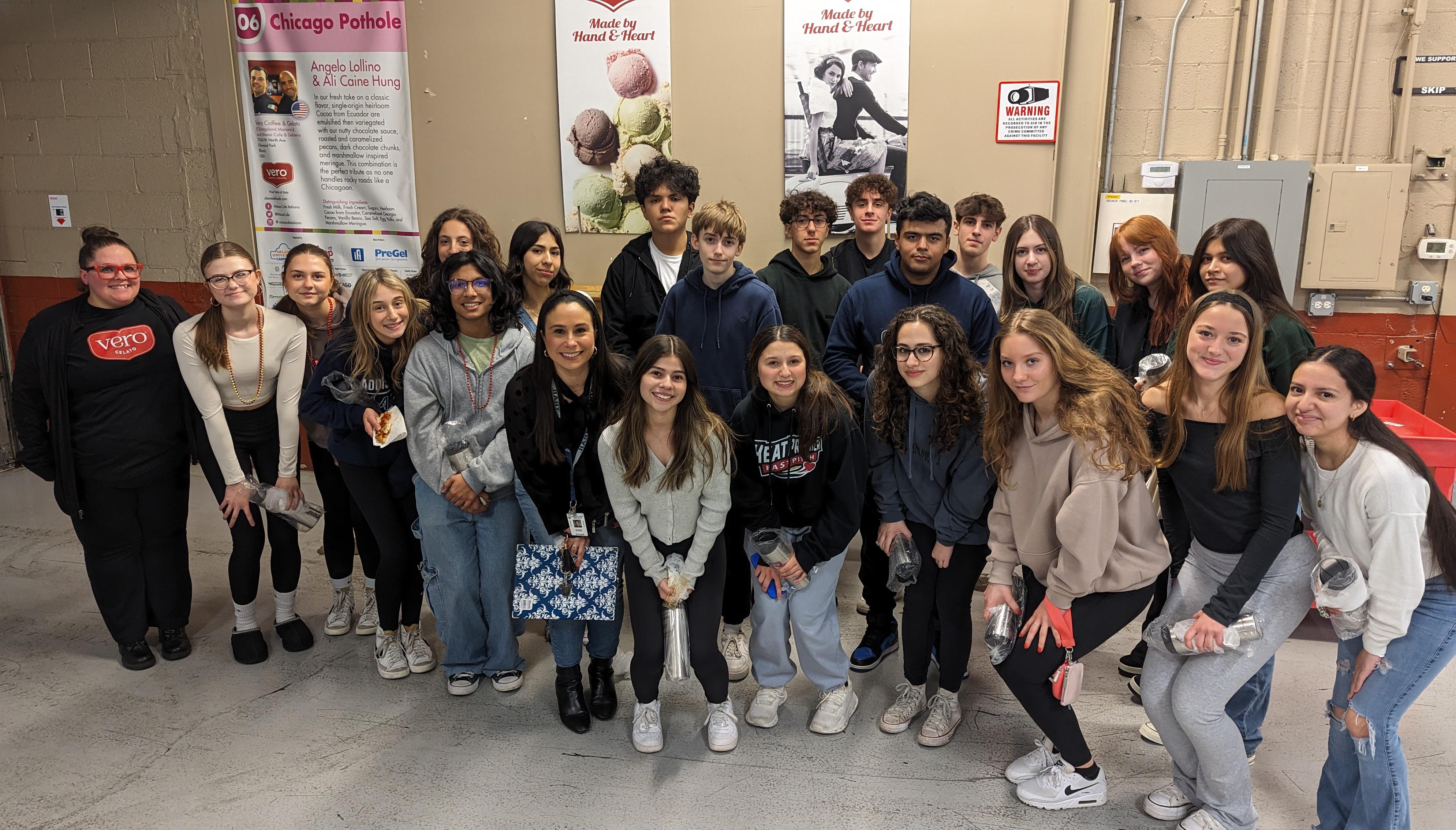 On March 14, 43 Addison Trail students who are enrolled in Italian 3 Honors Dual-Credit and AP Italian Language and Culture participated in a field trip to Alamode Foods in Franklin Park.