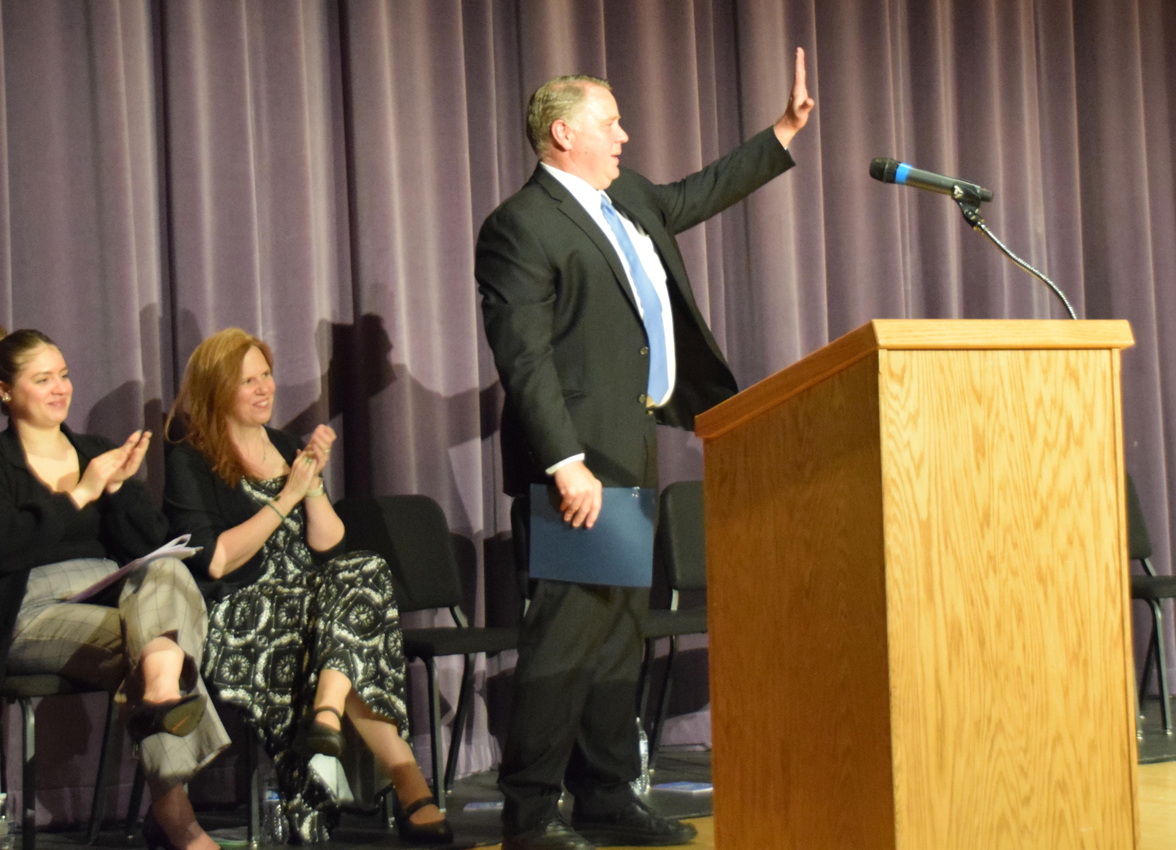 Faculty speaker: English teacher Jim White (White will retire at the end of this school year. He was presented with a Freshman Award for the tremendous impact he has had on the students and learning community of Willowbrook.)