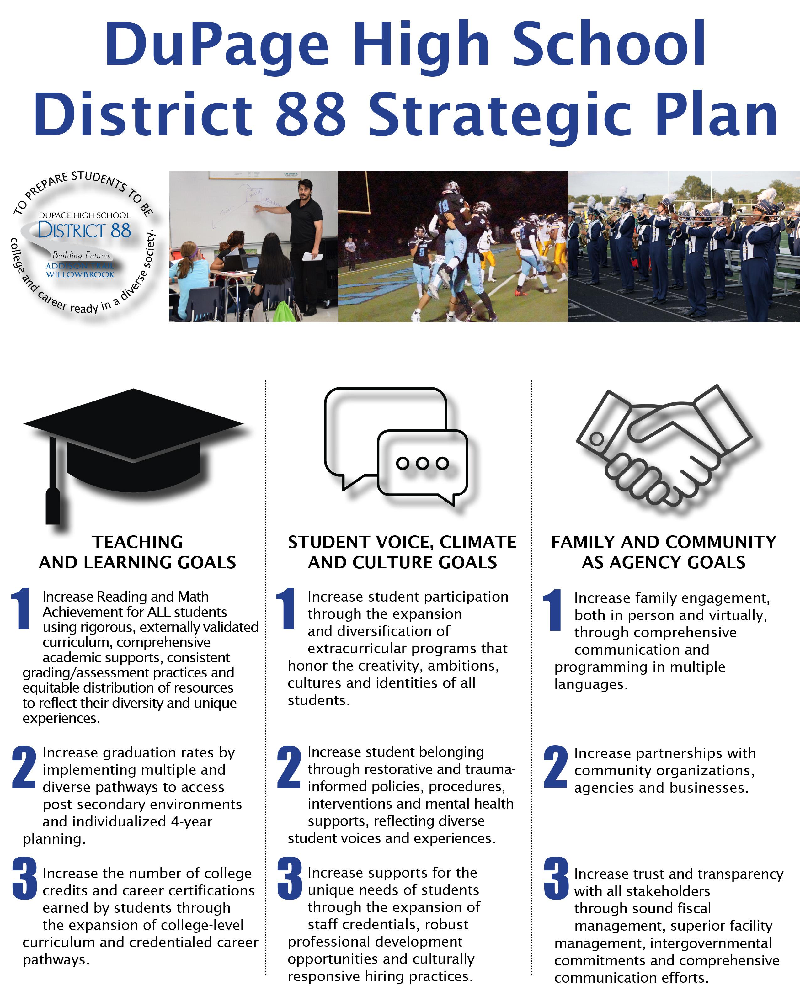 We have a responsibility to be transparent with and accountable to our stakeholders, and the strategic plan and online dashboard allow us to meet that objective. To view District 88’s updated strategic plan and online dashboard, go to www.dupage88.net/StrategicPlan2023.
