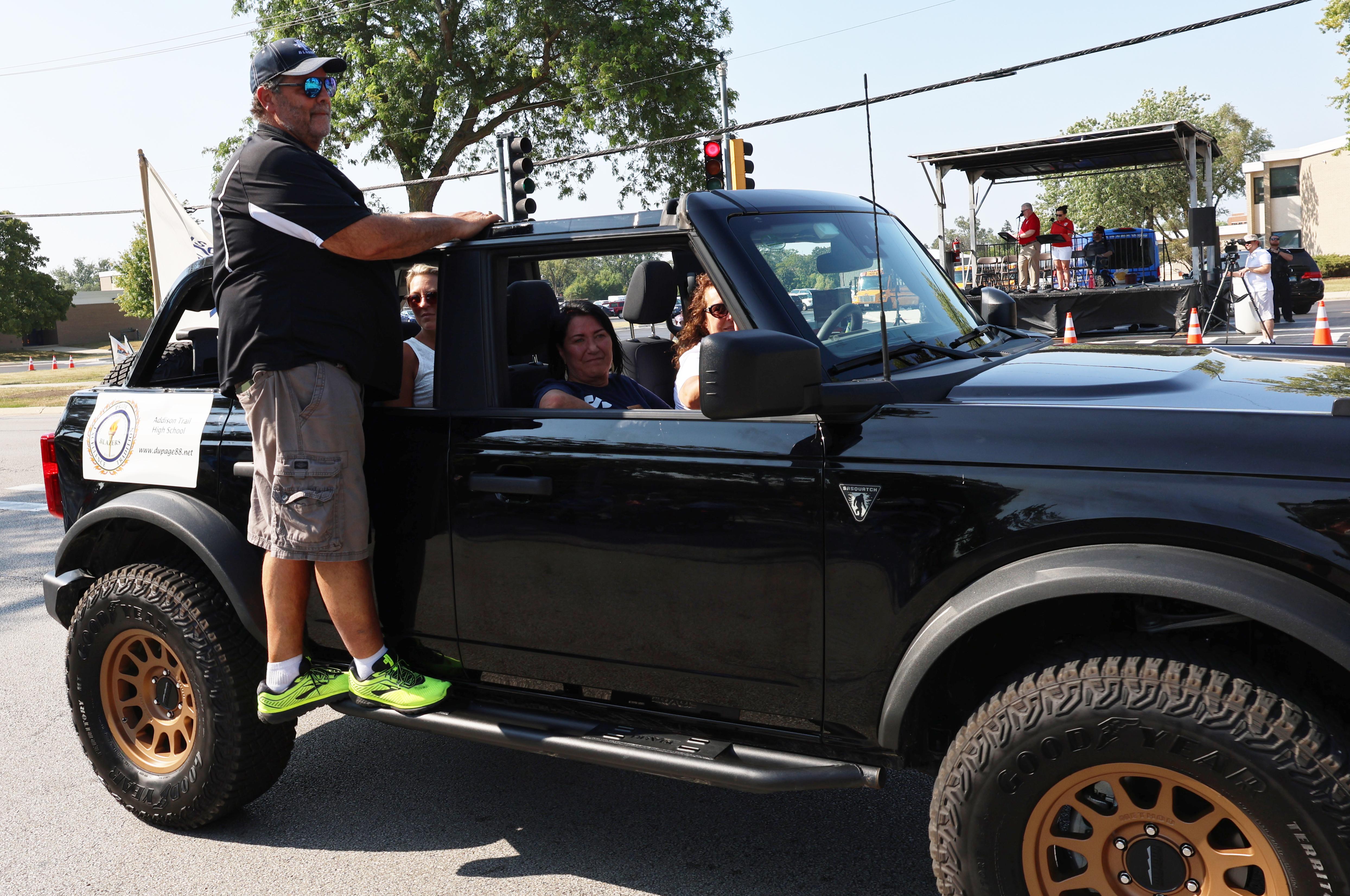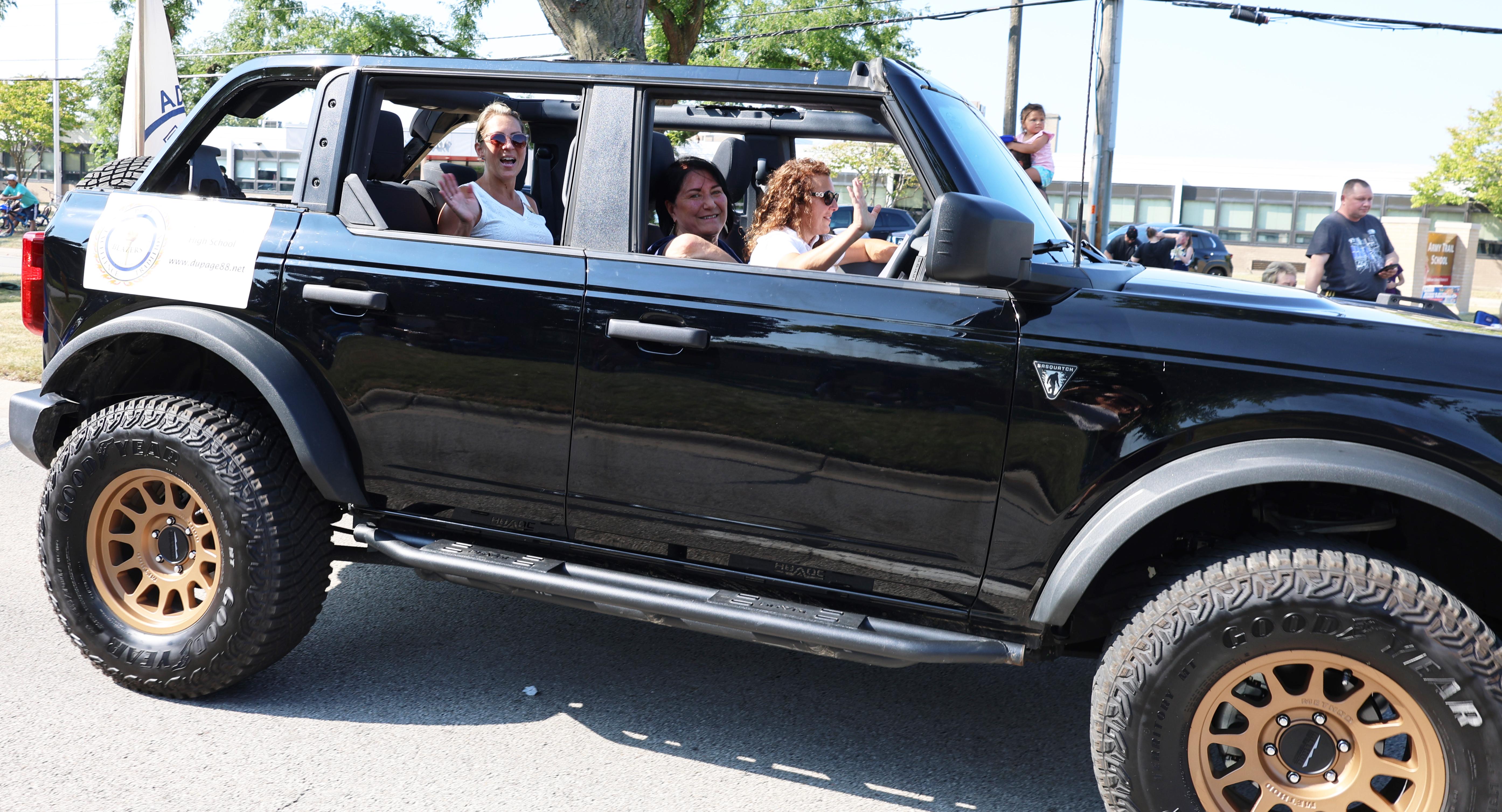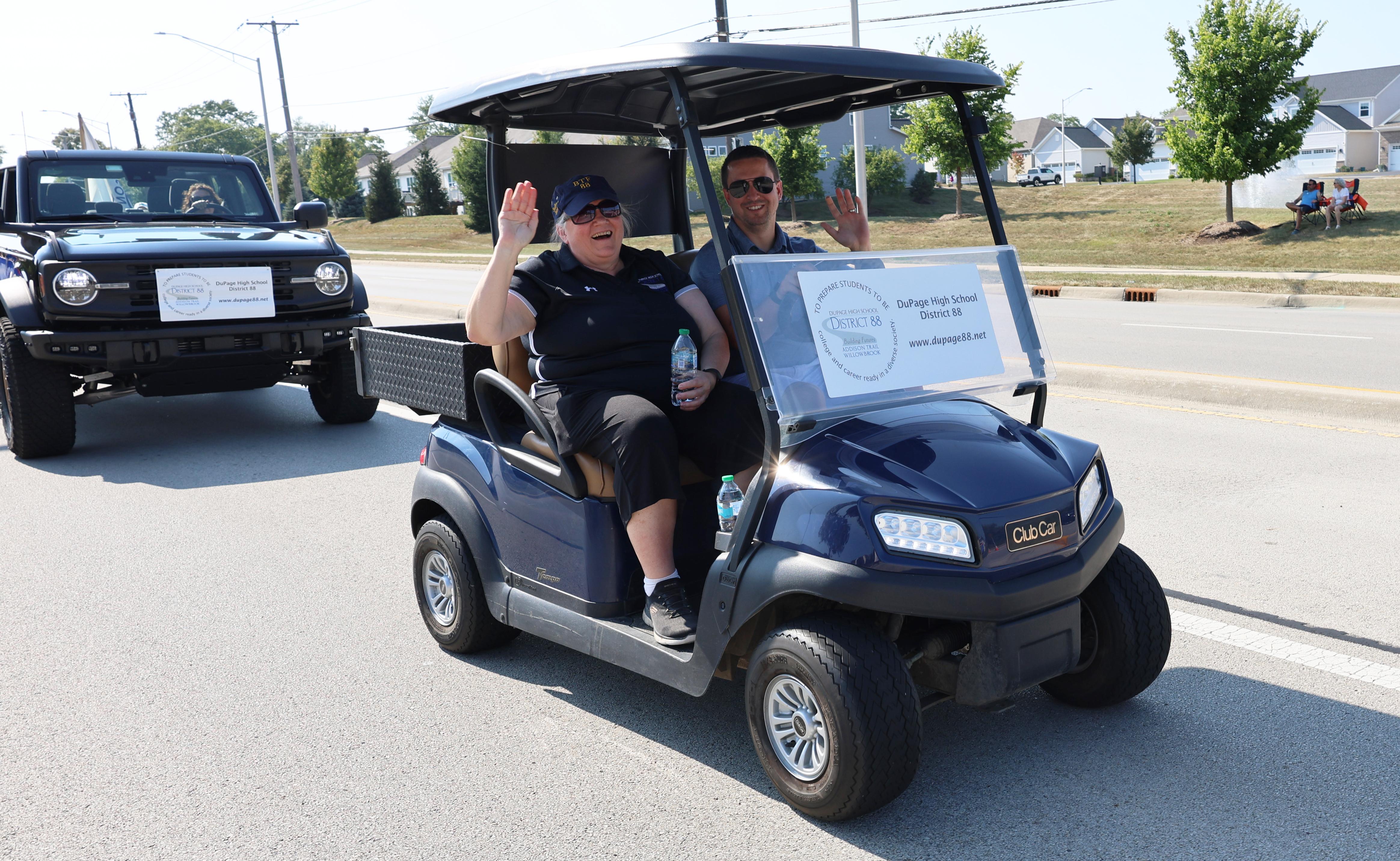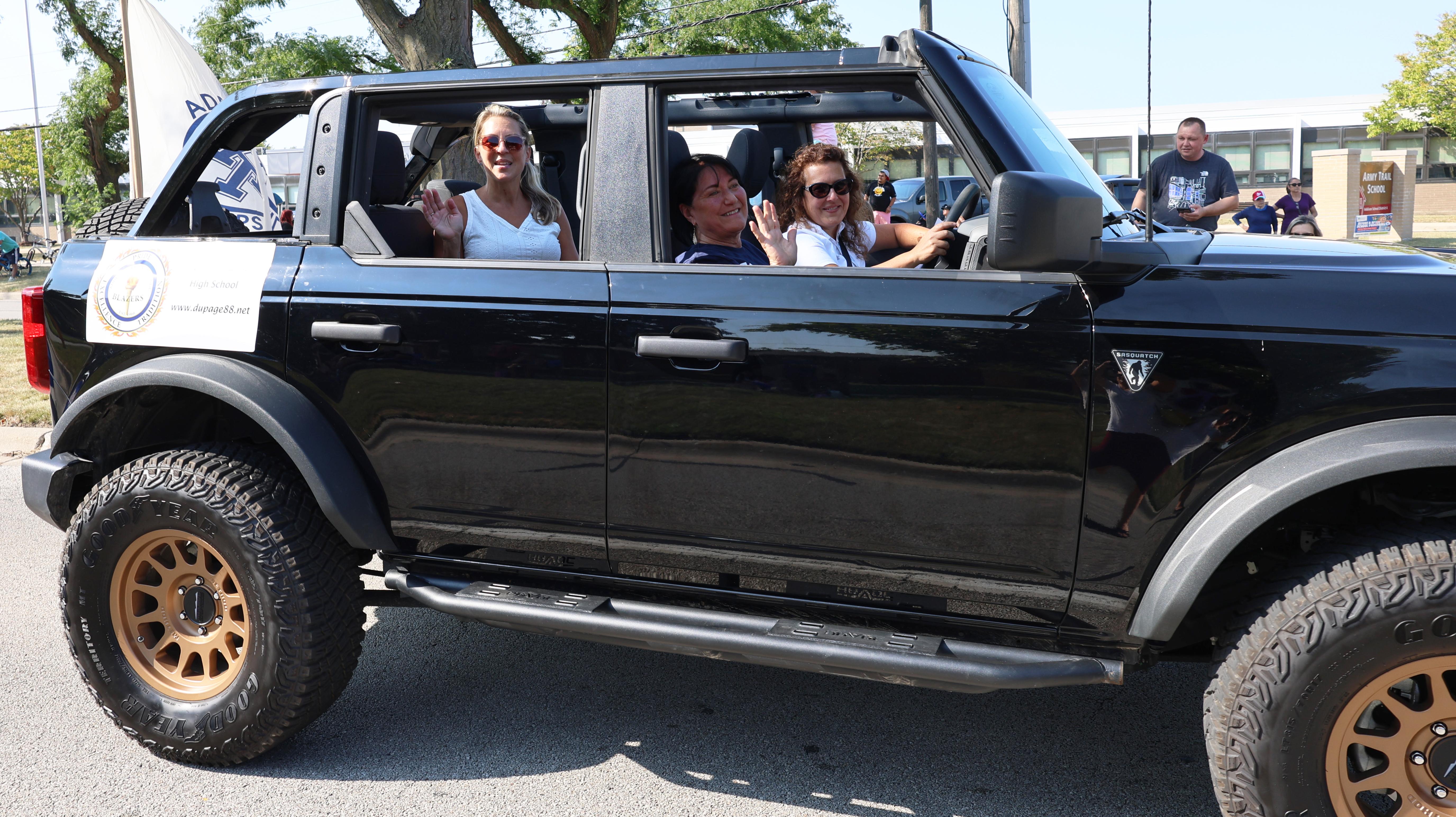 District 88 Board of Education President Donna Craft Cain, Vice President Dan Olson, Board Member Gail Galivan and Board Member Diana Stout rode in the parade, along with District 88 Superintendent Dr. Jean Barbanente and Addison Trail Principal Jack Andrews.