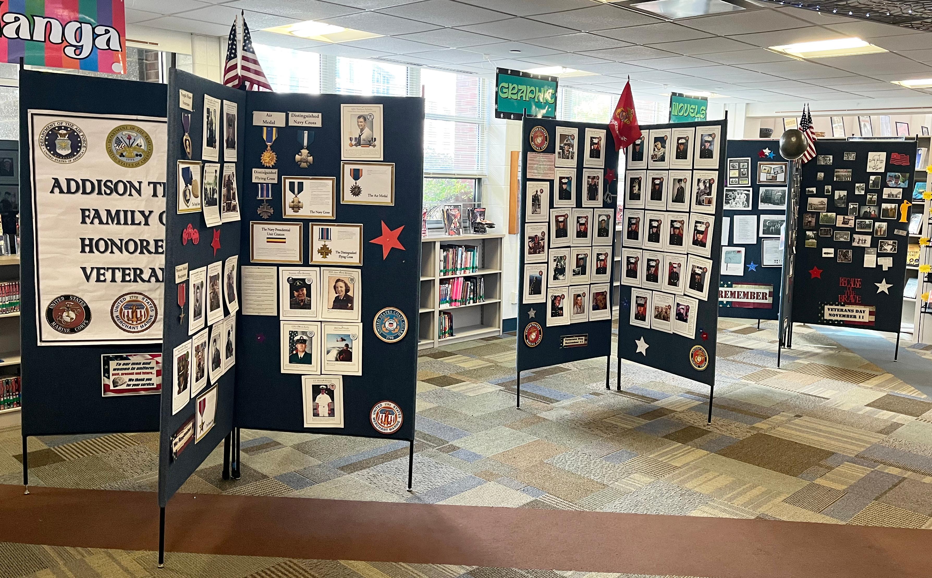 Each year, Addison Trail recognizes Veterans Day with displays and a video to honor veterans from Addison.