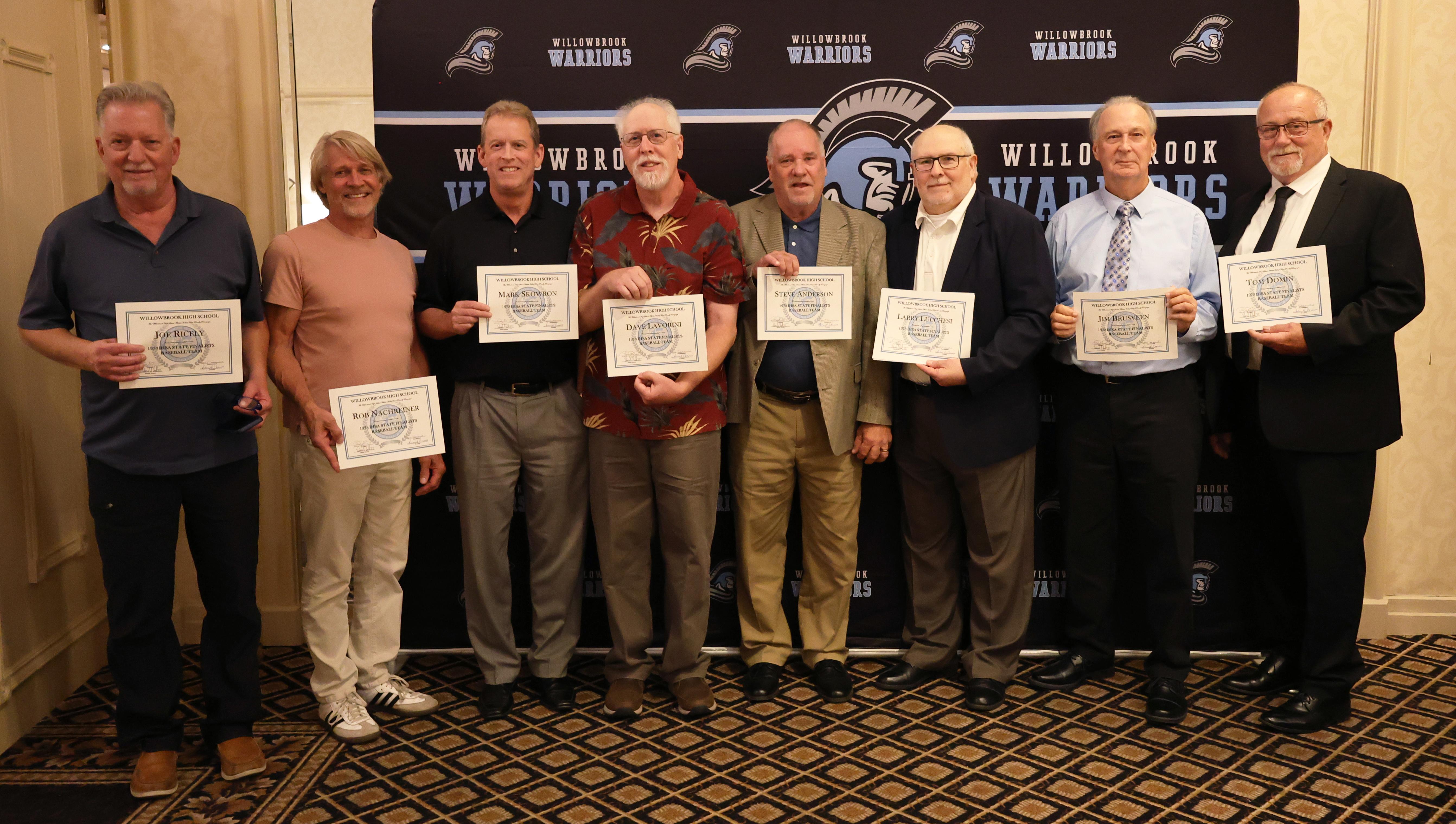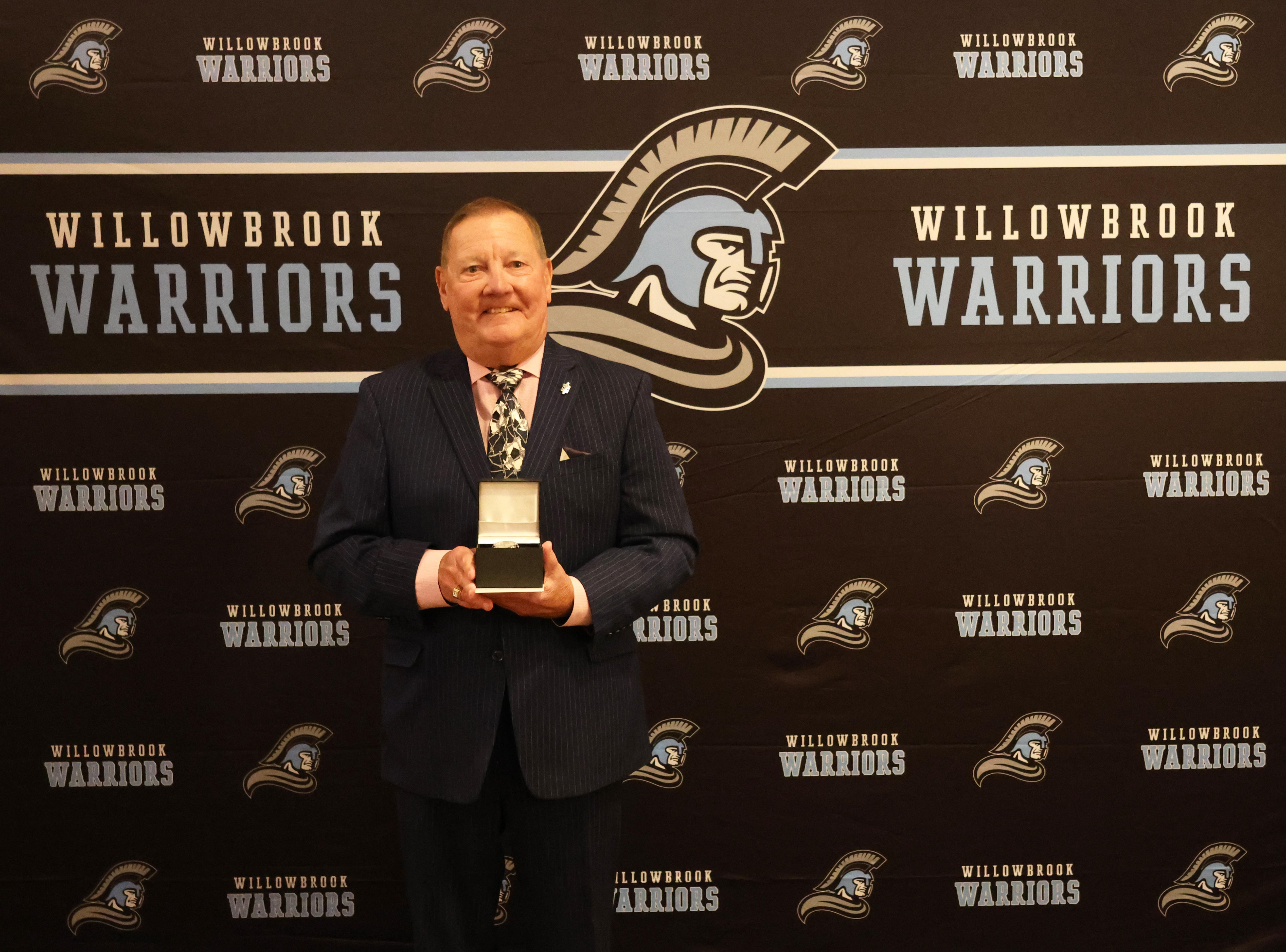 On Sept. 19, Willowbrook inducted members into its Athletic Hall of Fame Fall Class of 2024 during a dinner at The Carlisle in Lombard. Willowbrook Principal Dr. Daniel Krause, Willowbrook Athletic Director Ed Sullivan and Willowbrook Athletic Hall of Fame President Helen Connell greeted the crowd. Emcees for the evening were Bryan Murphy Sr. (former Willowbrook teacher, dean and coach) and Bob Daly (Willowbrook learning services teacher and former athletic director and assistant principal). Sharon Kucik (Willowbrook Athletic Hall of Fame Committee Member, parent of Willowbrook graduates and former District 88 Board of Education Member) gave the Address to the Fall Class of 2024.