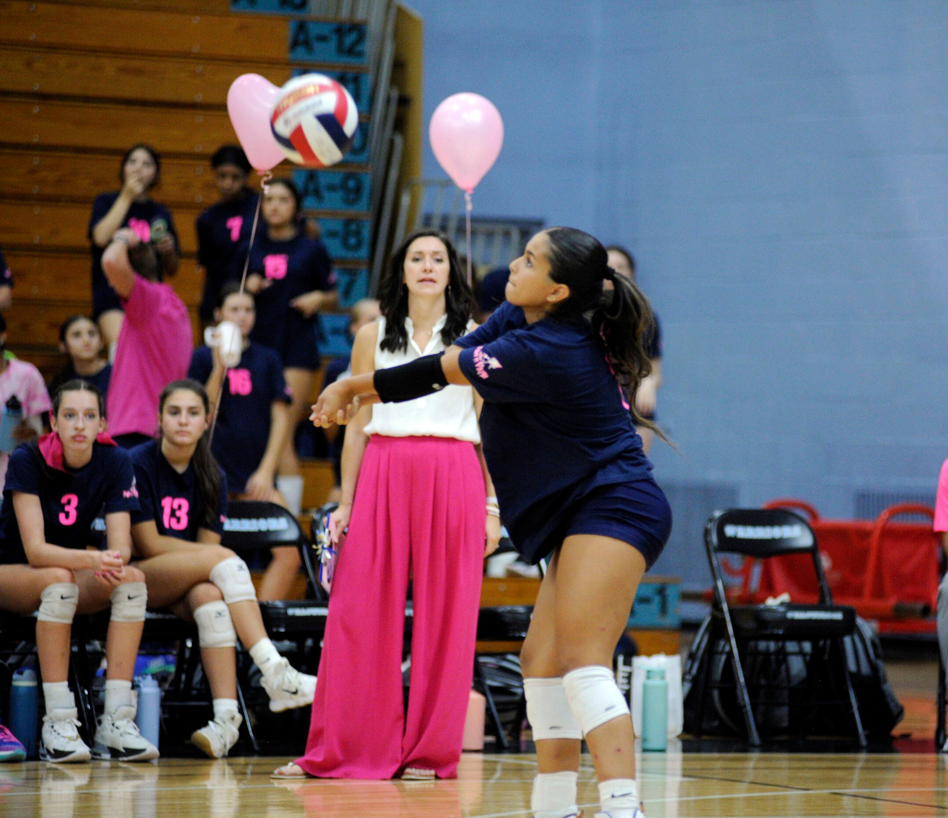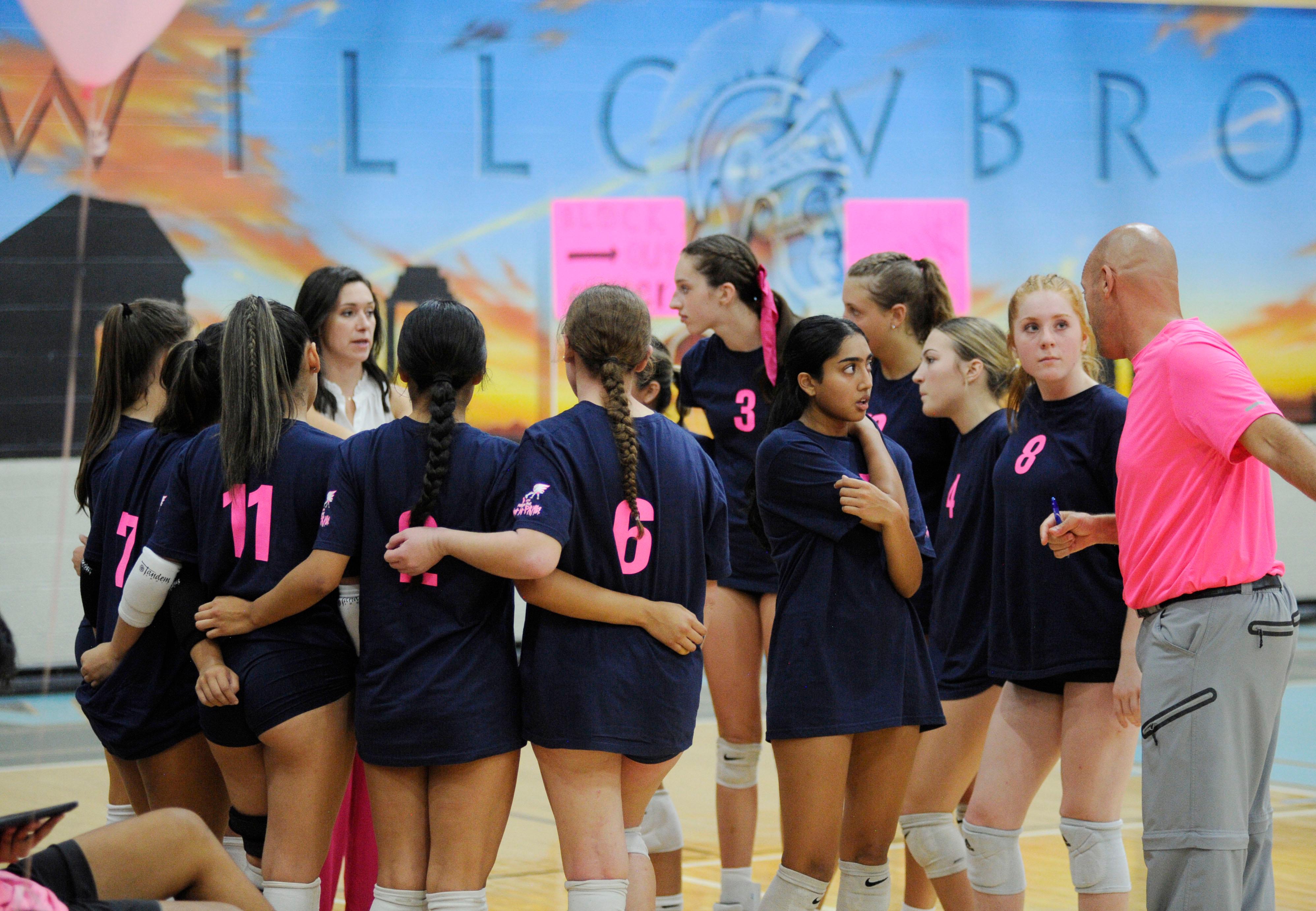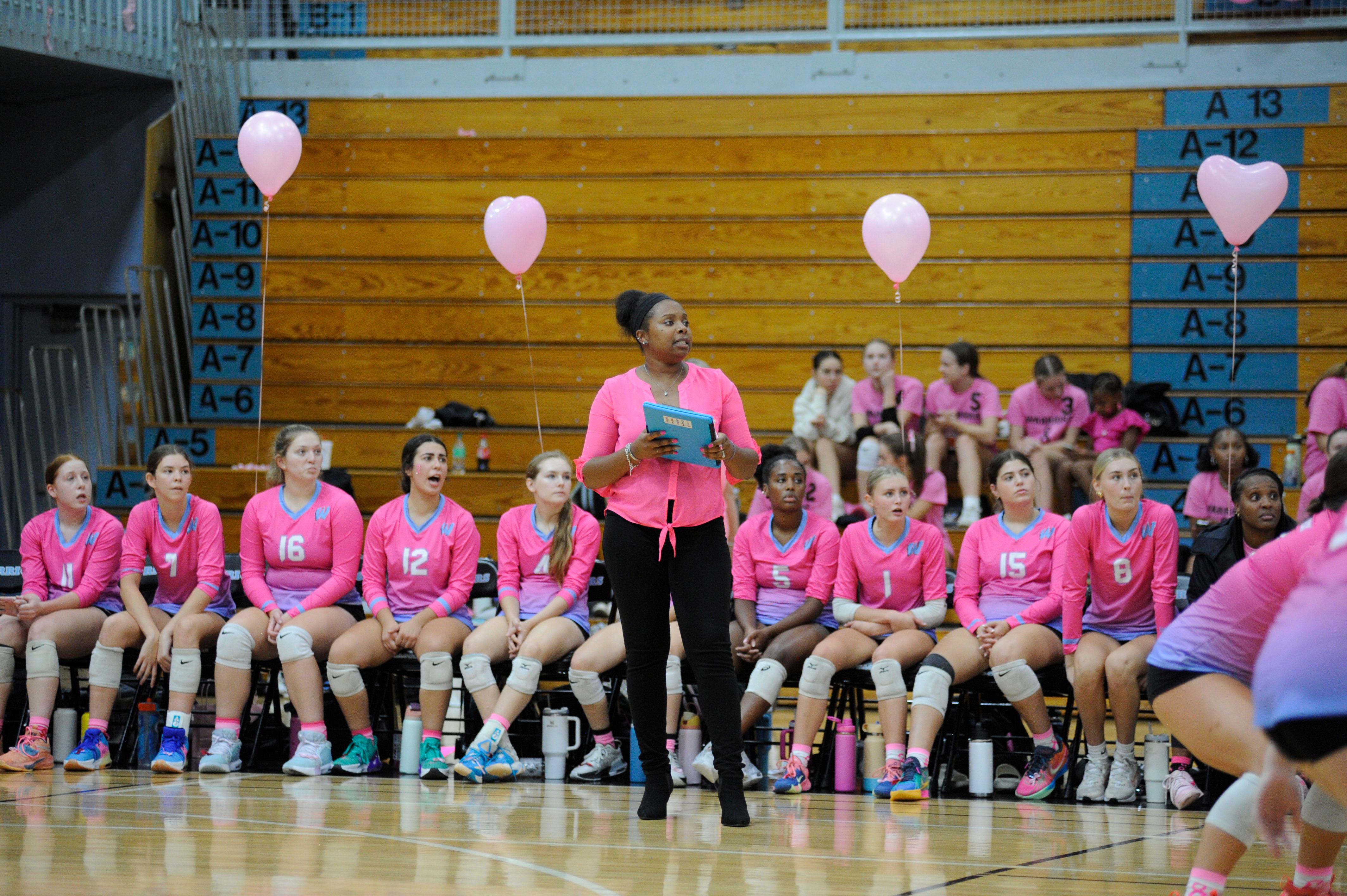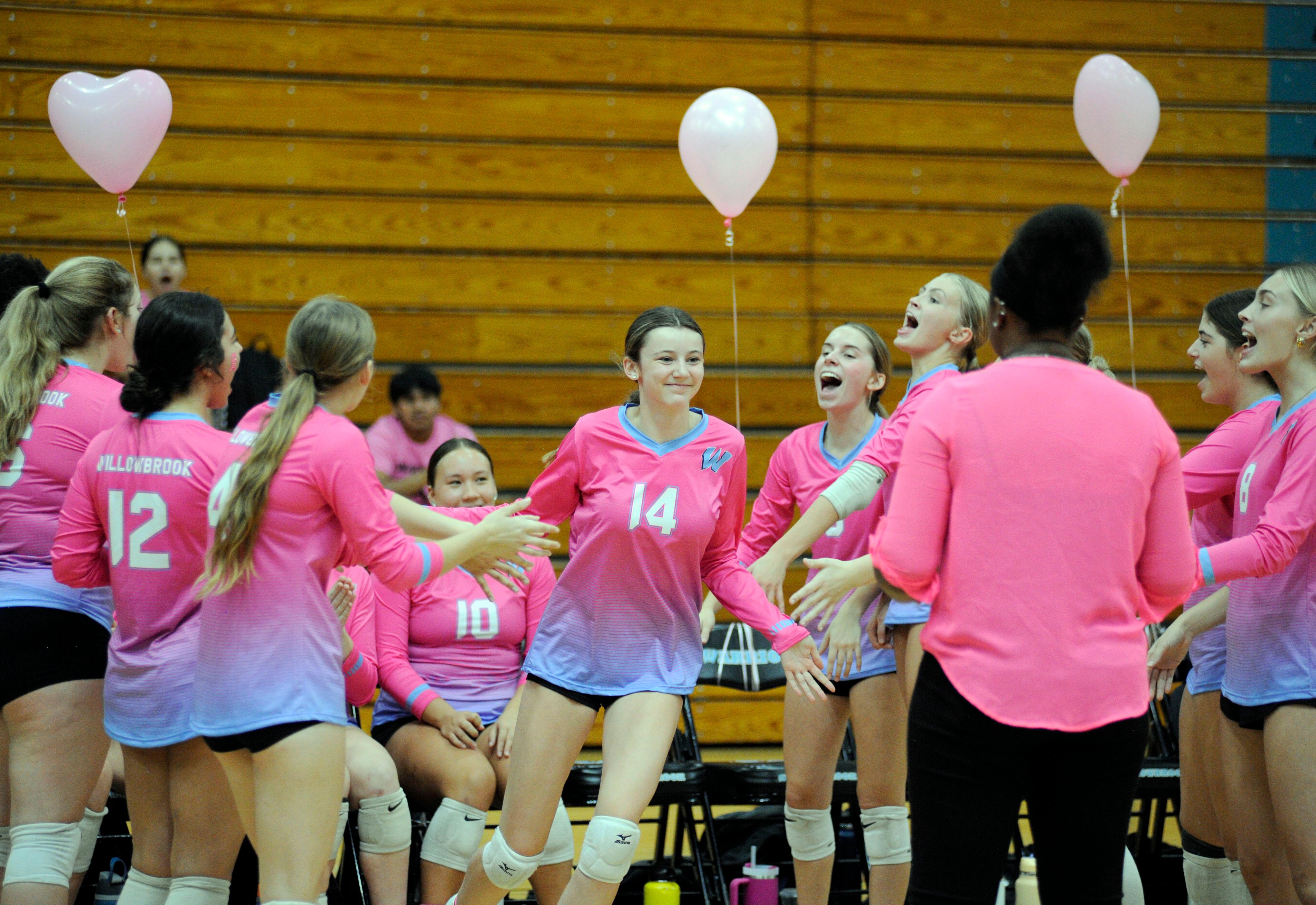 The event is part of District 88’s annual Go Pink or Go Home initiative, which raises money for breast cancer awareness and research. This year’s game was hosted at Willowbrook, and the Warriors took home the win (25-12 and 25-9).