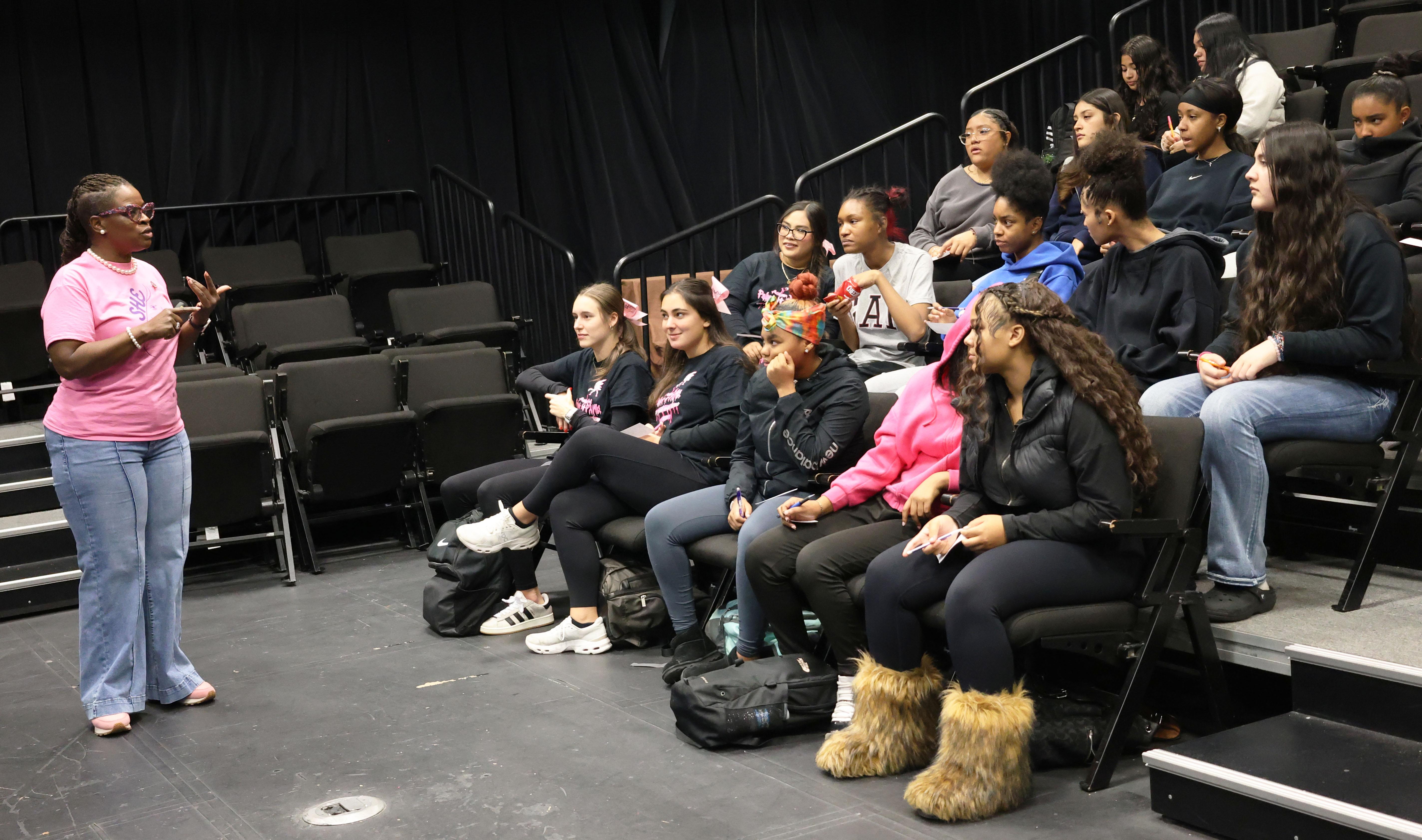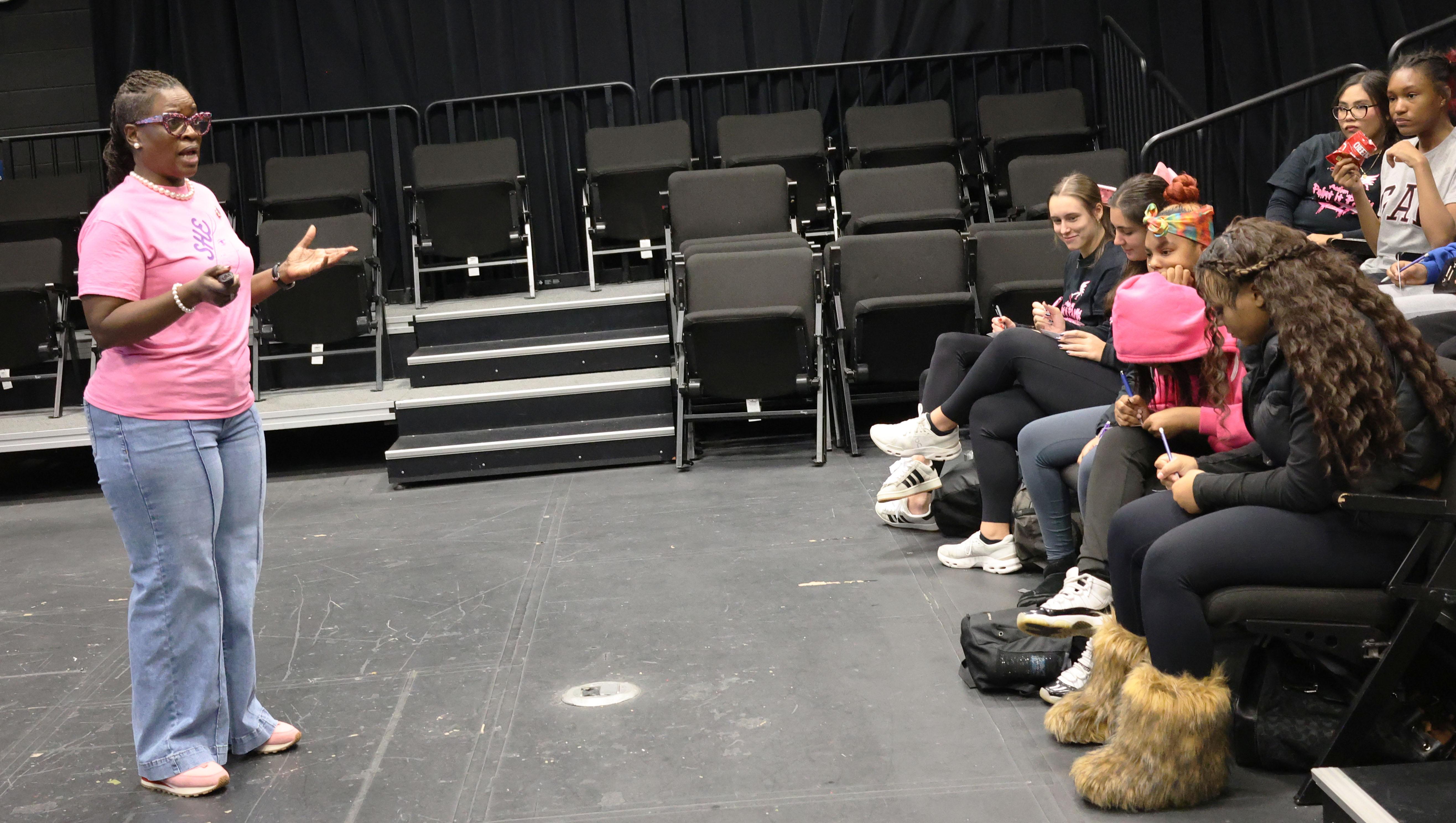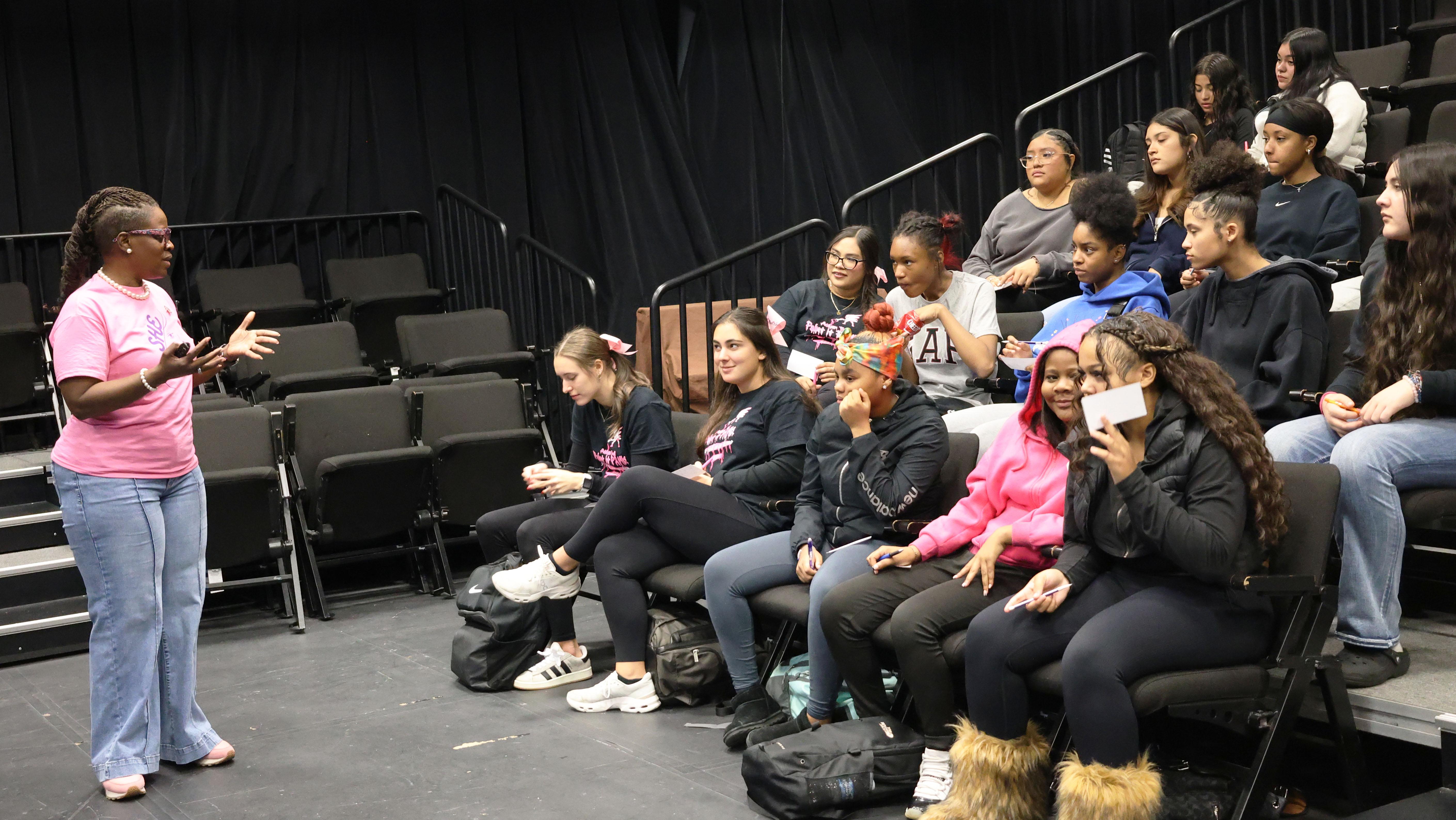 The event is called S.H.E. Day, which stands for Support one another, Honor each other and Evolve together. During the gathering, students had the opportunity to fill out cards with questions and topics they wanted to discuss. Staff members then shared their experiences and offered advice.