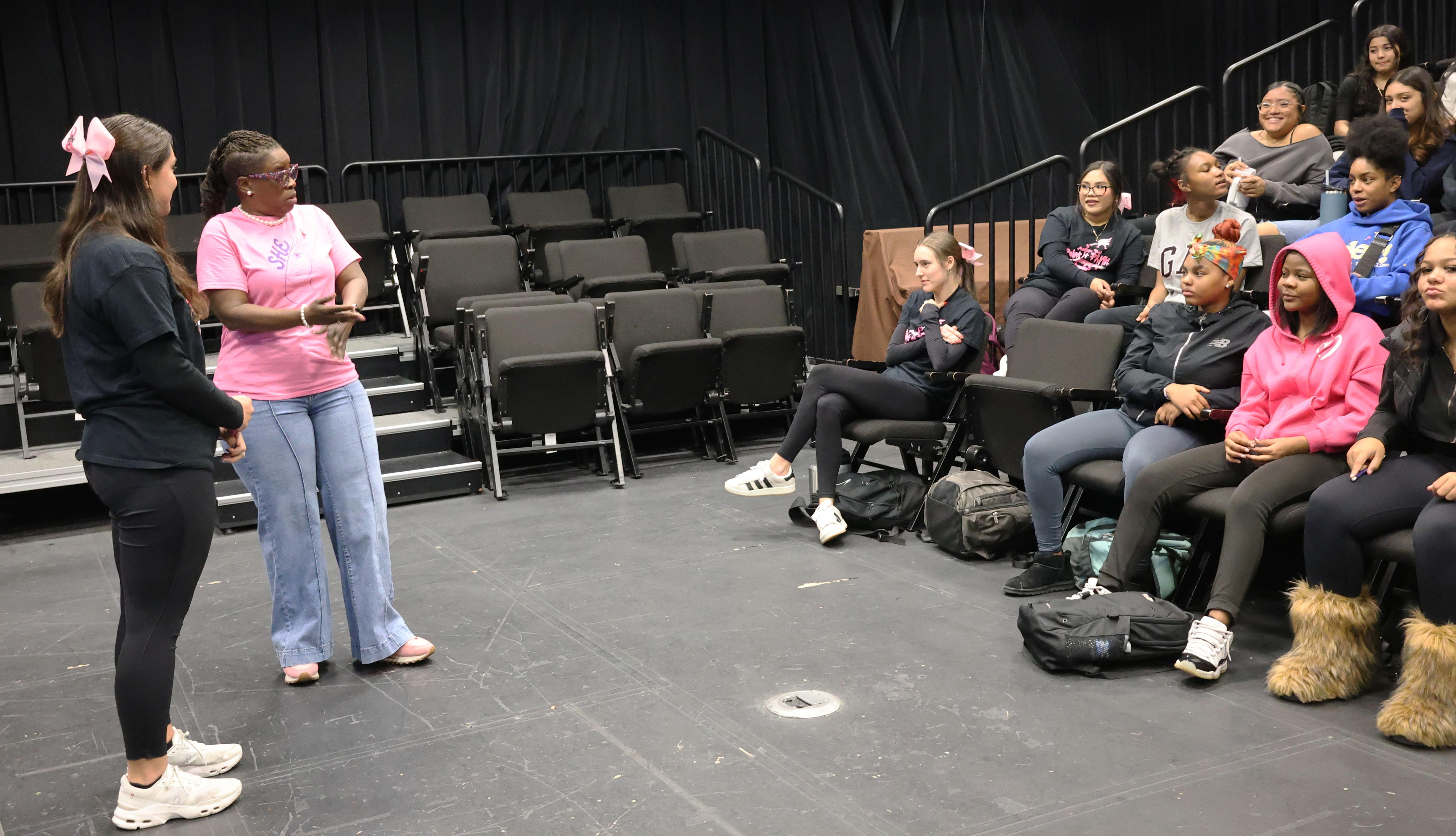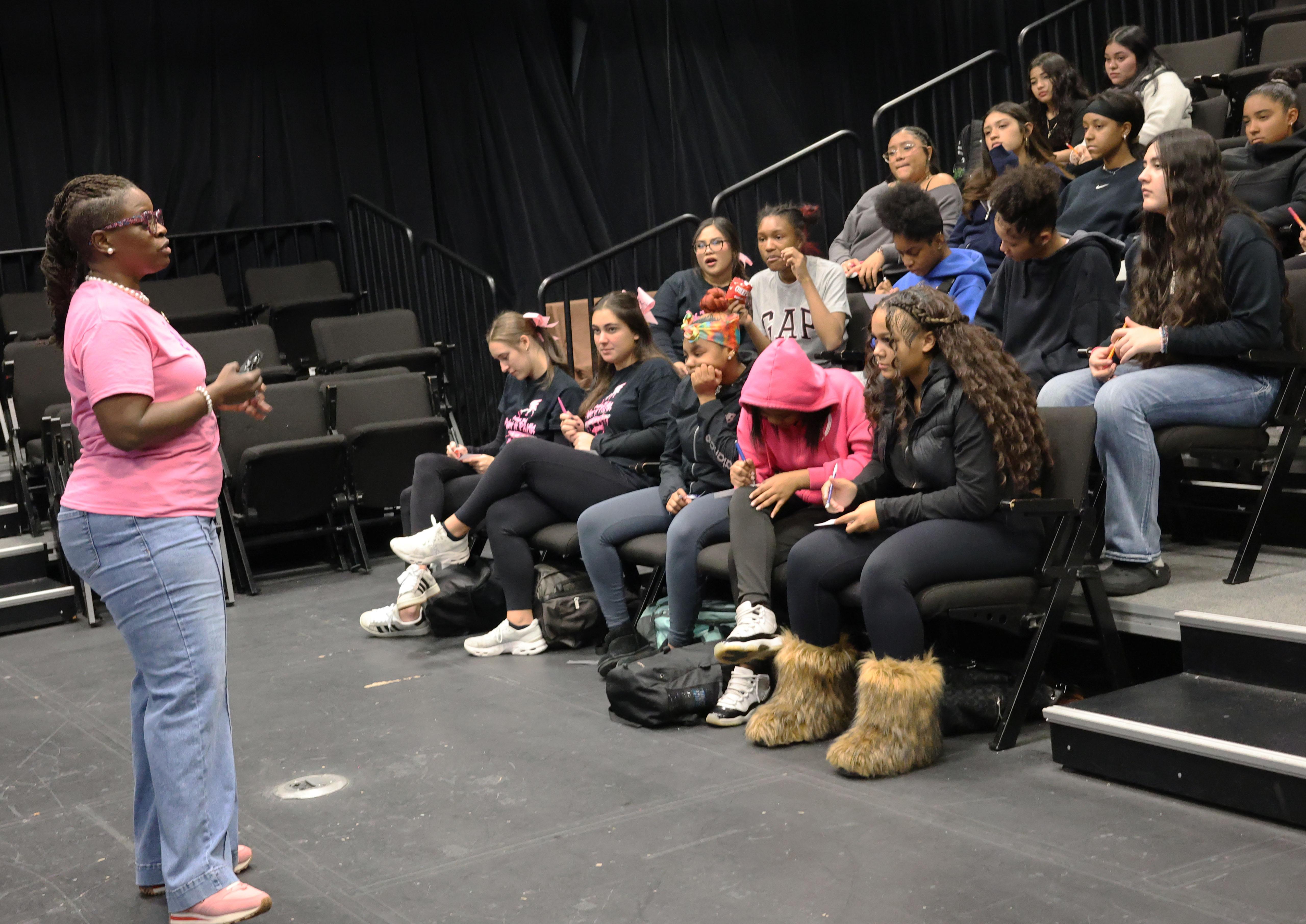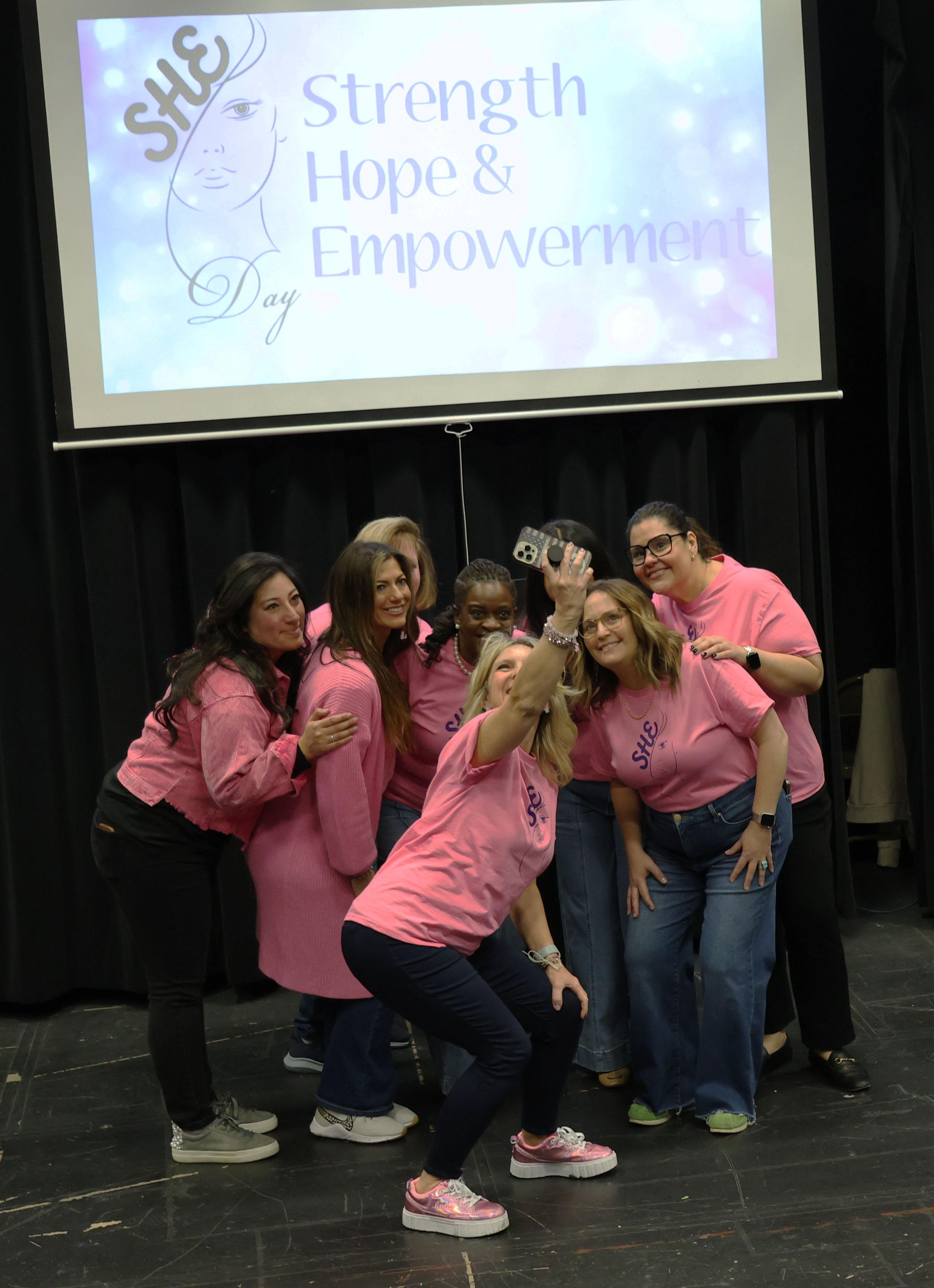 The event is called S.H.E. Day, which stands for Support one another, Honor each other and Evolve together. During the gathering, students had the opportunity to fill out cards with questions and topics they wanted to discuss. Staff members then shared their experiences and offered advice.