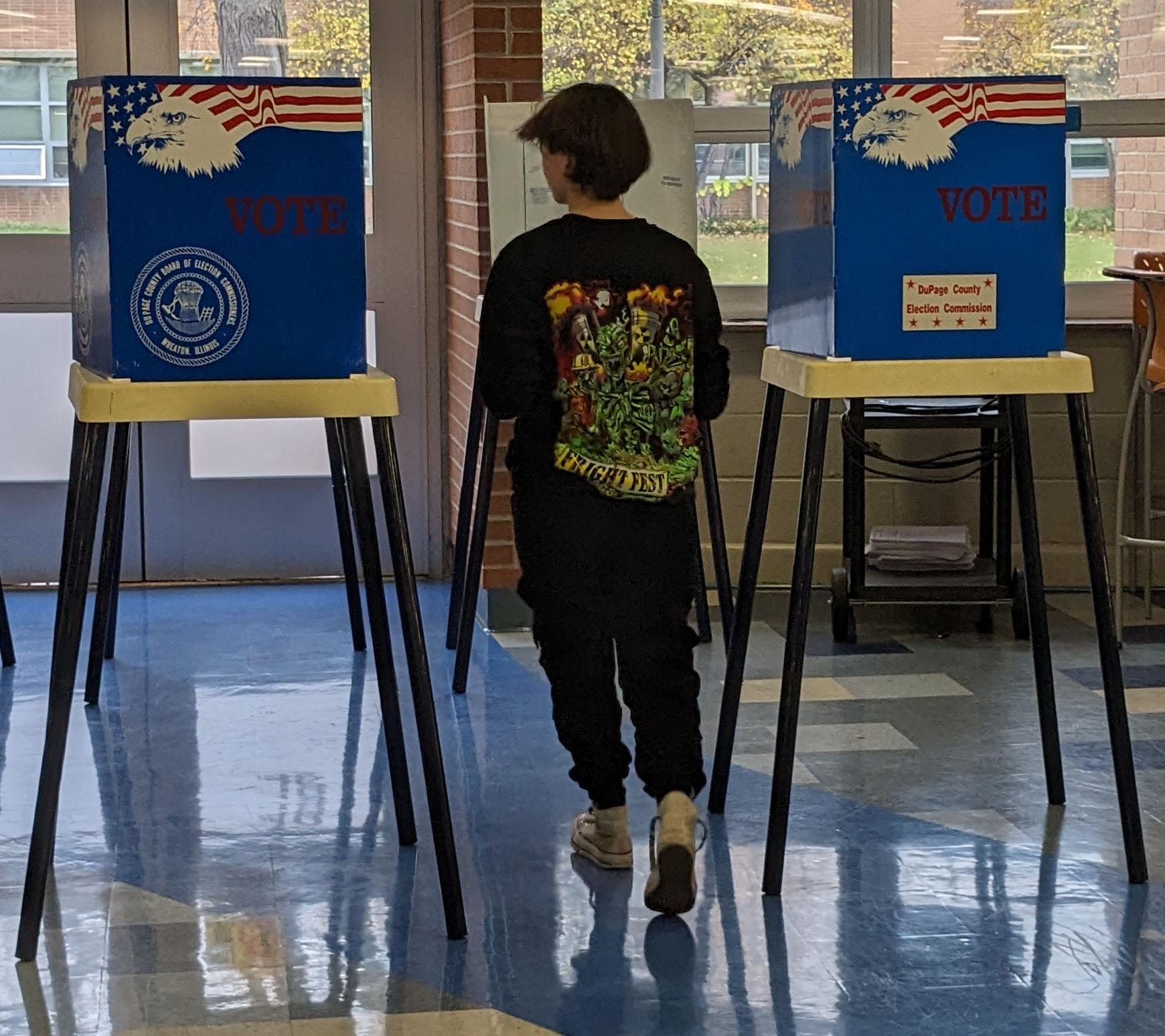 About 500 students participated through volunteering and casting their vote for President/Vice President and U.S. Representative for Illinois District 6. Participants showed their civic pride and wore “I Voted Today at Willowbrook HS” stickers.