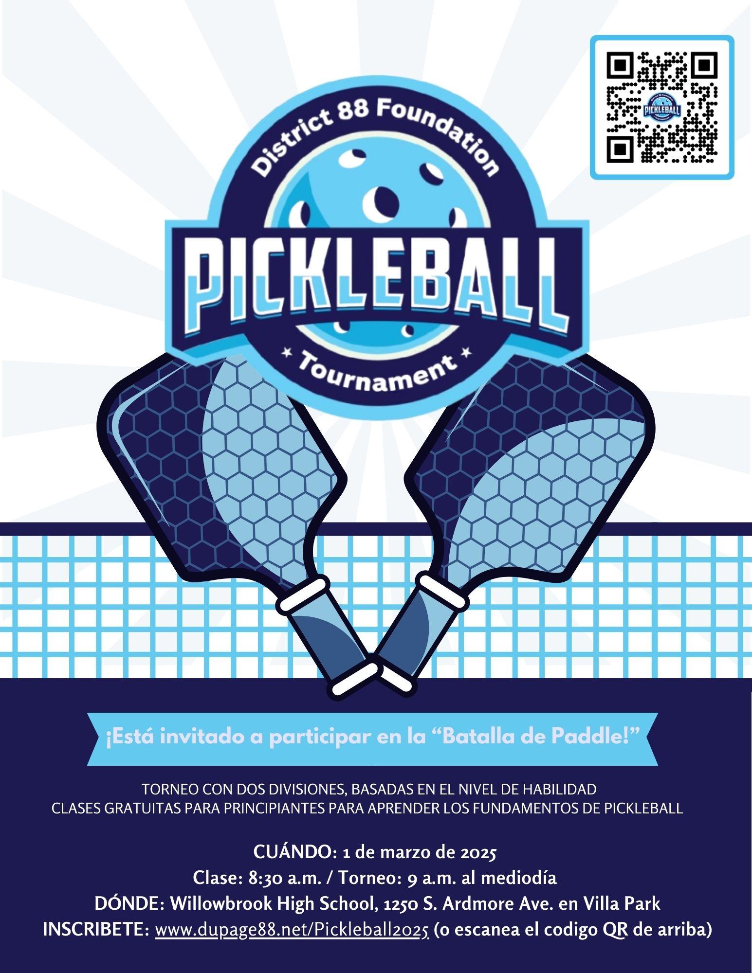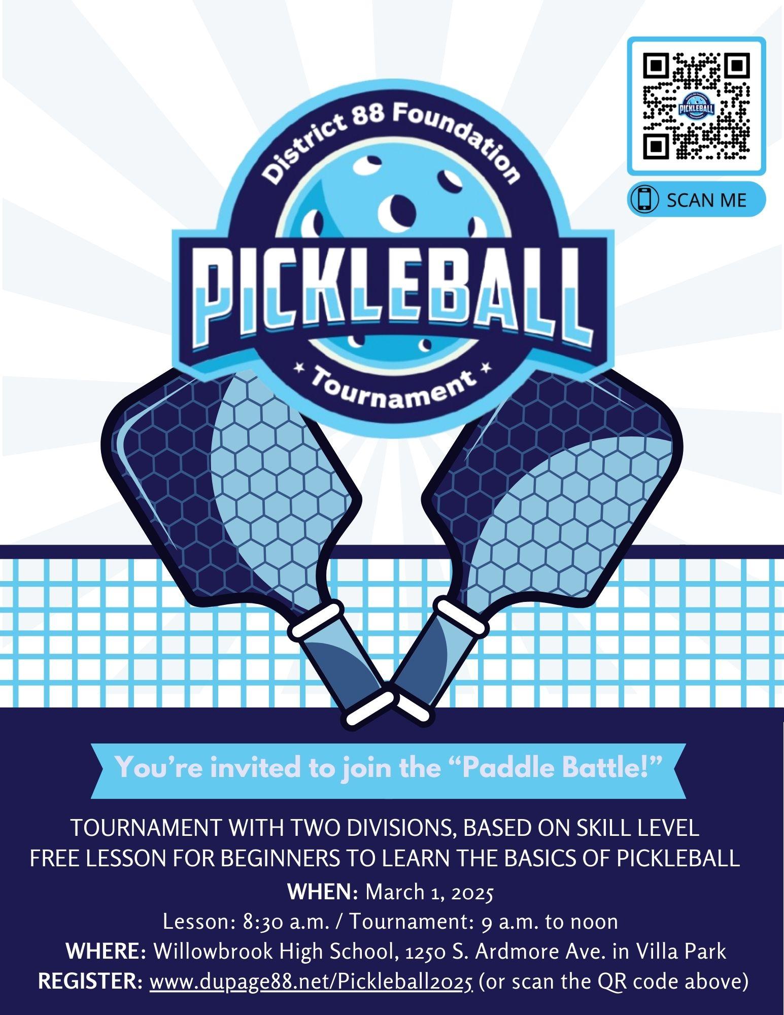 You're invited to attend the District 88 Foundation’s second annual “Paddle Battle” pickleball tournament! You won’t want to miss this fun-filled event!