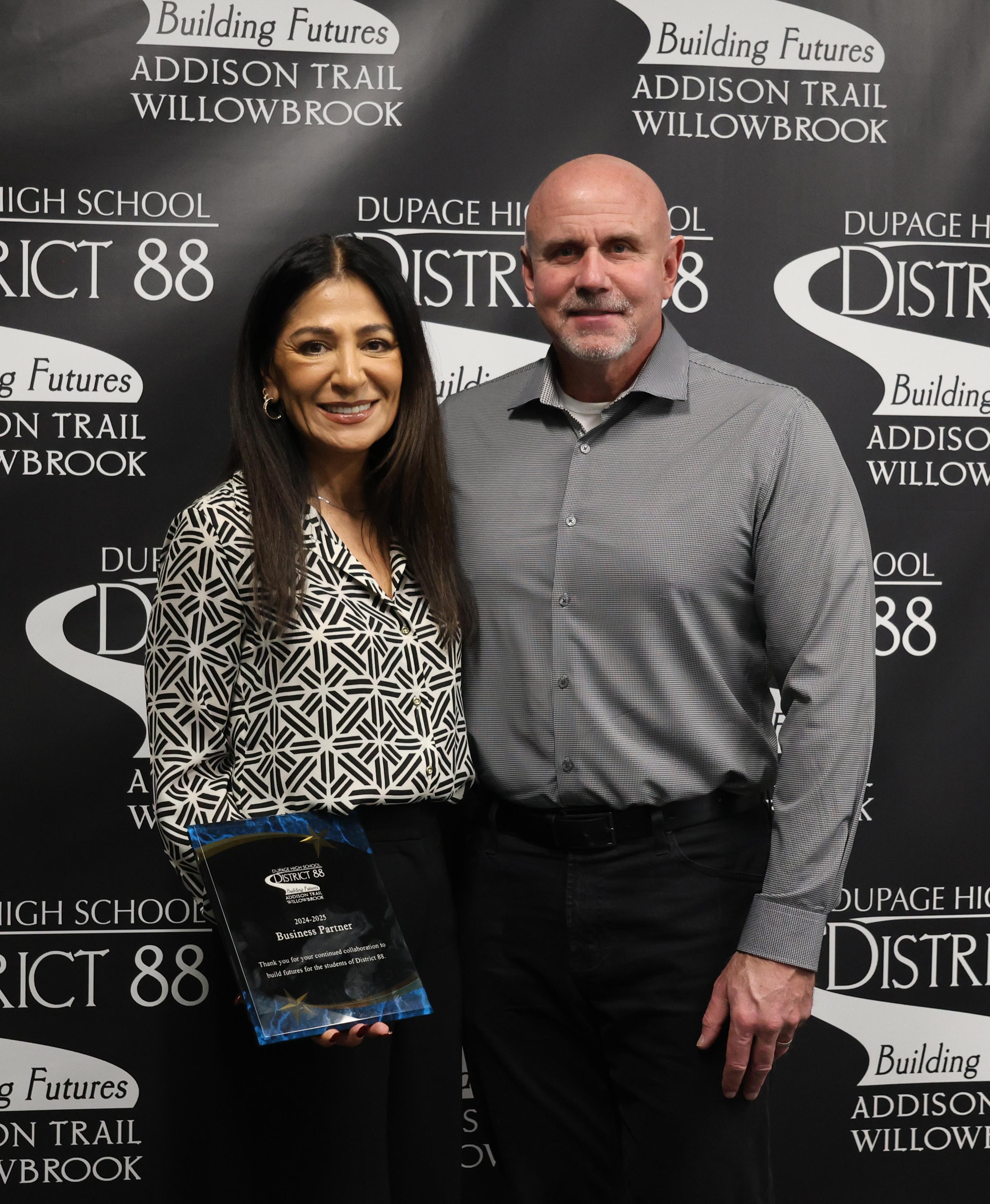 The Whittinghams are a prime example of a Business Partner and are the epitome of involved and engaged community members, who work with District 88 to achieve the district’s goals. They live in Addison and can frequently be seen in the halls of Addison Trail, helping with concessions and other behind-the-scenes activities at events. They are huge supporters of and advocates for the students and families of District 88. The district is proud to honor the Whittinghams as a Business Partner in recognition of their efforts, which include: