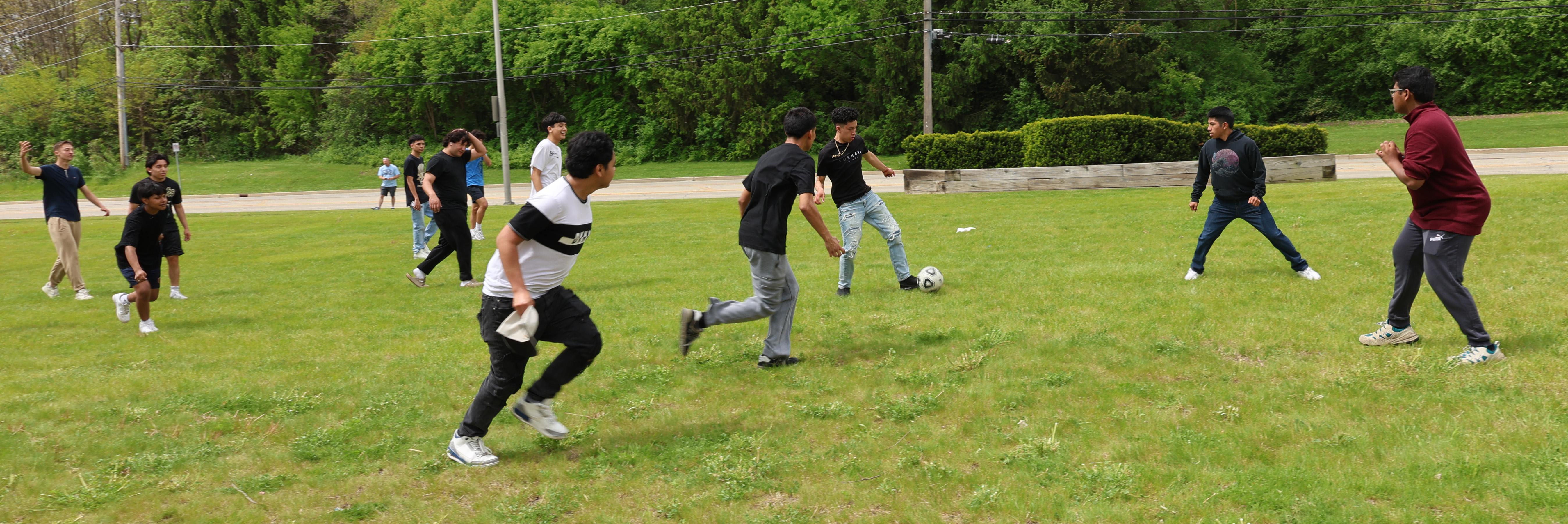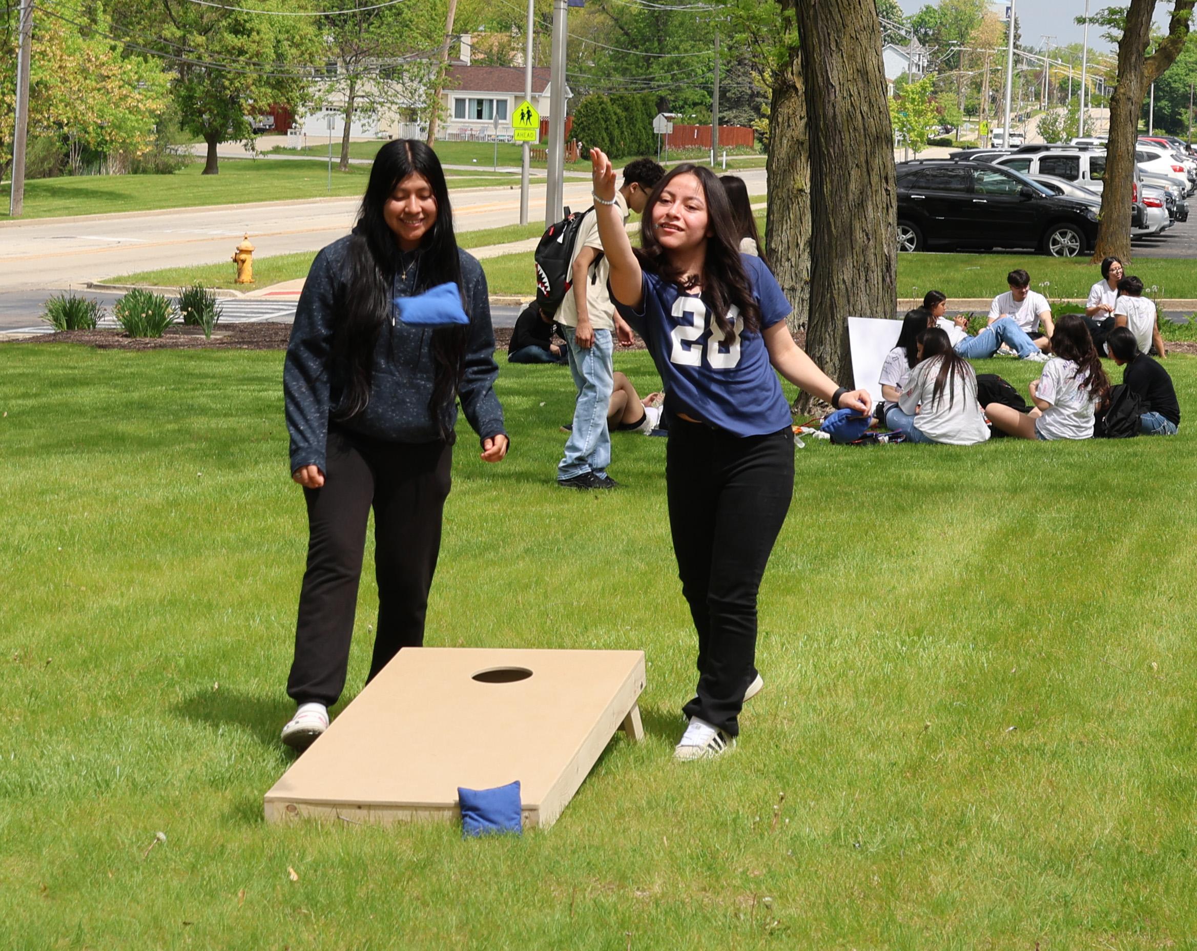 The barbecue is a time to celebrate improved behaviors at Addison Trail. Staff and students volunteered during the event, which featured games and tasty treats.