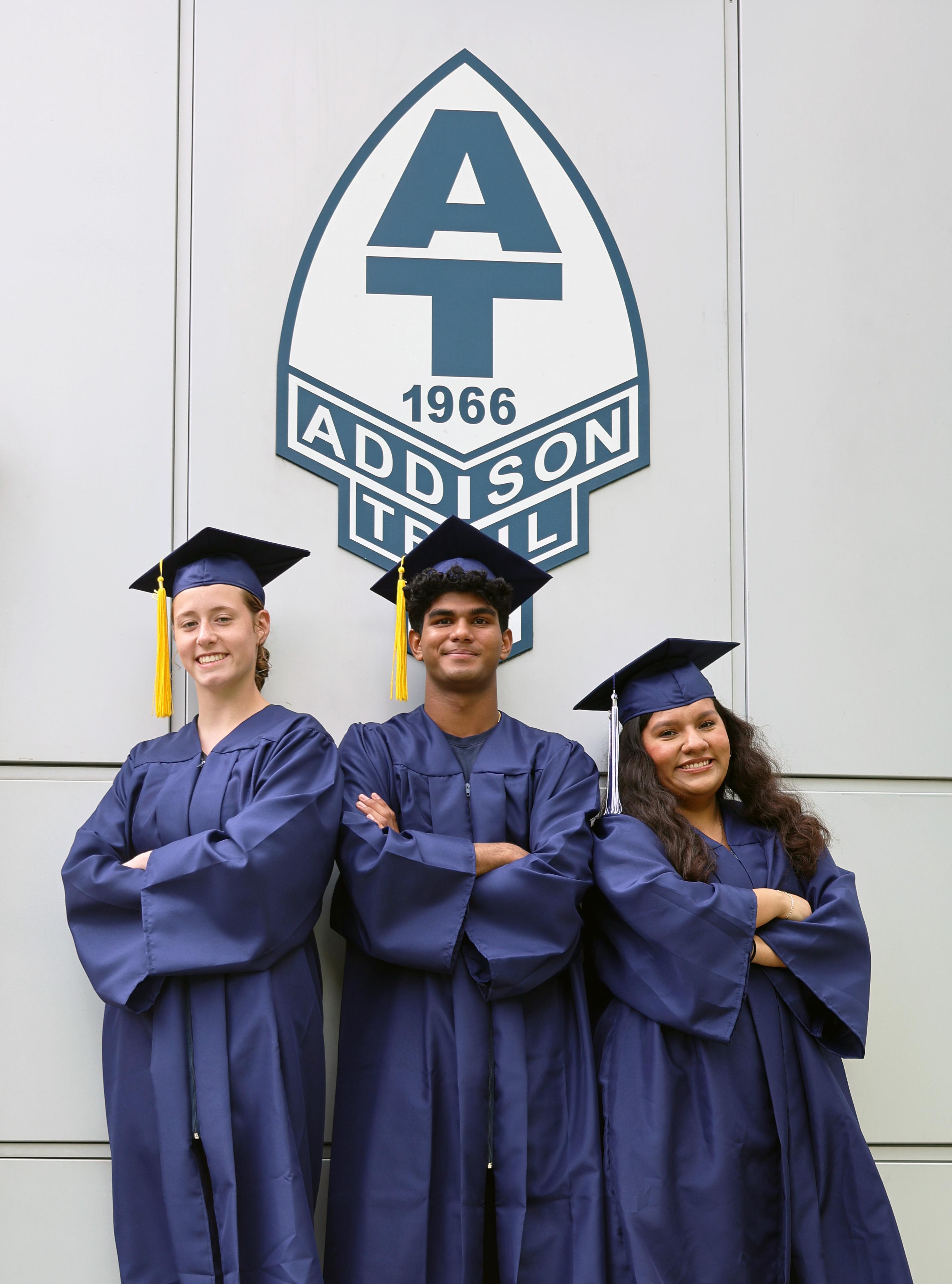 On May 18, Addison Trail seniors Katelyn Ford (pictured above, left), Aryan Shine (pictured above, center) and Lesley Diaz (pictured above, right) will address their classmates (more than 400 students) as the student graduation speakers during Addison Trail’s 59th commencement ceremony.