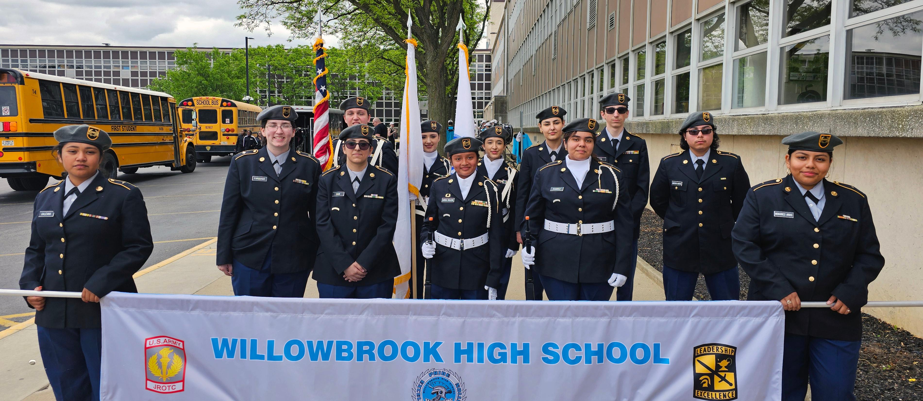 During the parade, 12 Willowbrook students (or cadets) marched and displayed their skills. They were led by Cadet Battalion Commander Joseph Biundo (class of 2027), Cadet Executive Officer Teresa Farquhar (class of 2026) and Cadet Command Sergeant Major Tyler Zita (class of 2028).
