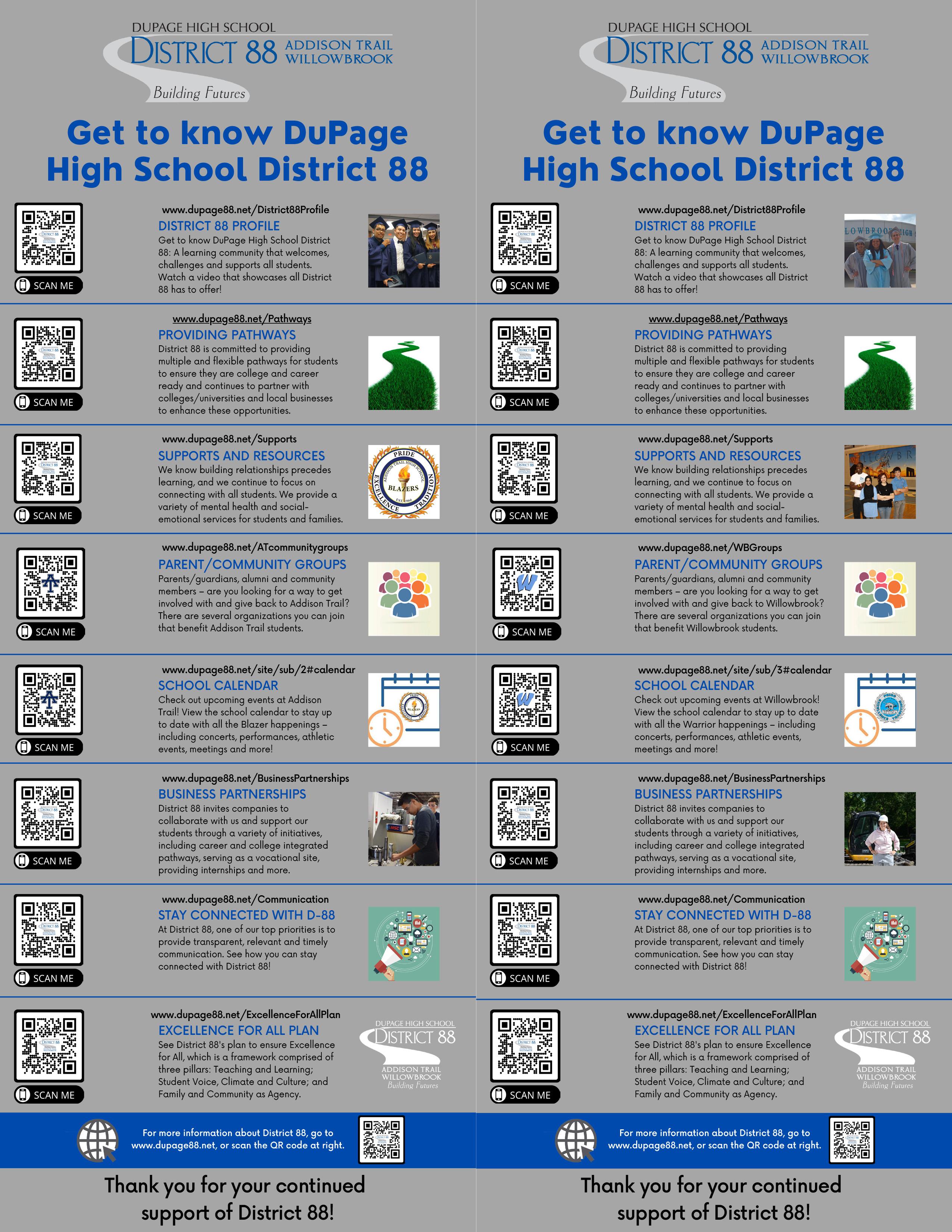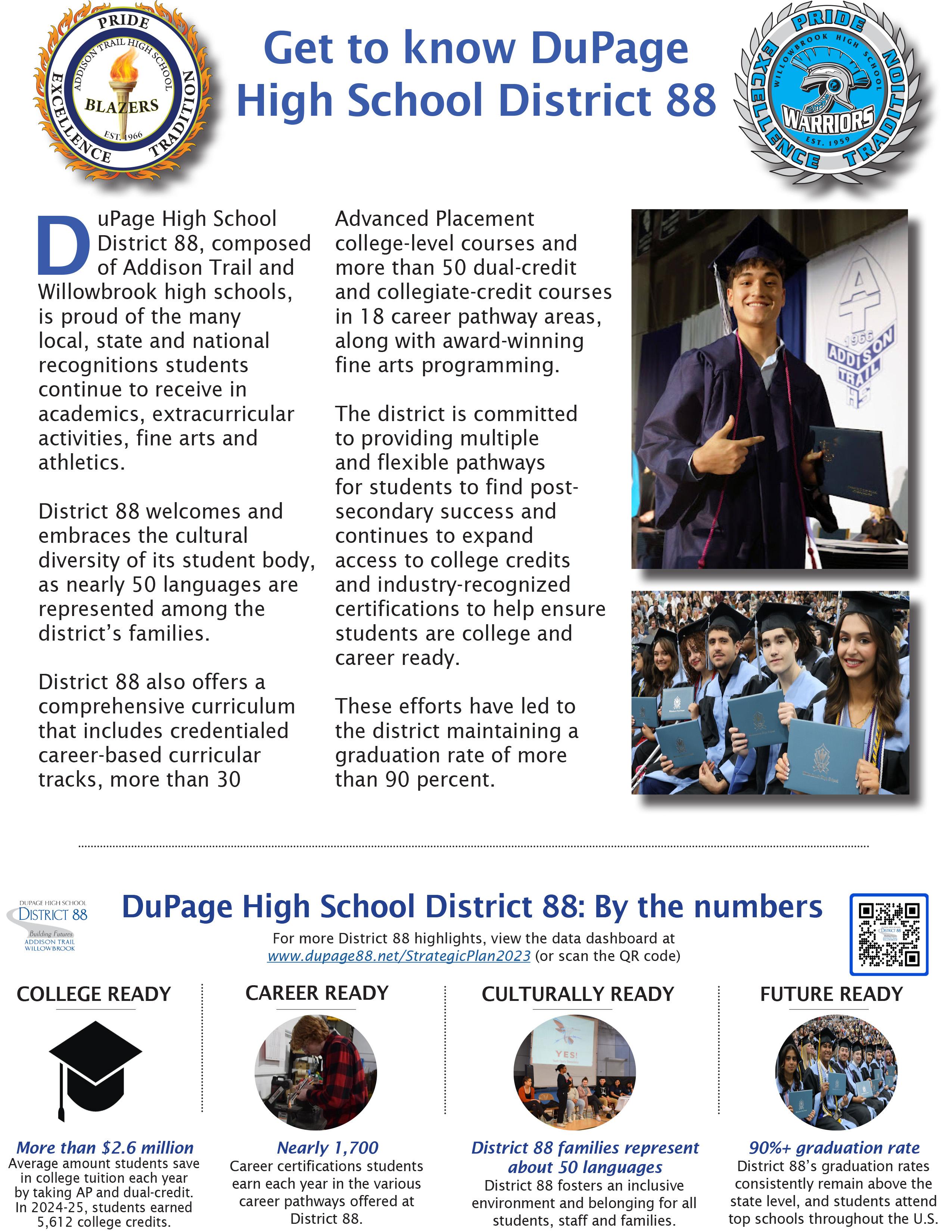 Check out the 2025-26 “Get to know DuPage High School District 88” flyer at www.dupage88.net/District88Profile (or click on the images above)!