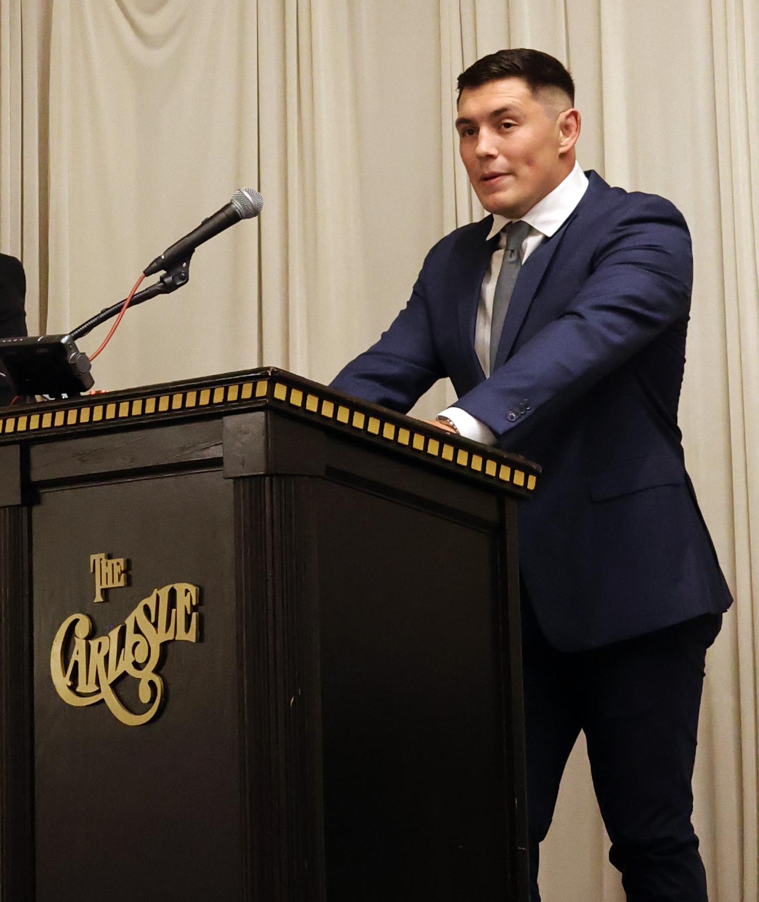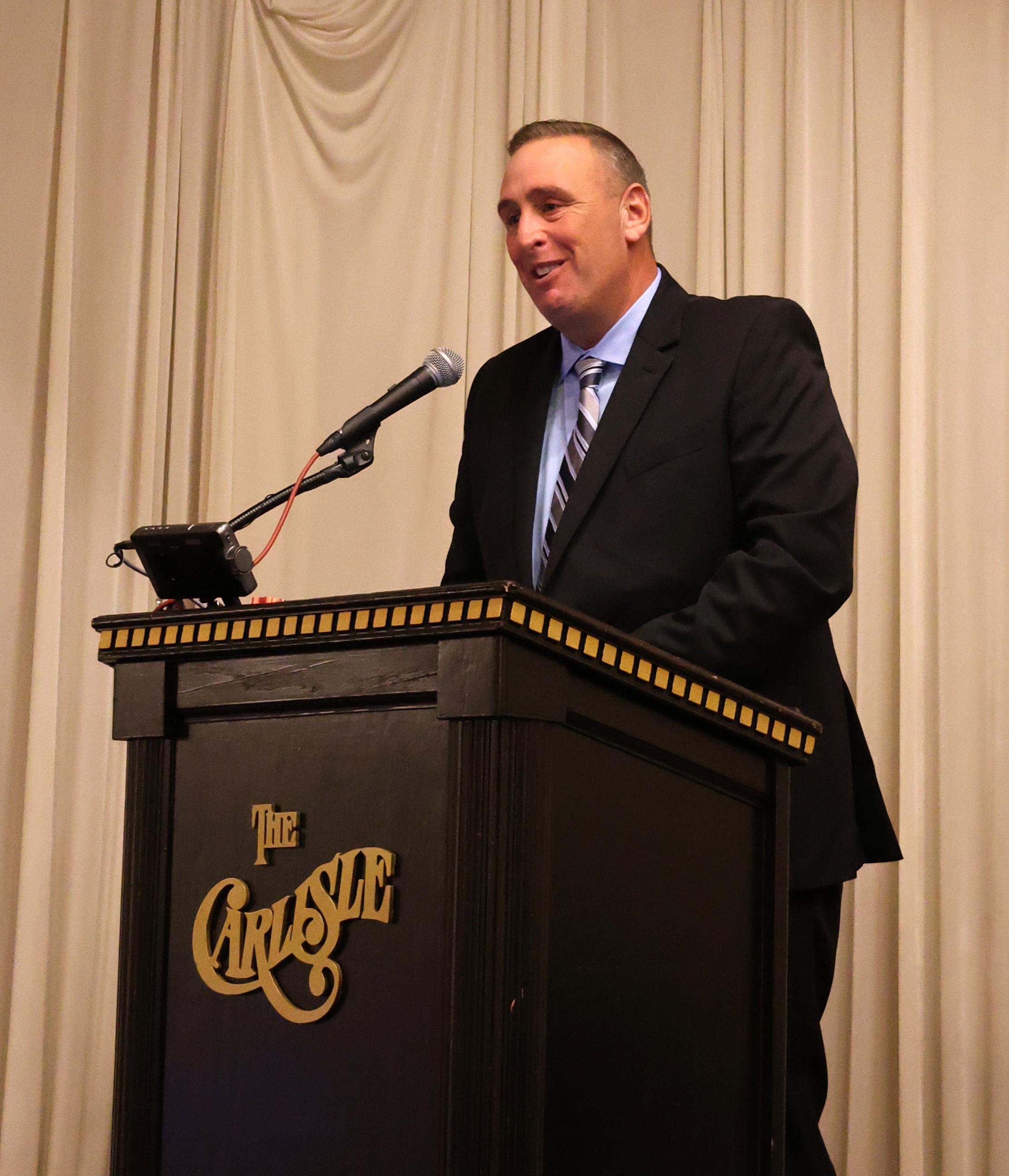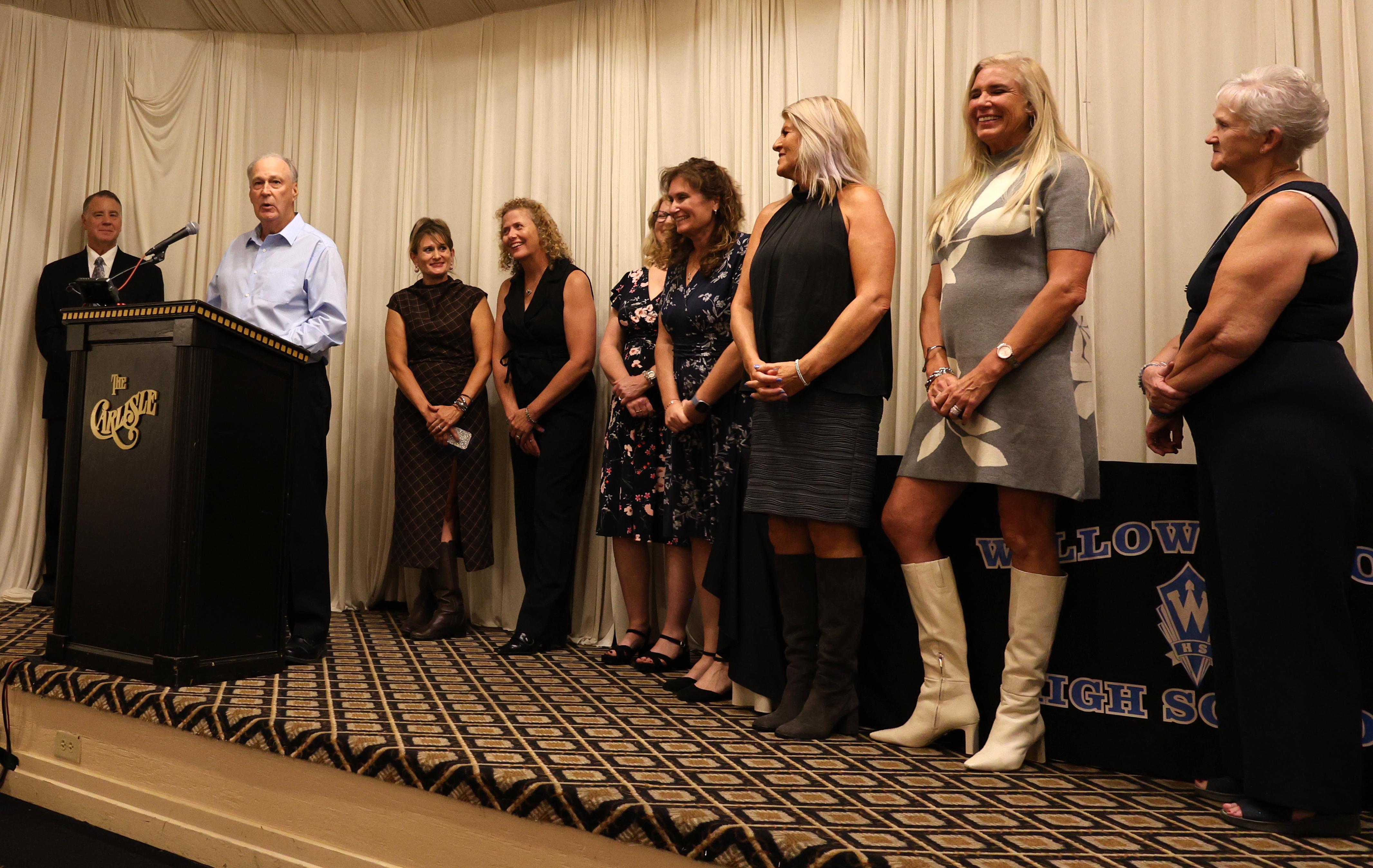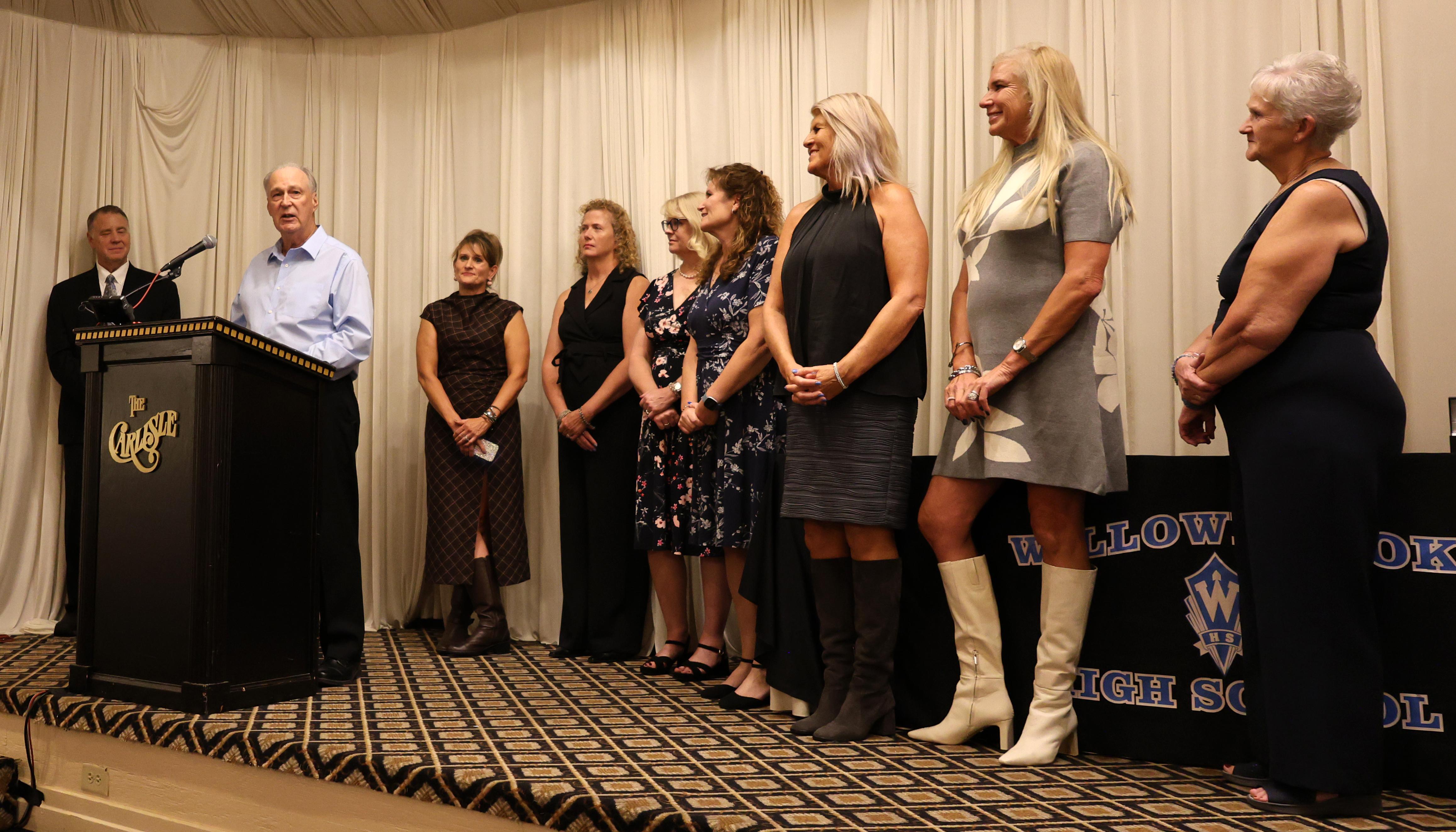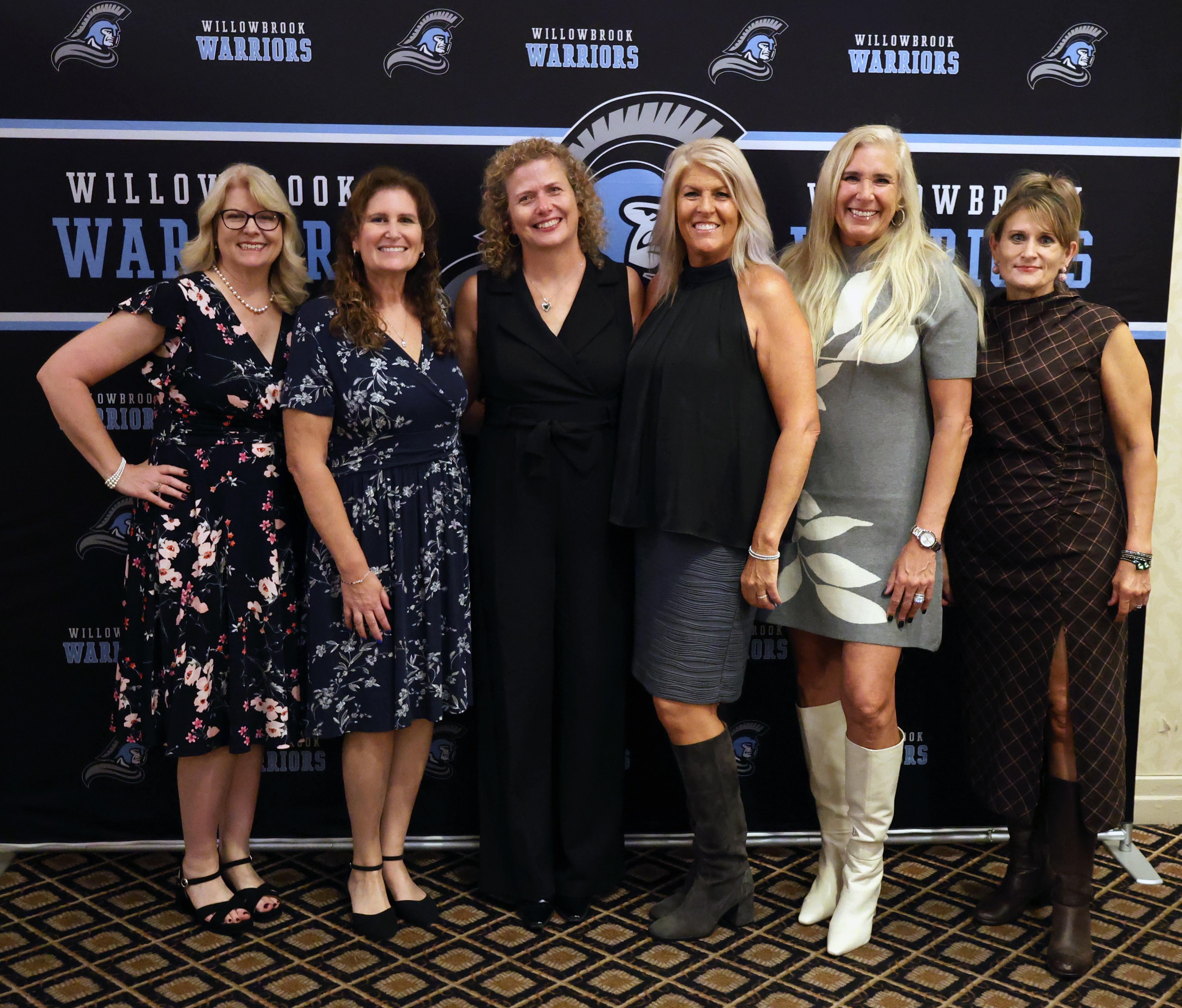 On Sept. 25, Willowbrook inducted members into its Athletic Hall of Fame Class of 2025 during a dinner at The Carlisle in Lombard. Willowbrook Principal Dr. Daniel Krause, Willowbrook Assistant Principal for Athletics and Operations Ed Sullivan and Willowbrook Athletic Hall of Fame President Helen Connell greeted the crowd. Emcees for the evening were Bob Daly (Willowbrook learning services teacher and former Athletic Director and Assistant Principal) and Jim White (District 88 Transition Program Teacher Aide, retired Willowbrook English teacher and Athletic Hall of Fame inductee Class of 2022). Willowbrook social studies teacher and soccer coach Peter Montgomery gave the Address to the Class of 2025.