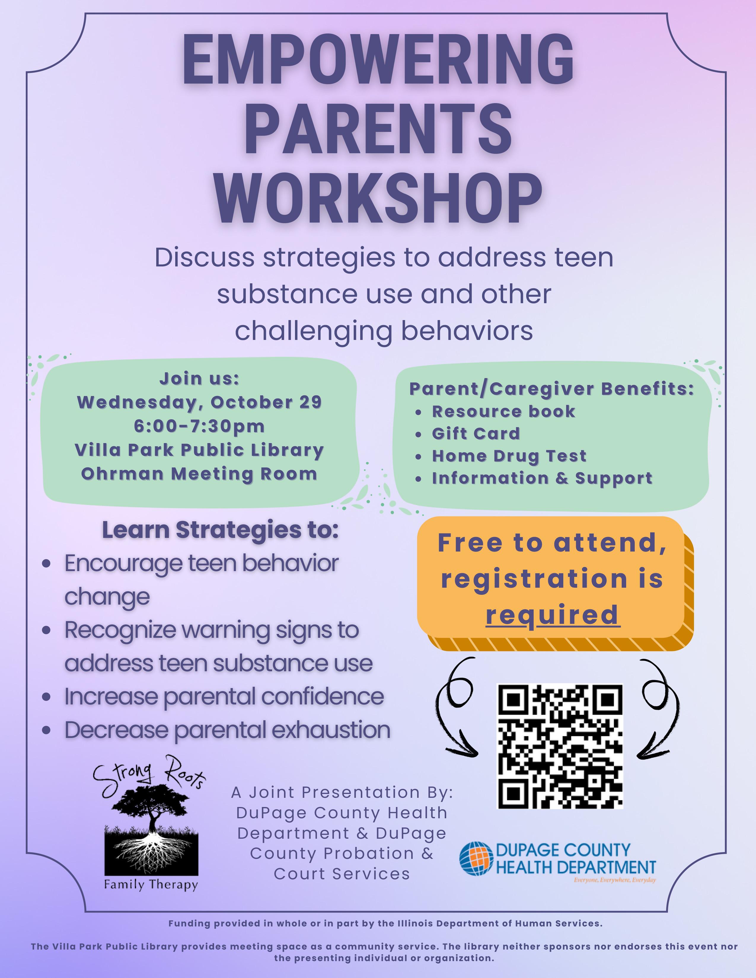 Parents invited to attend workshop to discuss strategies regarding teen substance use and other challenging behaviors