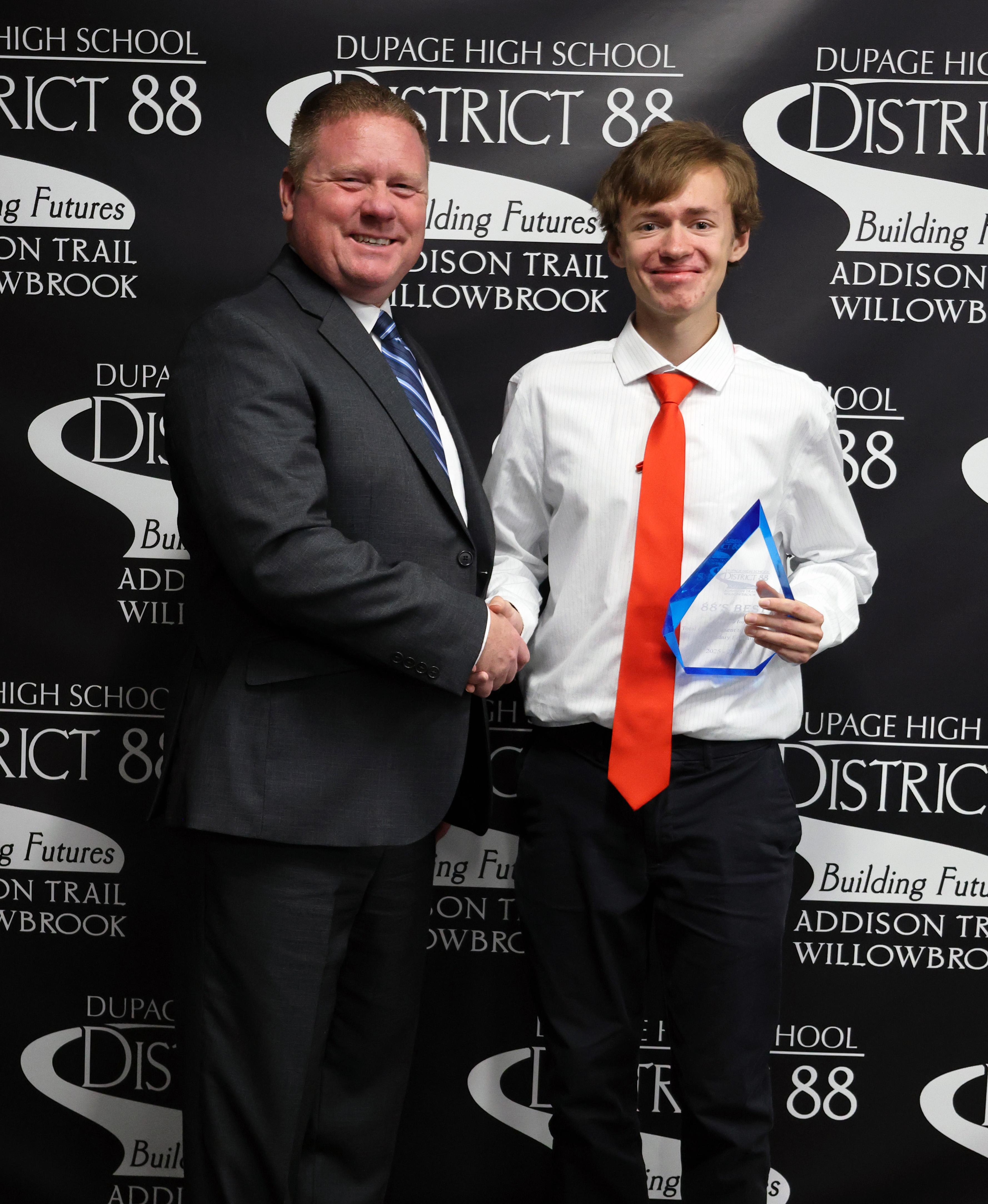 District 88 values the hard work and achievements of students and wants to make sure students are honored and recognized for their accomplishments. The District 88 Board of Education and administration created the 88’s Best award to highlight students’ success. That award recognizes nine Addison Trail and nine Willowbrook students each school year for reaching their personal best in various areas. Recipients are honored during a District 88 Board of Education meeting in one of the following areas: academics, highly improved performance, extracurricular activities, service work or performing arts/electives. They receive an 88’s Best glass sculpture and a certificate to a local restaurant.
