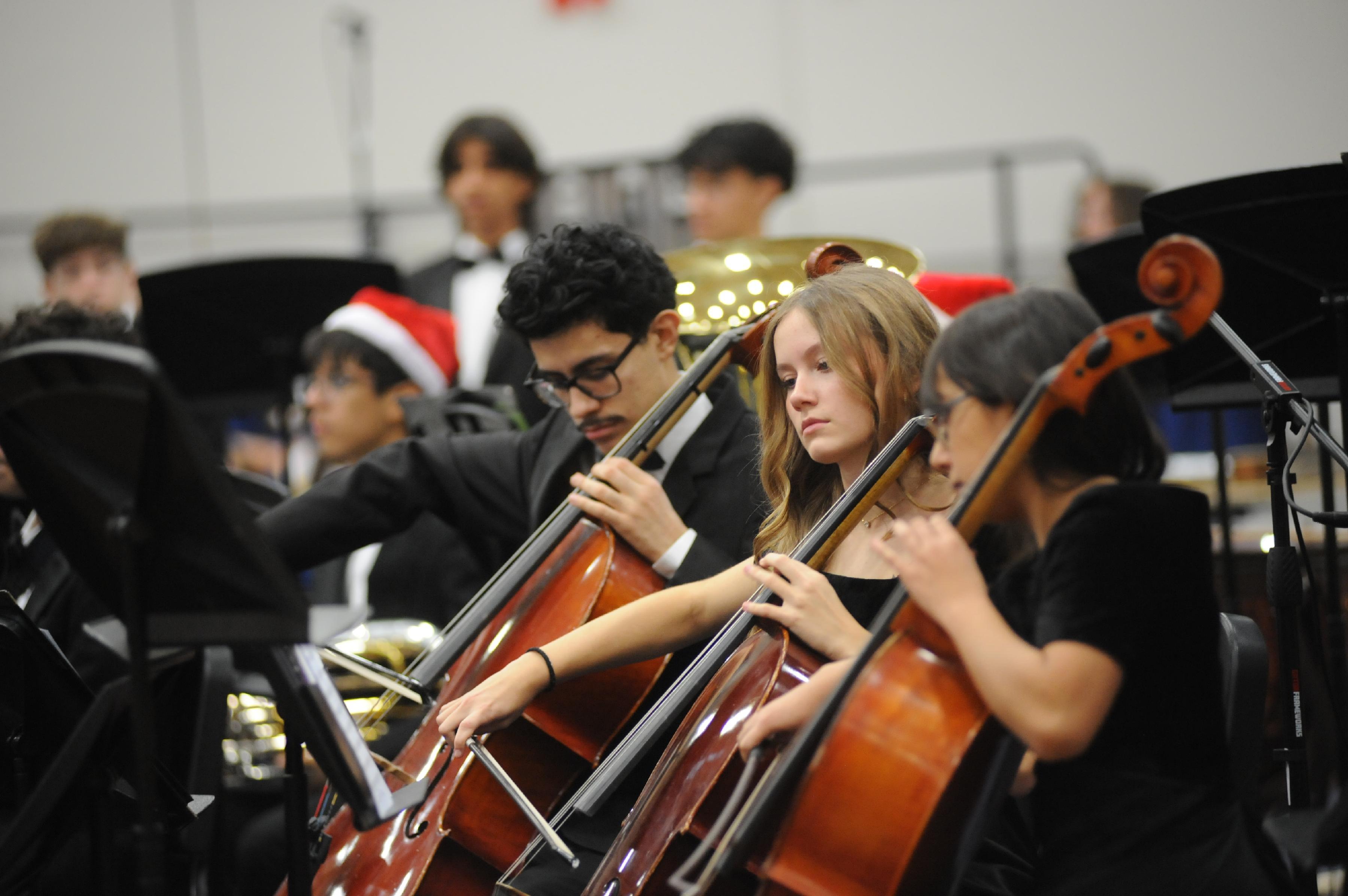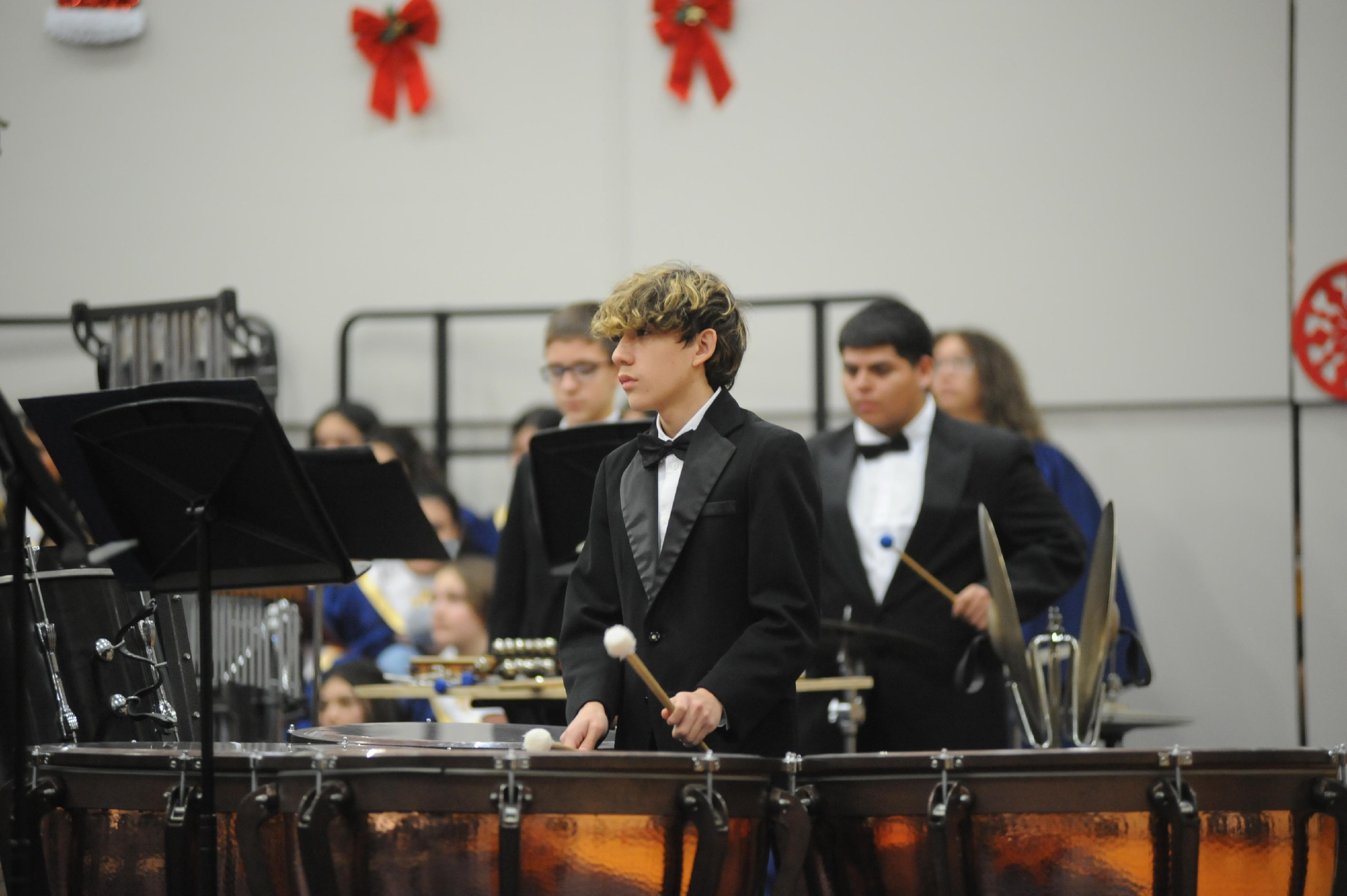 The event showcased 26 performances and featured the school’s bands, choirs, orchestras and ensembles, including the Chamber Ensemble and the Mariachi Ensemble. A special highlight was singing holiday favorites, which was led by the Chamber Orchestra, Wind Ensemble and Choir, along with participation from the audience. The medley included classics such as “Let It Snow,” “Rudolph, the Red-Nosed Reindeer,” “Jingle Bell Rock,” “Silver Bells” and “Frosty the Snowman.”