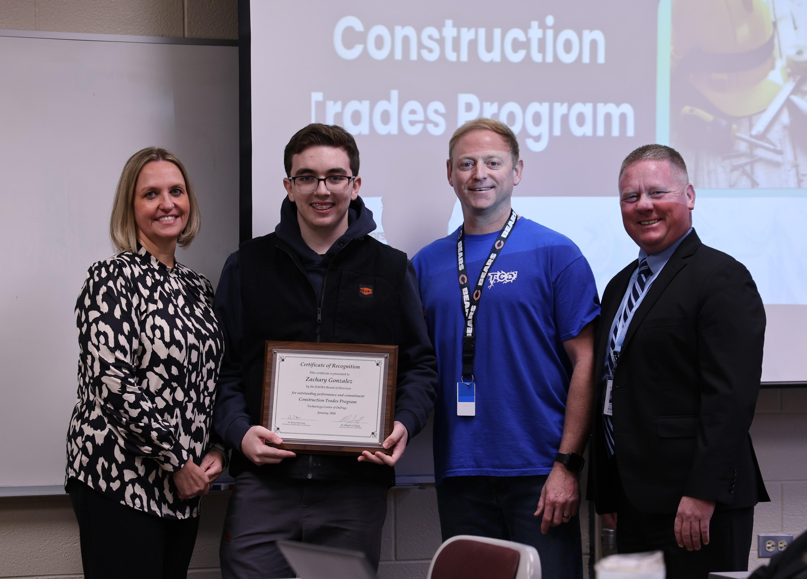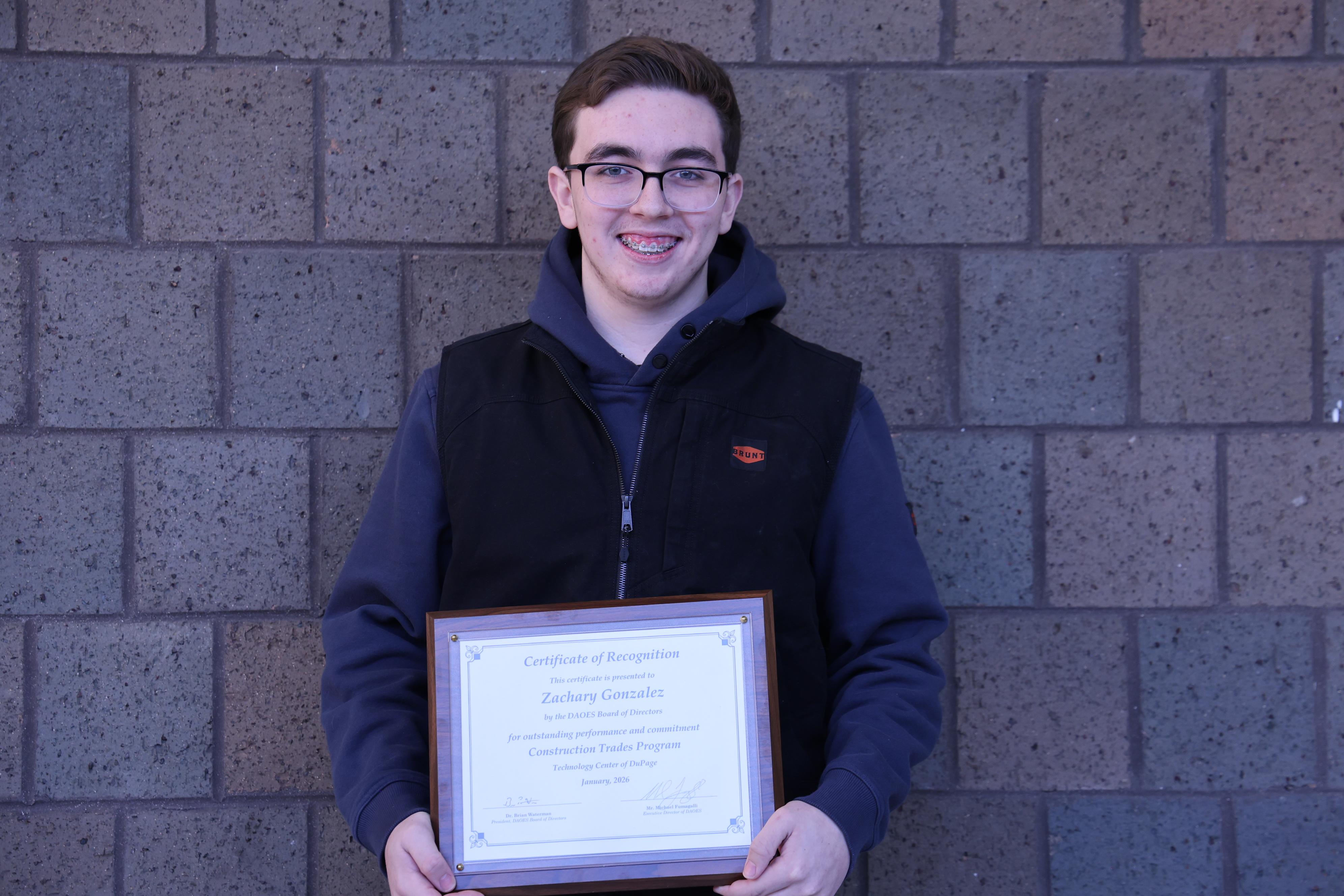 During its Jan. 15 meeting, the DuPage Area Occupational Education System (DAOES) Board of Directors named Willowbrook junior Zachary “Zach” Gonzalez as a Technology Center of DuPage (TCD) Student of the Month for January.