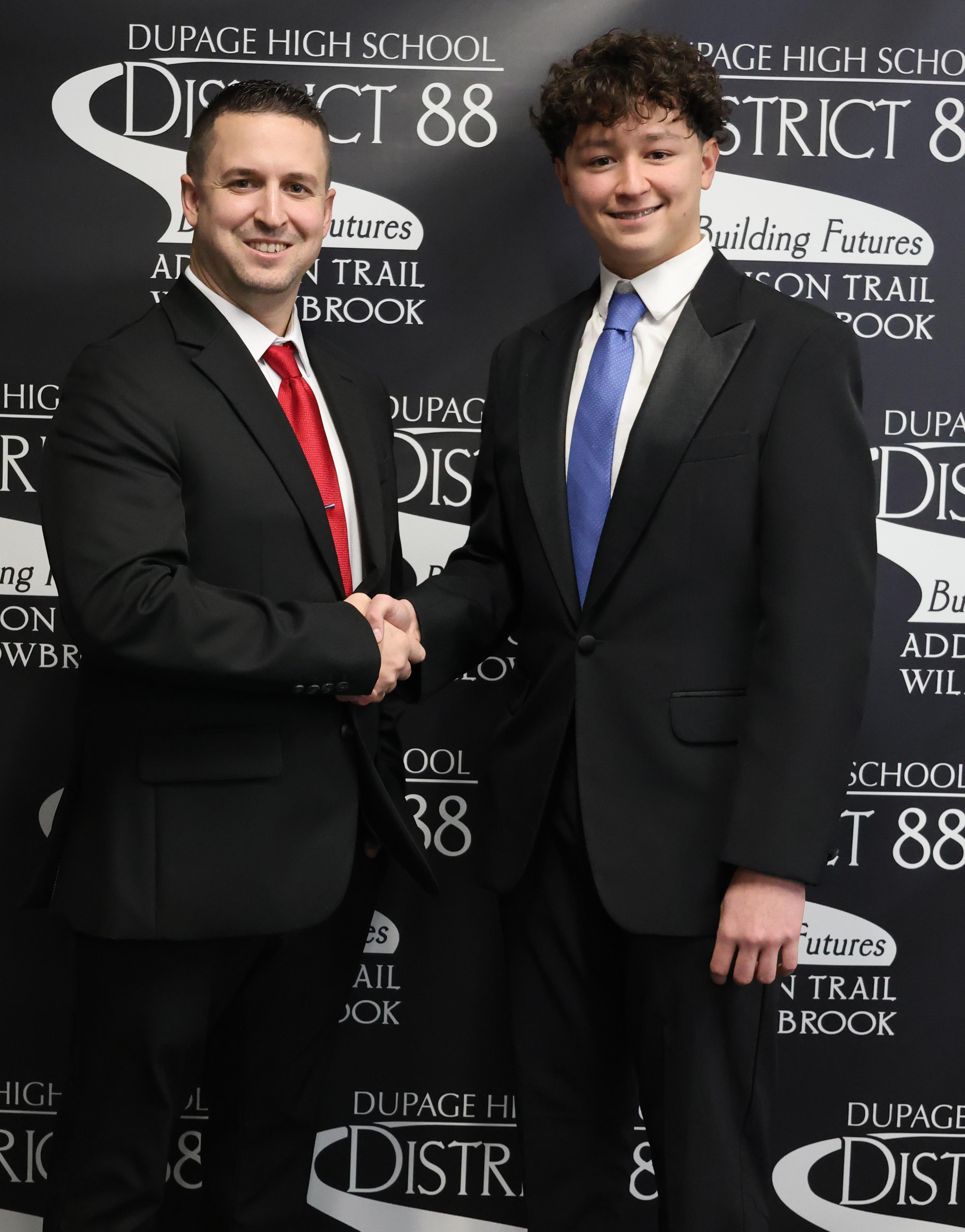 Nelson Cardona (pictured at right, with Addison Trail Principal Jack Andrews) has been named as Addison Trail’s January recipient of 88’s Best recognition for his stellar involvement in extracurricular activities.