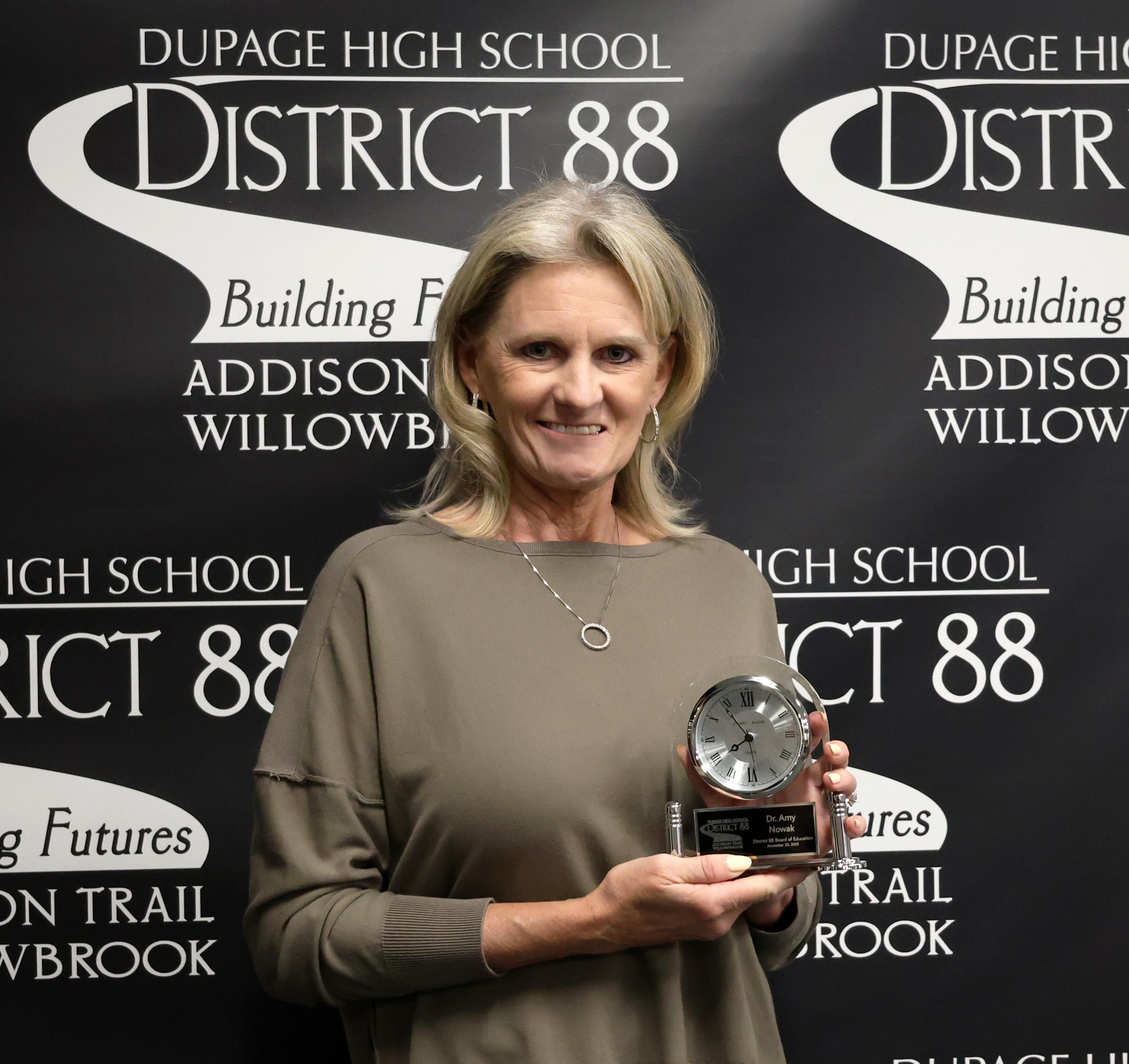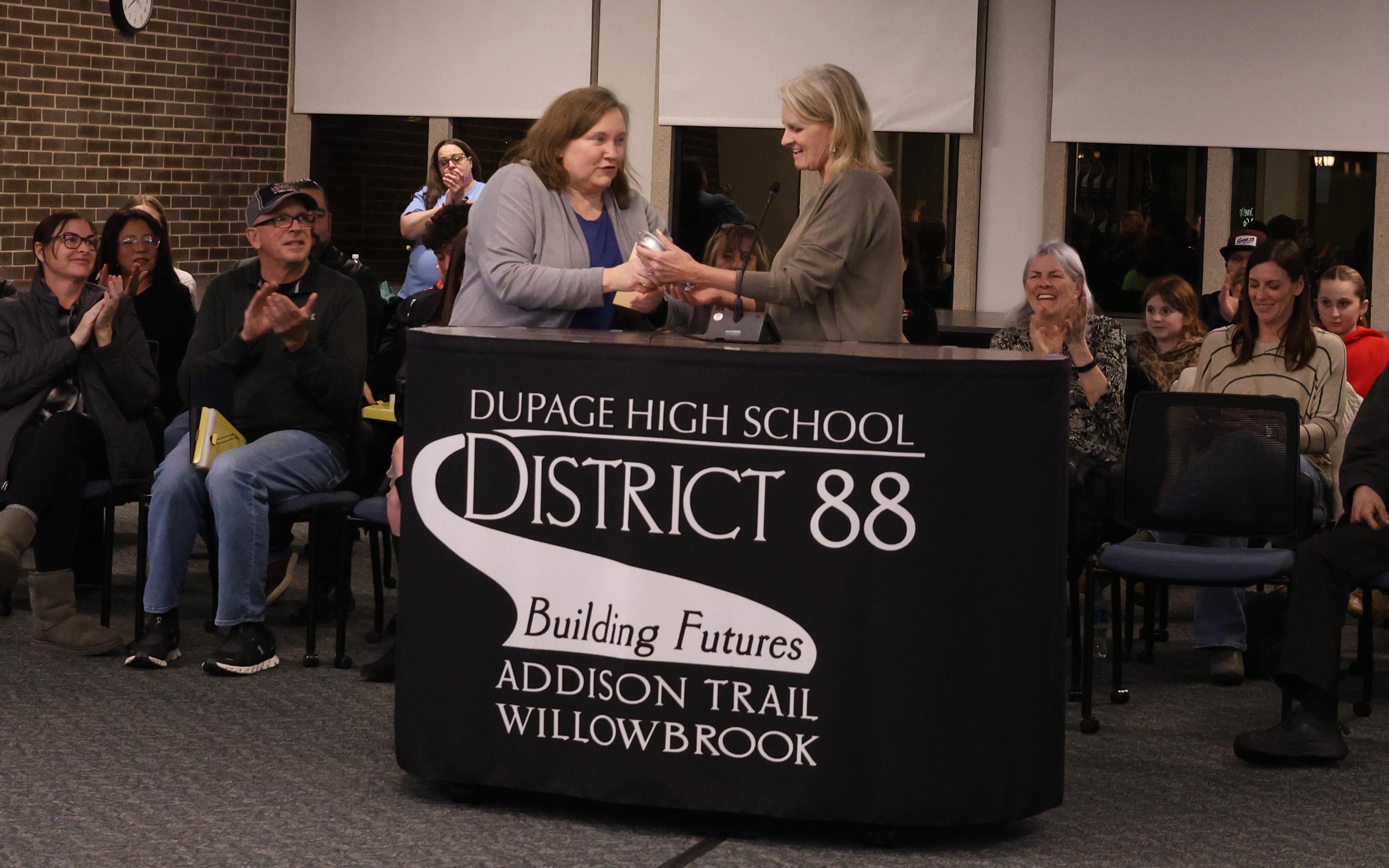 During the Jan. 12 meeting, the board presented Nowak with an engraved clock in honor of her dedication and commitment to enhancing the educational environment for the students, staff and learning community of District 88.