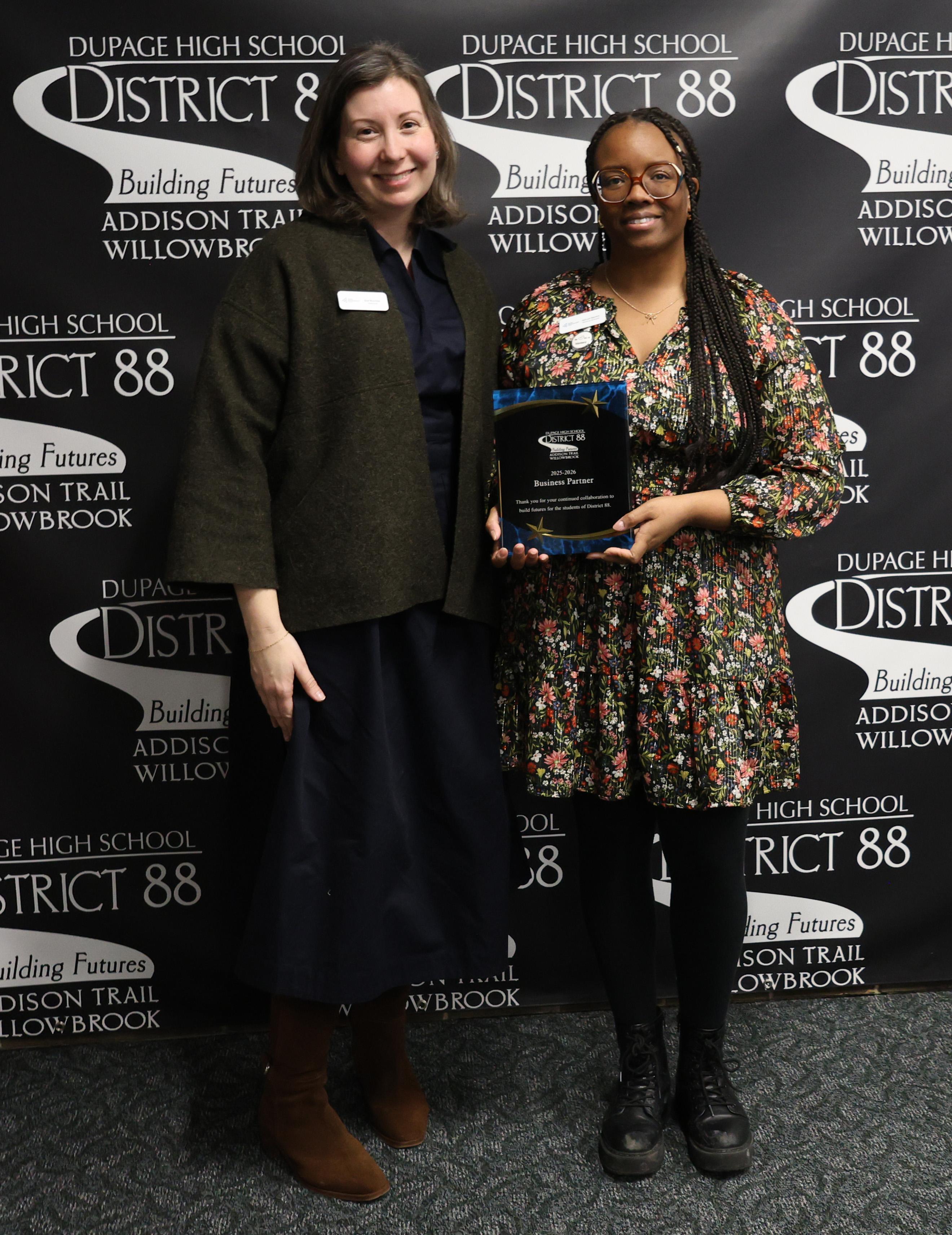 Junior Achievement of Chicago is a tremendous Business Partner with District 88, and the district is proud to honor the organization in recognition of these efforts.