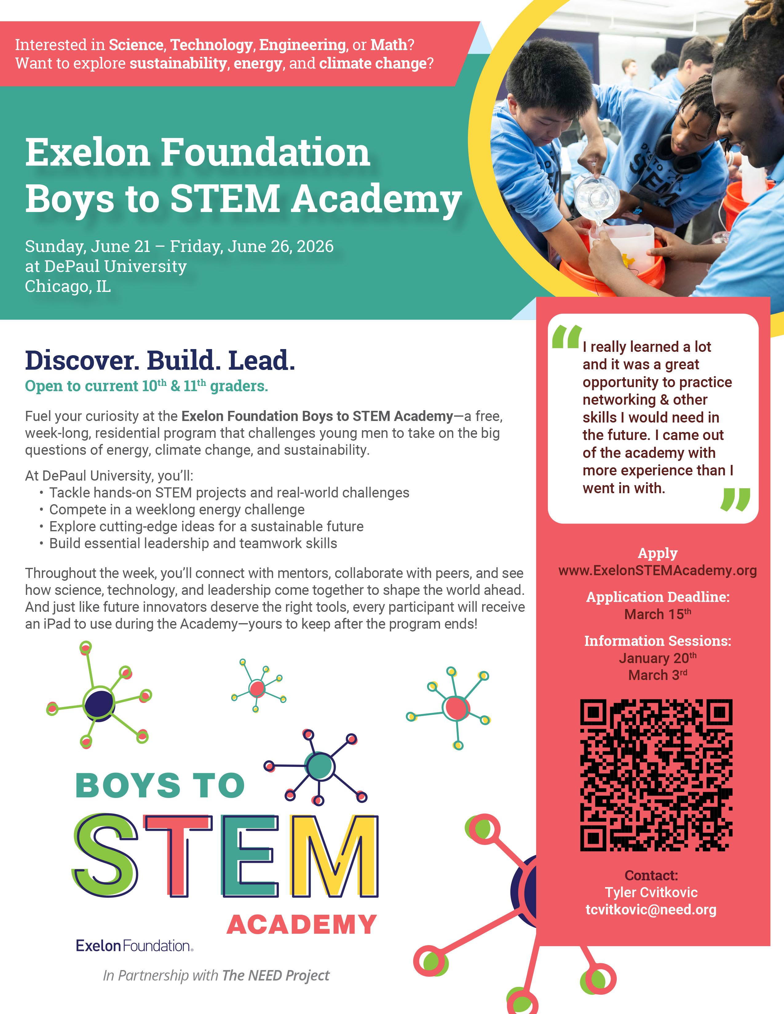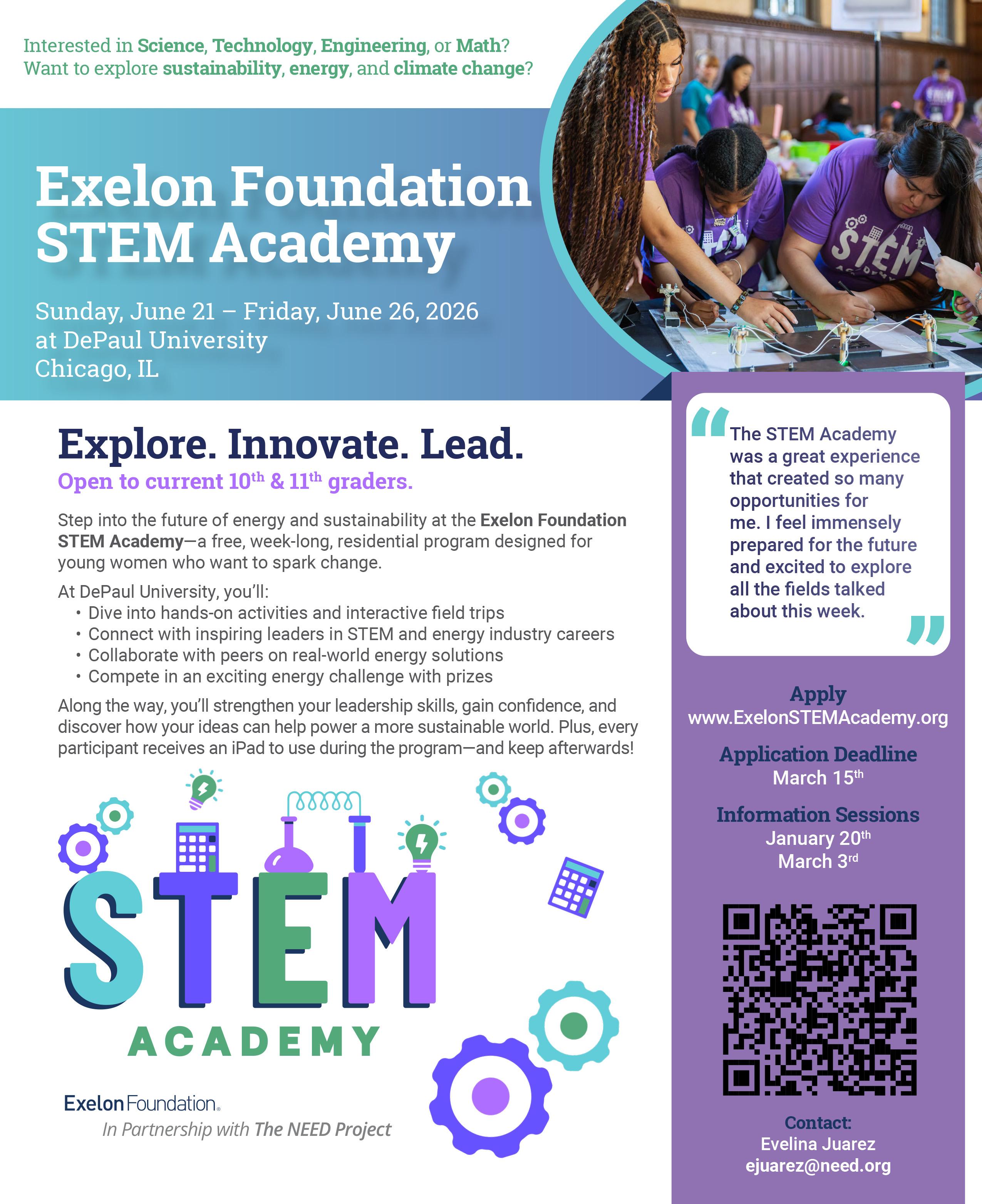 High school sophomores and juniors invited to attend Exelon Foundation STEM Academy